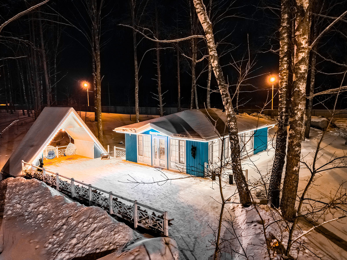 На территории расположен уникальный «Дом Хоббита», вдохновленный произведениями Толкина. Гостям доступны СПА-центр, банный комплекс, ресторан и благоустроенные игровые площадки для детей. Летом можно кататься на велосипедах и SUP-бордах, зимой на ватрушках, лыжах и мотособаках, что делает отдых насыщенным и комфортным круглый год.