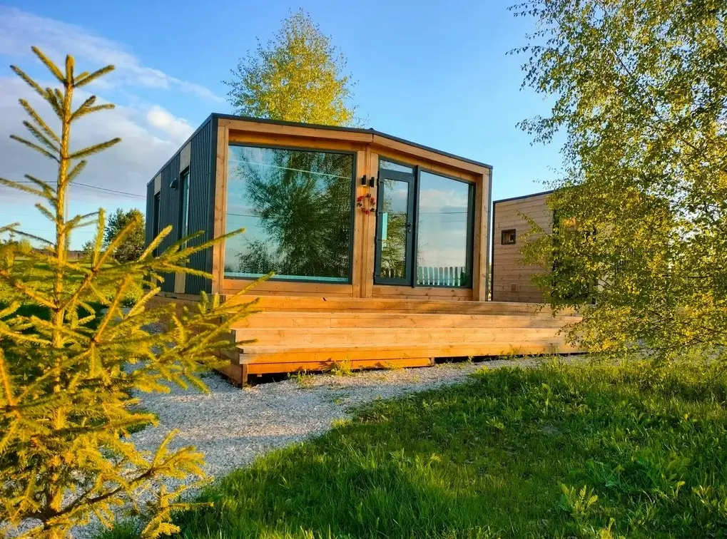 Компактные дома в аренду расположены в уединённом уголке природы. Вокруг — леса и поля, а рядом продуктовые магазины. Подходят для спокойного отдыха с активным досугом.
