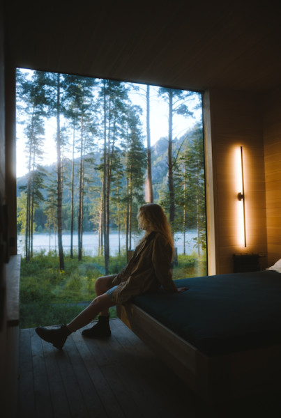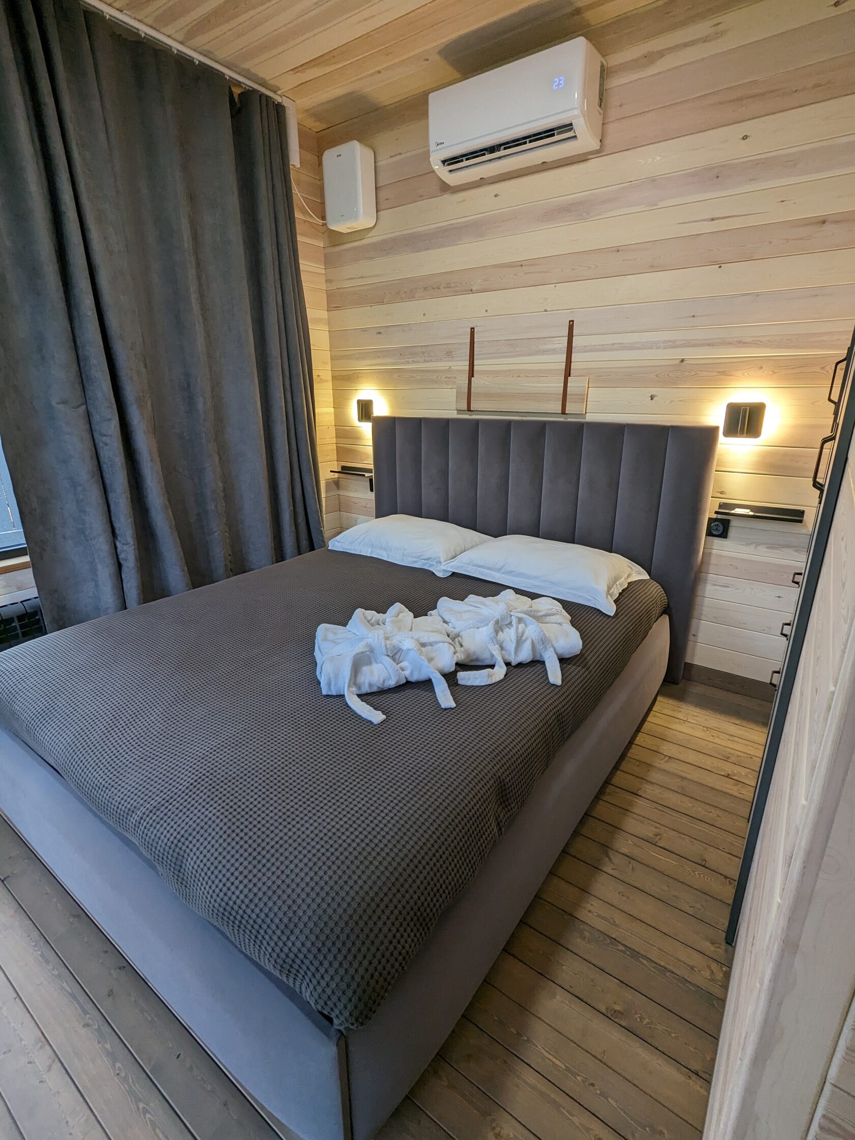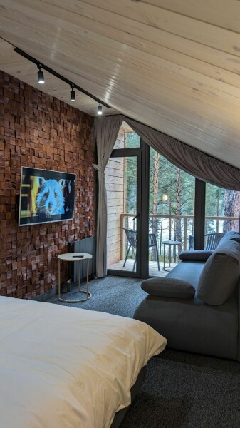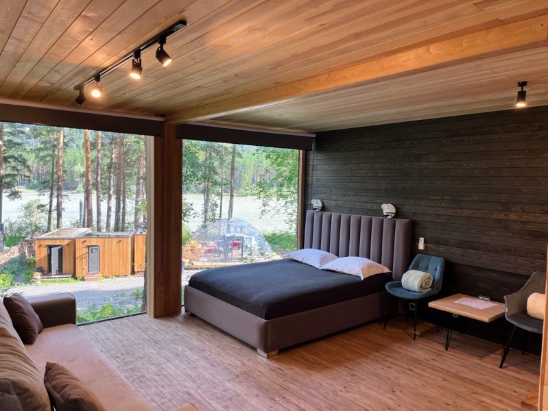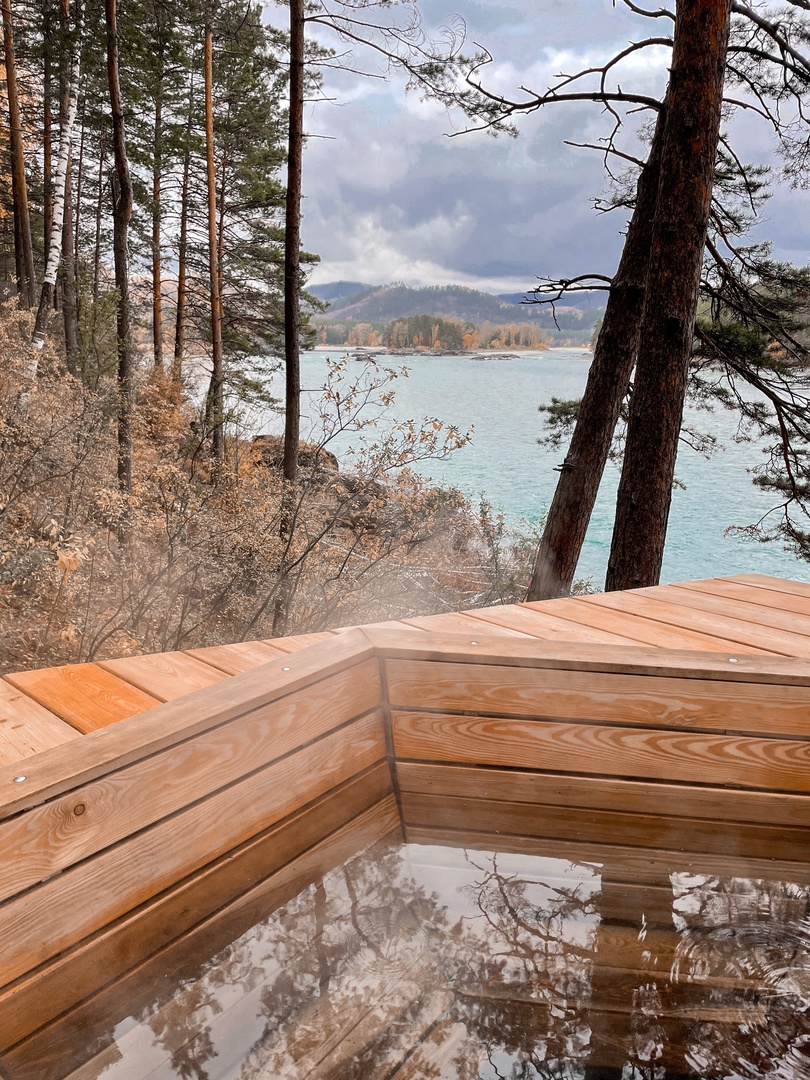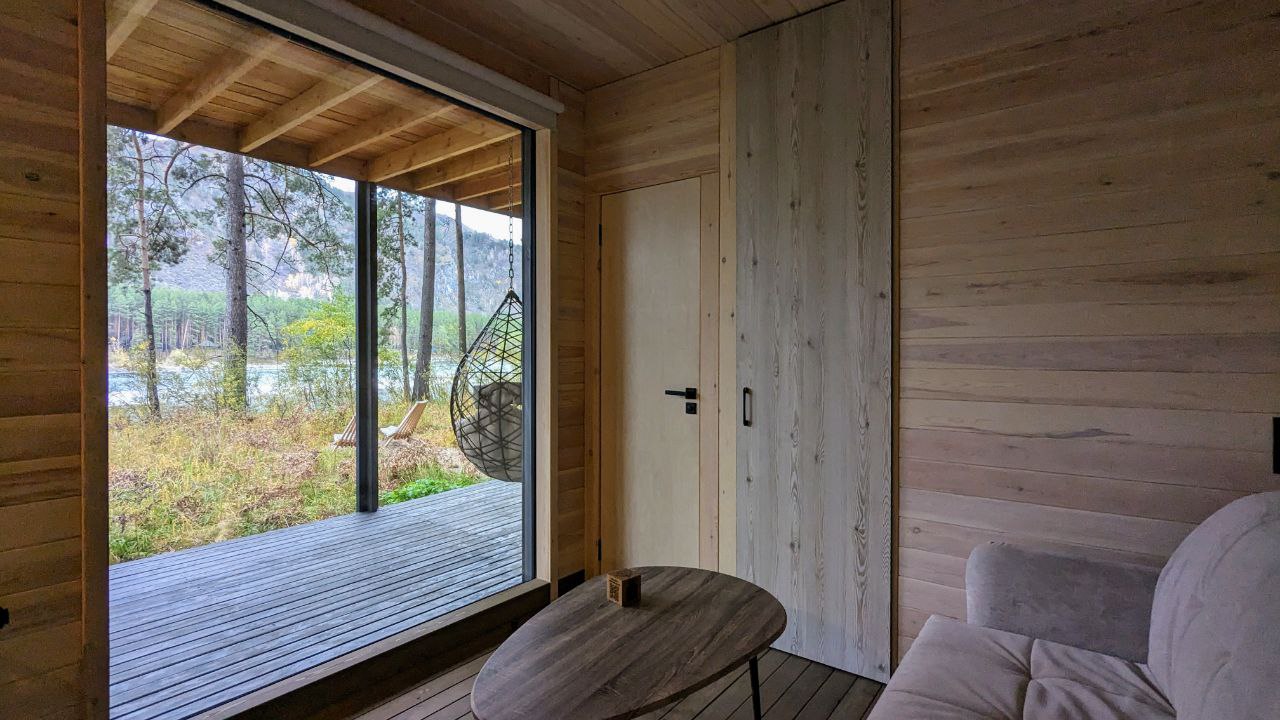 У отеля есть свой ресторан-бар с панорамными окнами и невероятно красивыми и вкусными блюдами, баня, холодная купель и горячий чан с видом на Катунь. От отеля можно отправиться в пешее путешествие, в домиках смотреть по вечерам кино на проекторе, сыграть в настольную игру, знакомиться в костровой зоне или вместе любоваться звездами. Команда отеля поможет вам спланировать путешествие под ваше настроение. А еще здесь можно провести любое специальное мероприятие: йога-тур, свадьбу или корпоратив.