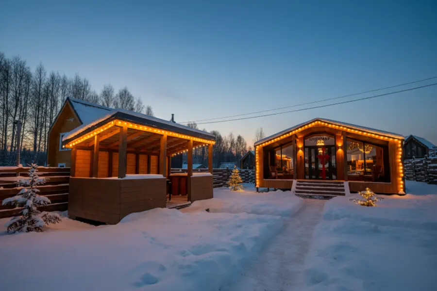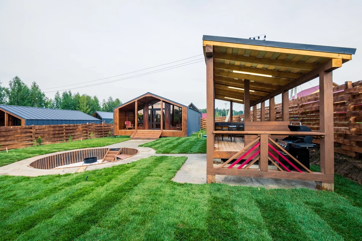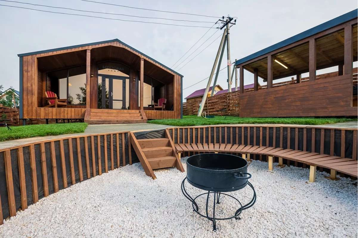 На территории экодеревни гостей ждут уютные домики, идеально подходящие для любого вида отдыха. Для активного отдыха доступны конные прогулки, багги, квадроциклы, волейбол и настольный теннис.