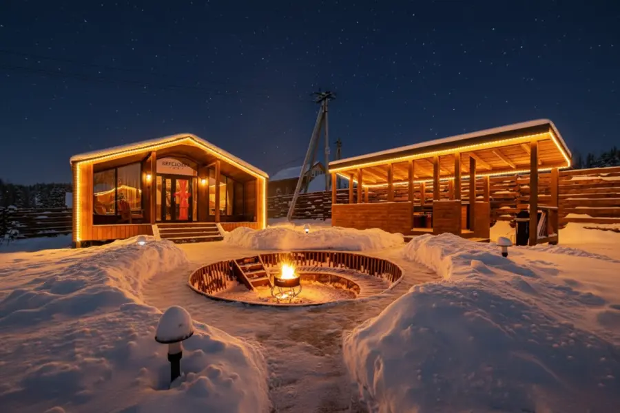 Летом можно отправиться на рыбалку, покататься на велосипедах, а зимой покататься на снегоходах, коньках и санях. Любителям релакса отлично подойдет SPA-комплекс с бассейном, флоатингом, массажем и хаммамом, а после процедур можно будет насладиться фермерской кухней в ресторане. На территории есть детские игровые площадки и прогулочные дорожки.