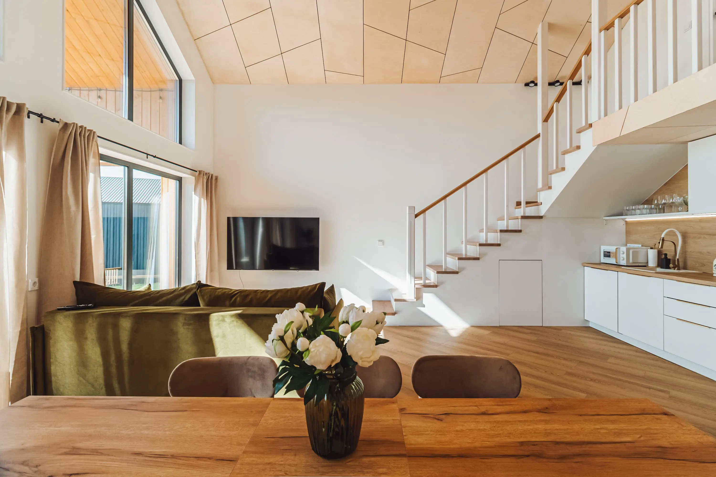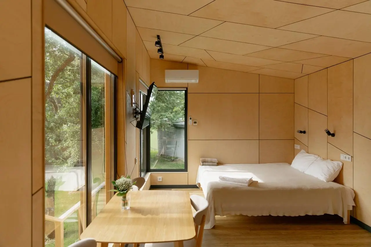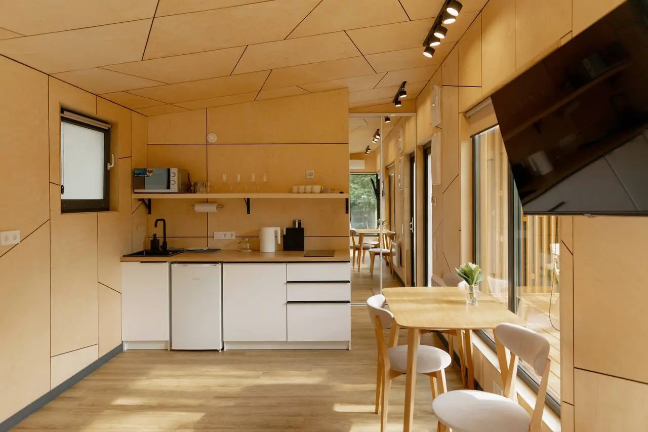В домах вас ждут простор, современный интерьер, выдержанный в приятных спокойных тонах, мягкие кровати и все необходимые удобства от Wi-Fi до полноценно оборудованной кухни. На террасе можно выпить кофе утром или полюбоваться красивым видом закатного неба, а с гриль-зоной каждый ужин будет незабываемо вкусным.