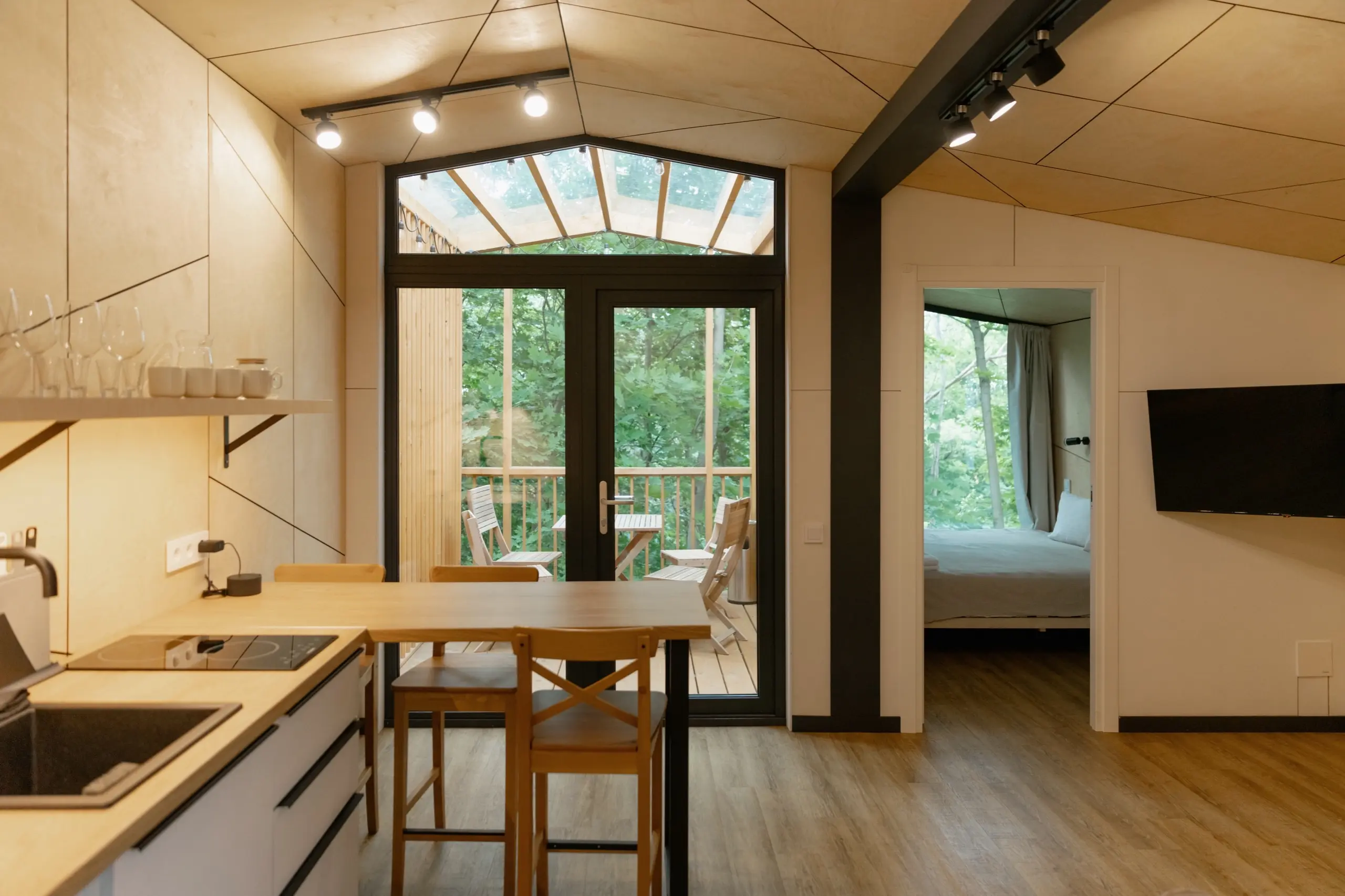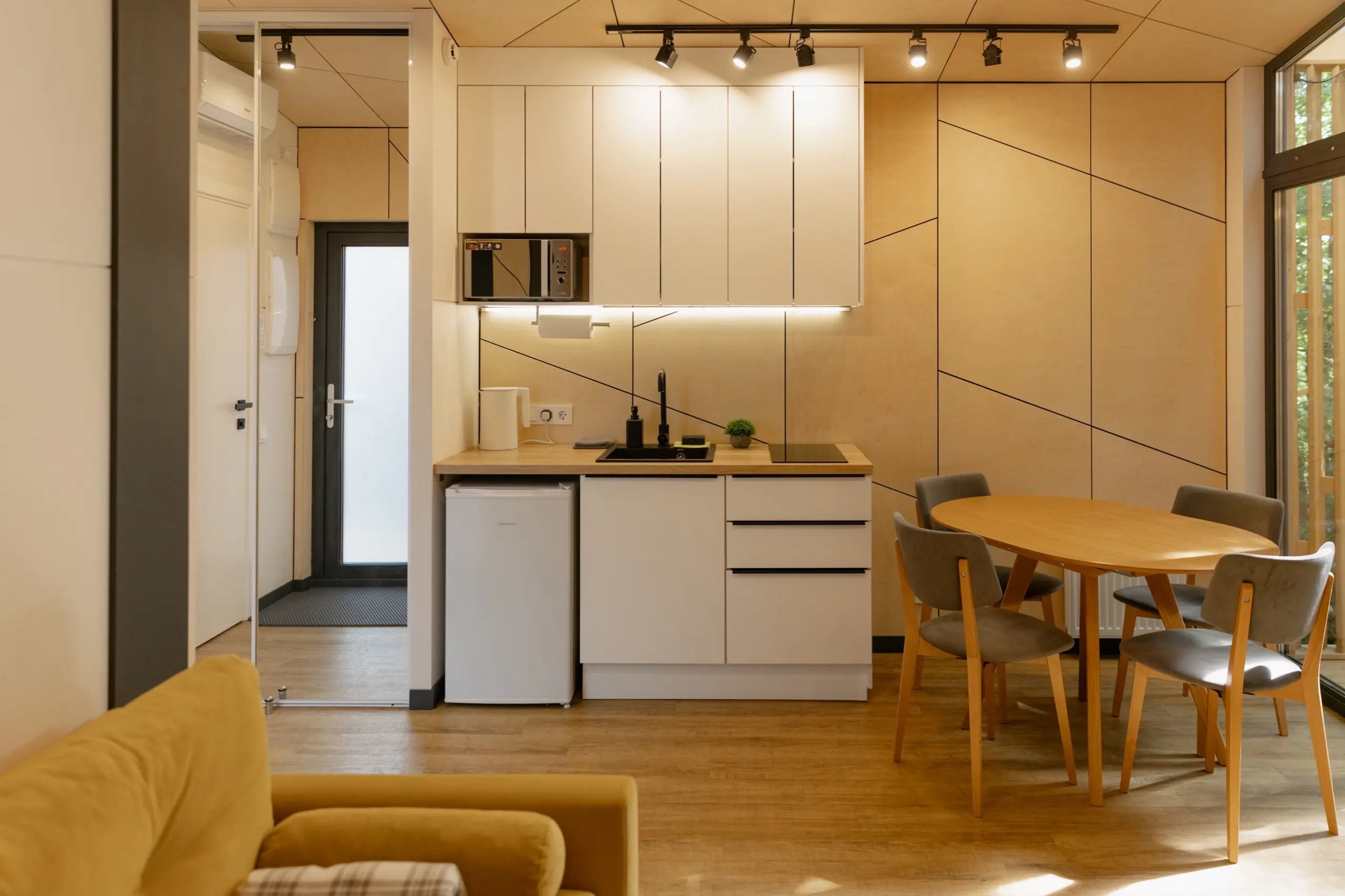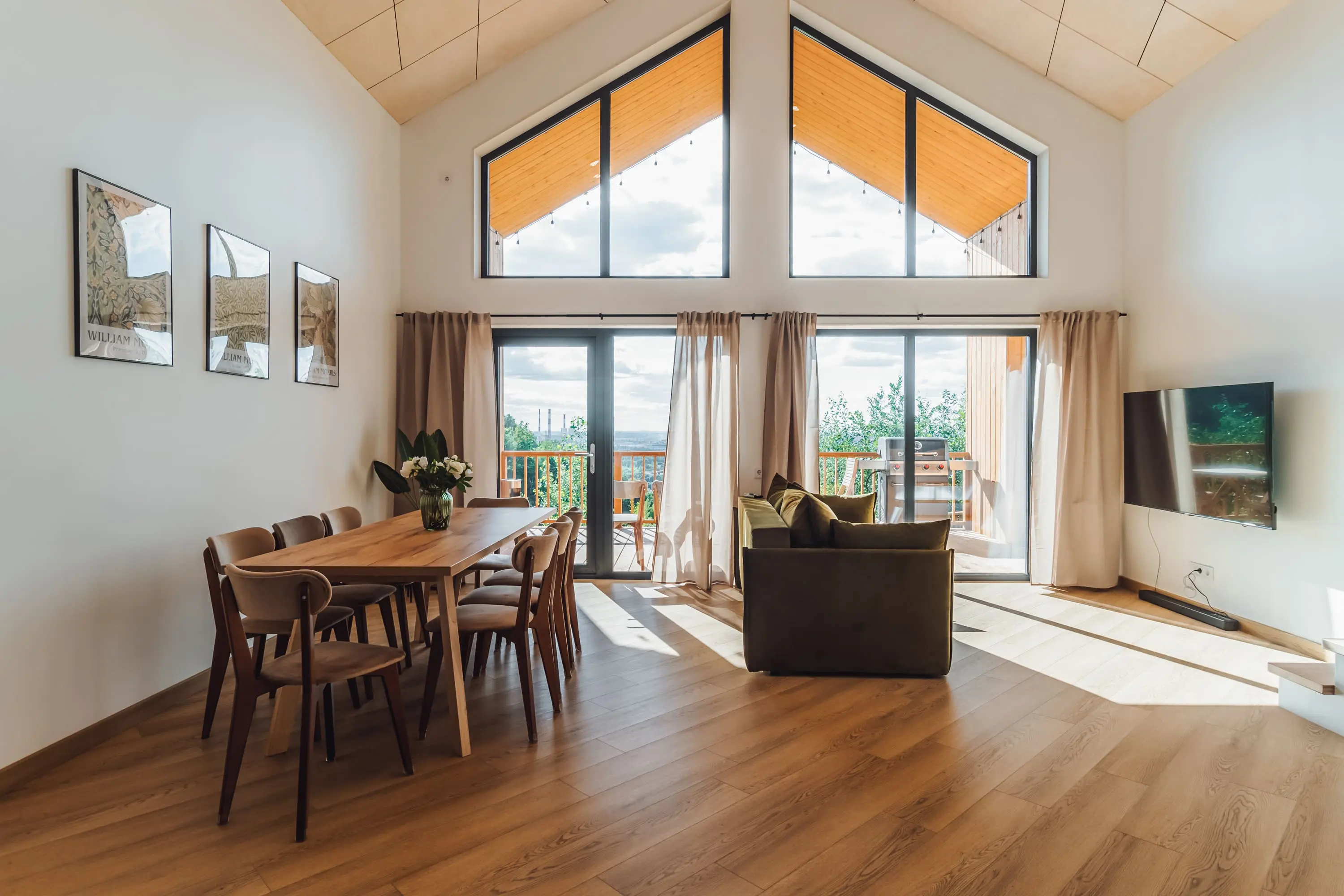 В домах вас ждут простор, современный интерьер, выдержанный в приятных спокойных тонах, мягкие кровати и все необходимые удобства от Wi-Fi до полноценно оборудованной кухни. На террасе можно выпить кофе утром или полюбоваться красивым видом закатного неба, а с гриль-зоной каждый ужин будет незабываемо вкусным.