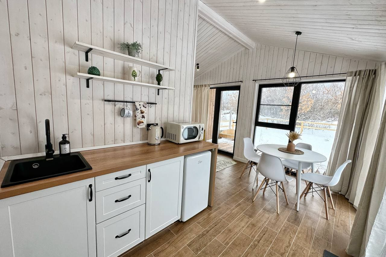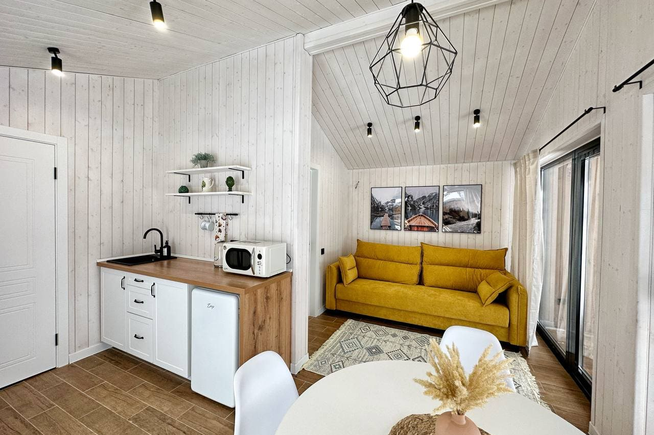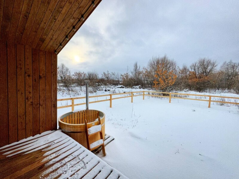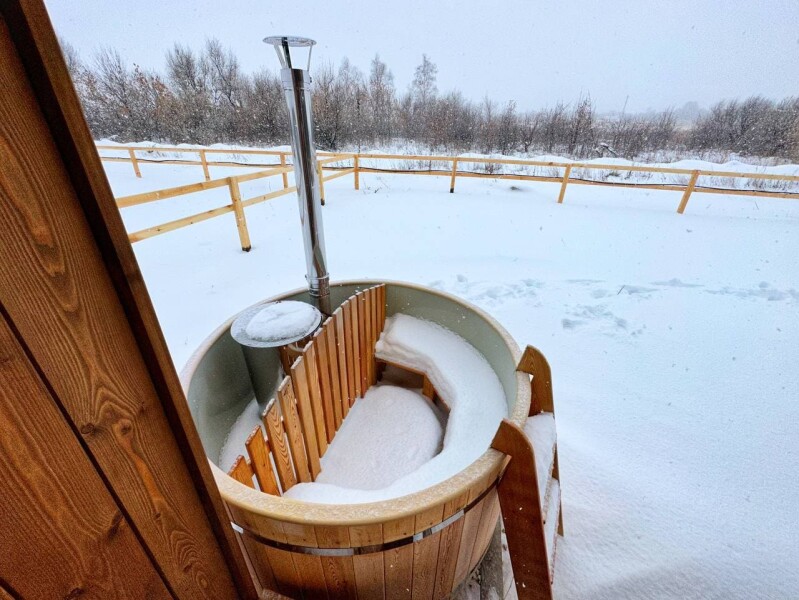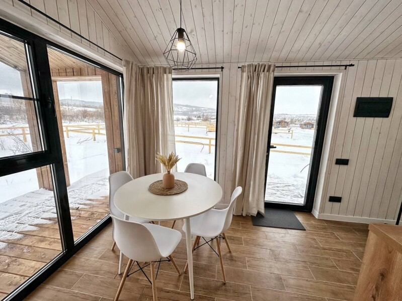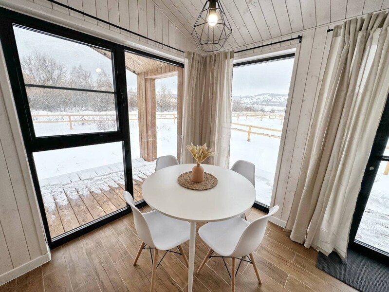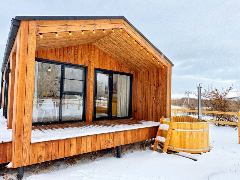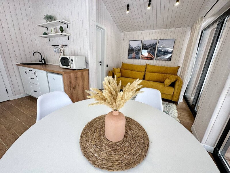 В каждом доме есть всё необходимое для комфортного проживания: приятный интерьер, кухня, полноценные удобства и коммуникации. На террасе — банная бочка-фурако, а рядом — небольшая приватная территория с зоной барбекю. Автомобиль можно оставить на охраняемой парковке.