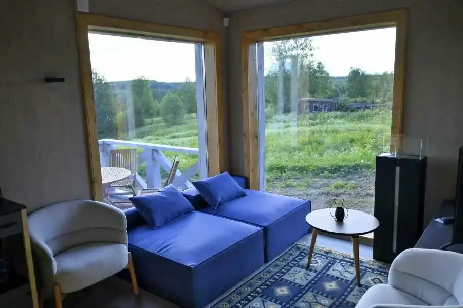 Гостям доступны домики с полным набором удобств, ресторан с деревенским all inclusive, уличный камин, баня по-чёрному и лыжные прогулки по зимнему лесу. На территории оборудована парковка.