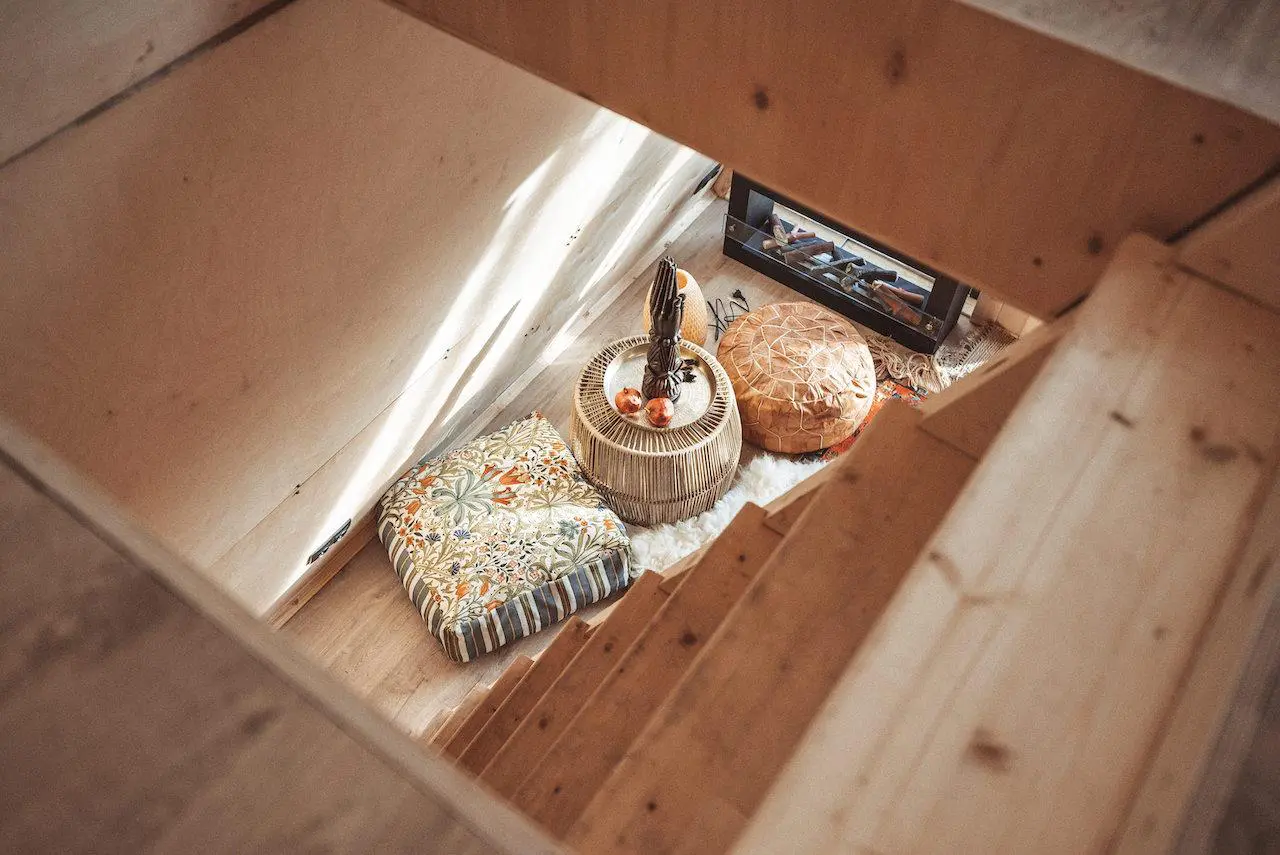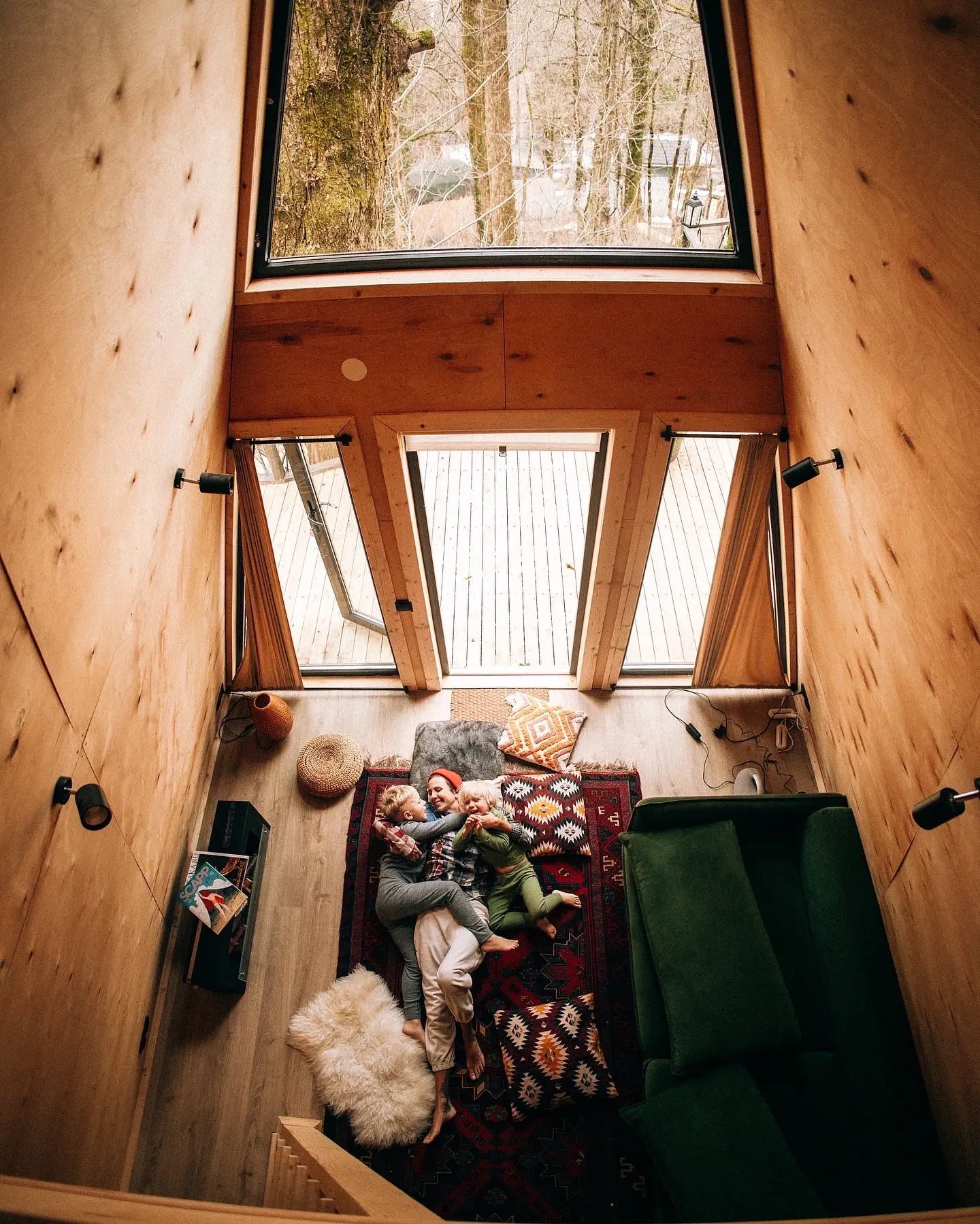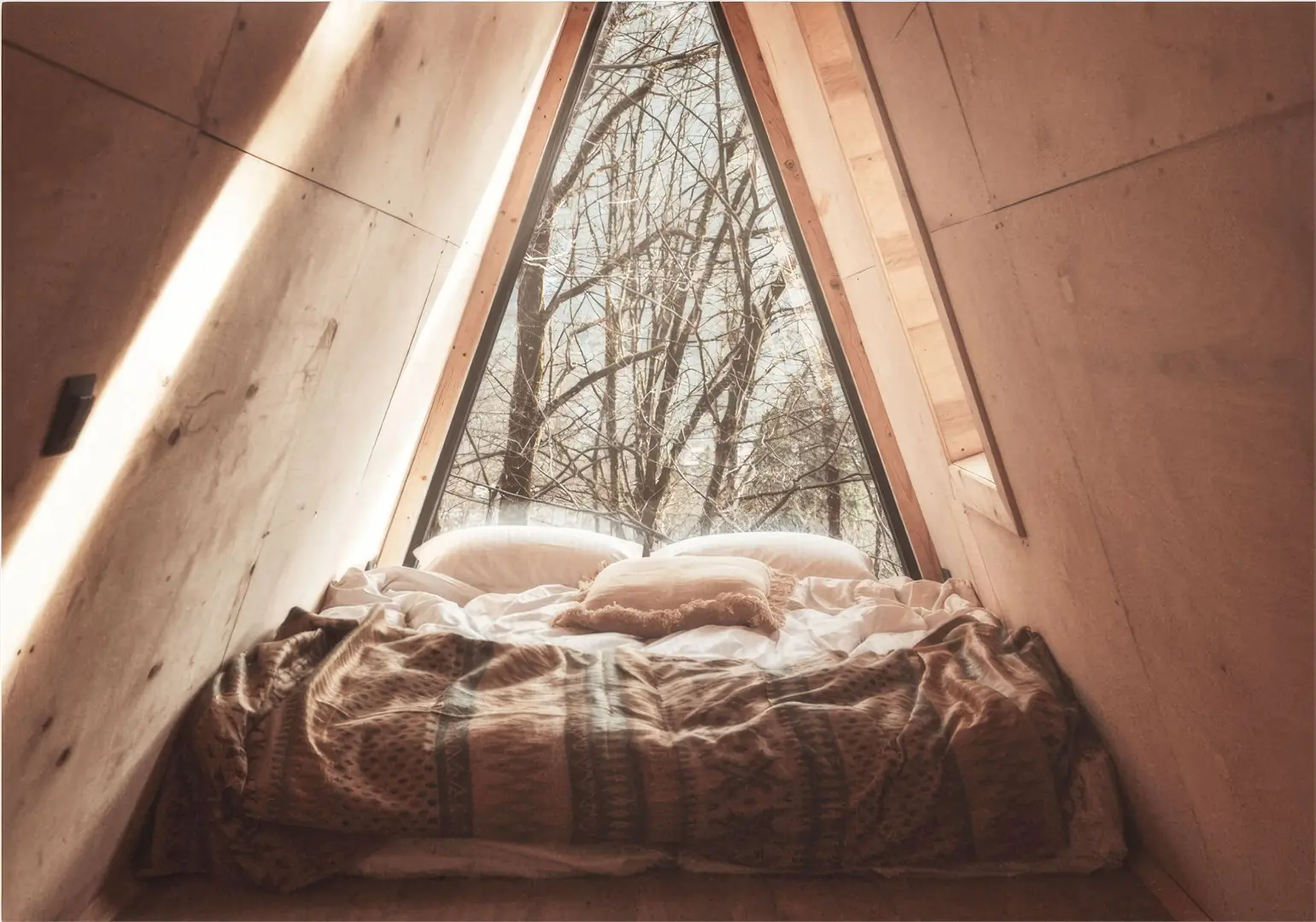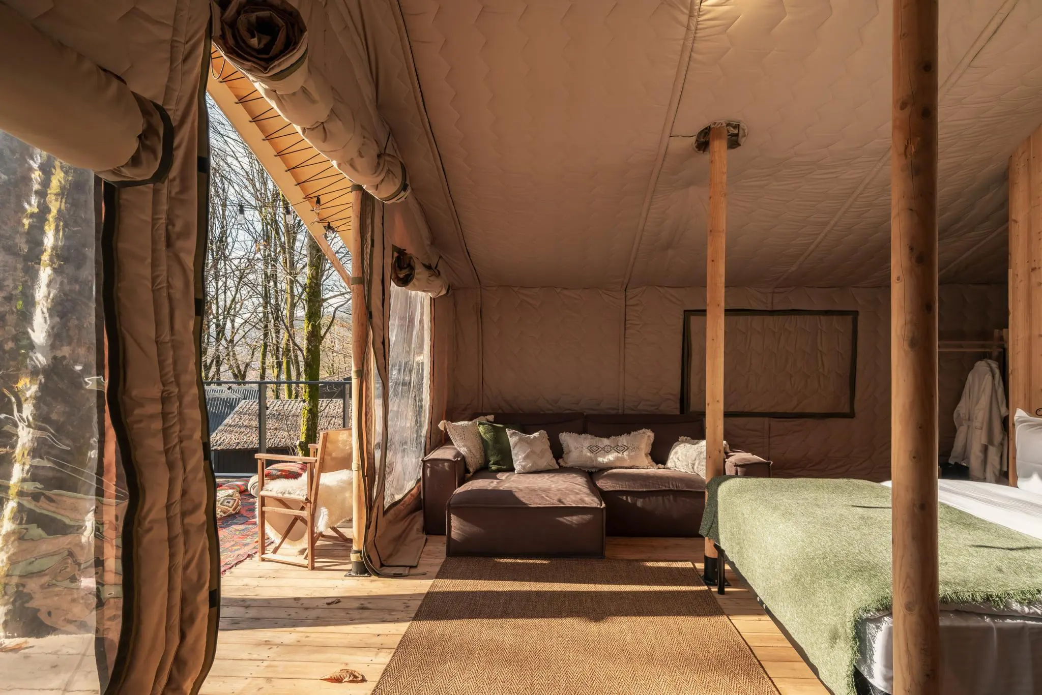 Гостей ждут стильные А-фреймы, сафари-тенты и сказочный домик «Облако» для двоих. Интерьеры продуманы до деталей — мебель ручной работы, натуральные ткани, камин, кофемашина и собственная купель на террасе.