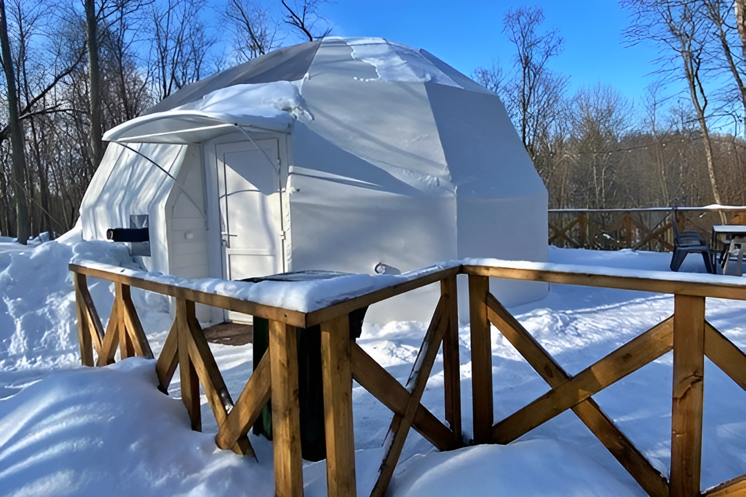 «Клевер» — глэмпинг в лесу с прозрачными тентами для наблюдения за небом и природой. Пространство сочетает комфорт отеля и атмосферу кемпинга, подходит для отдыха вдали от города круглый год.