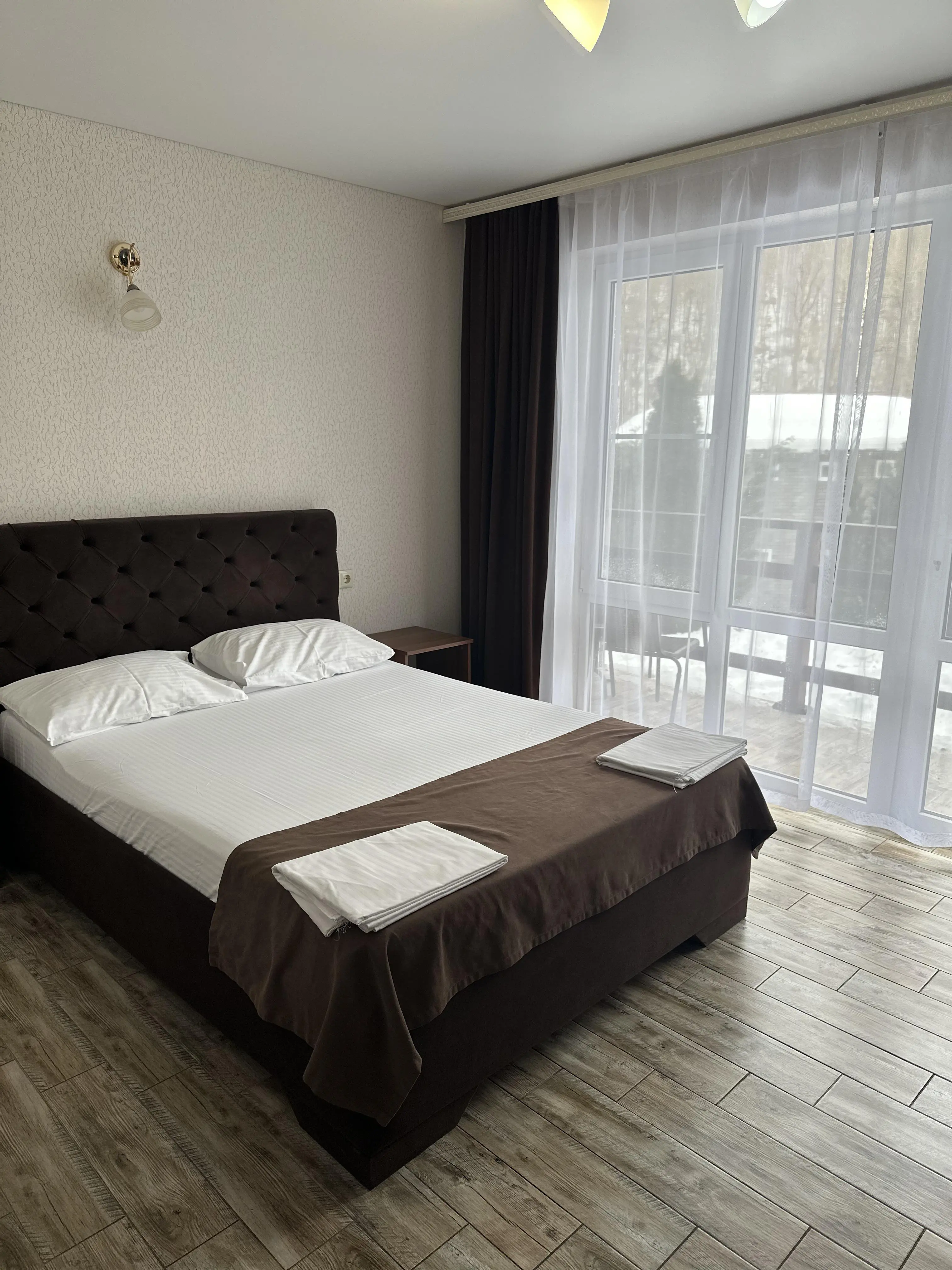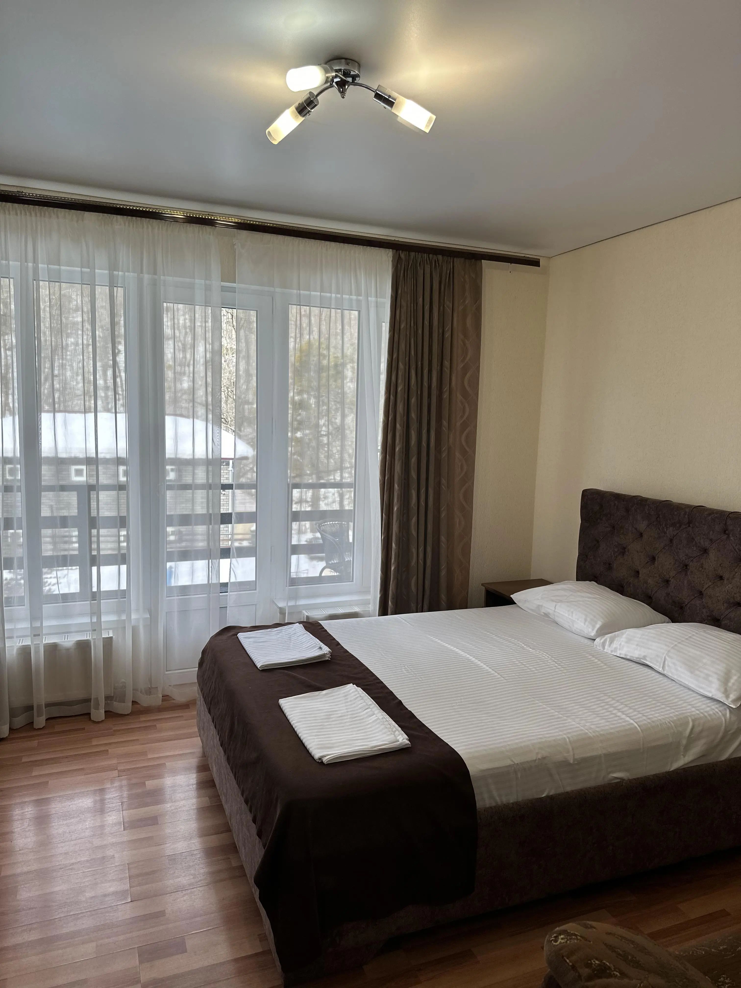 Гостевой дом предлагает комфортабельные номера как для пары или семьи с ребёнком, так и для большой компании. В стоимость проживания входит завтрак в кафе; также на территории есть оборудованные мангальные зоны с беседками, просторный бассейн под открытым небом и баня, где можно расслабиться после насыщенного дня.