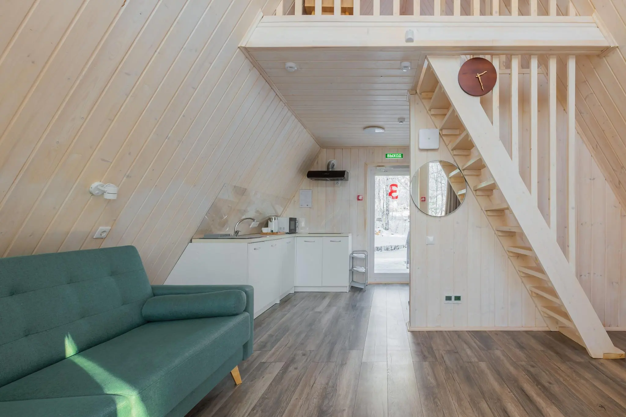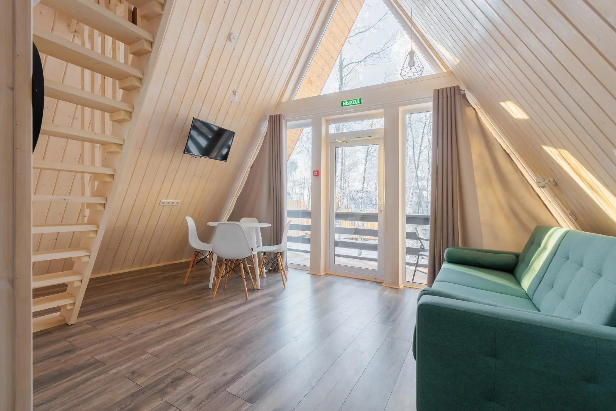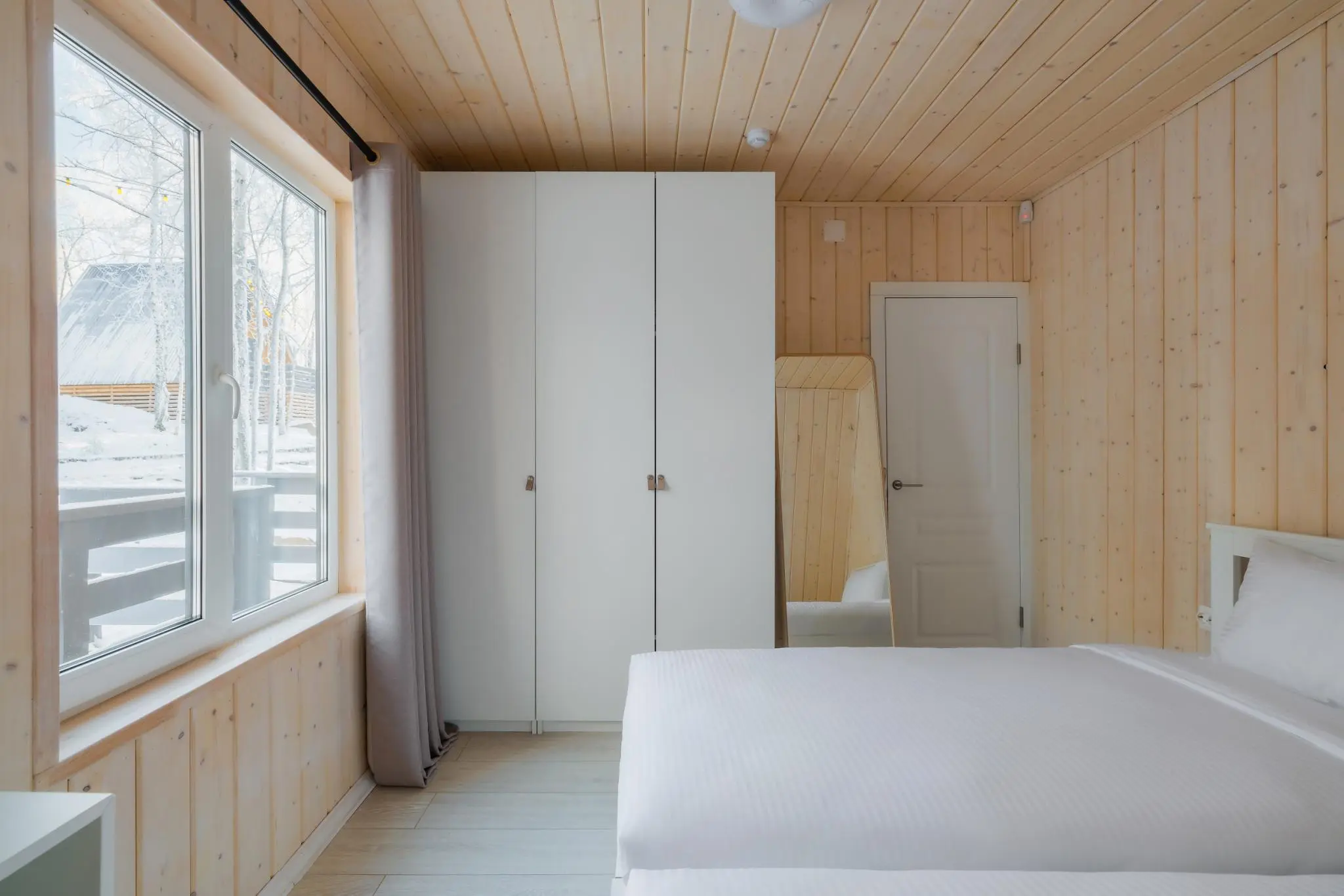 Дома рассчитаны на размещение от 4 до 8 человек, оснащены панорамными окнами, террасой, кухонной зоной, сауной и всеми удобствами. В каждом коттедже установлена система «Умный дом», что позволит гостю удаленно управлять освещением и отоплением в домах, а отелю – контролировать и экономить электроэнергию. Хостелы расположены у подножия горы, где сосредоточена основная инфраструктура курорта. Гостям предлагается размещение в номерах Эконом, Стандарт и Полулюкс от 2 до 8 человек.