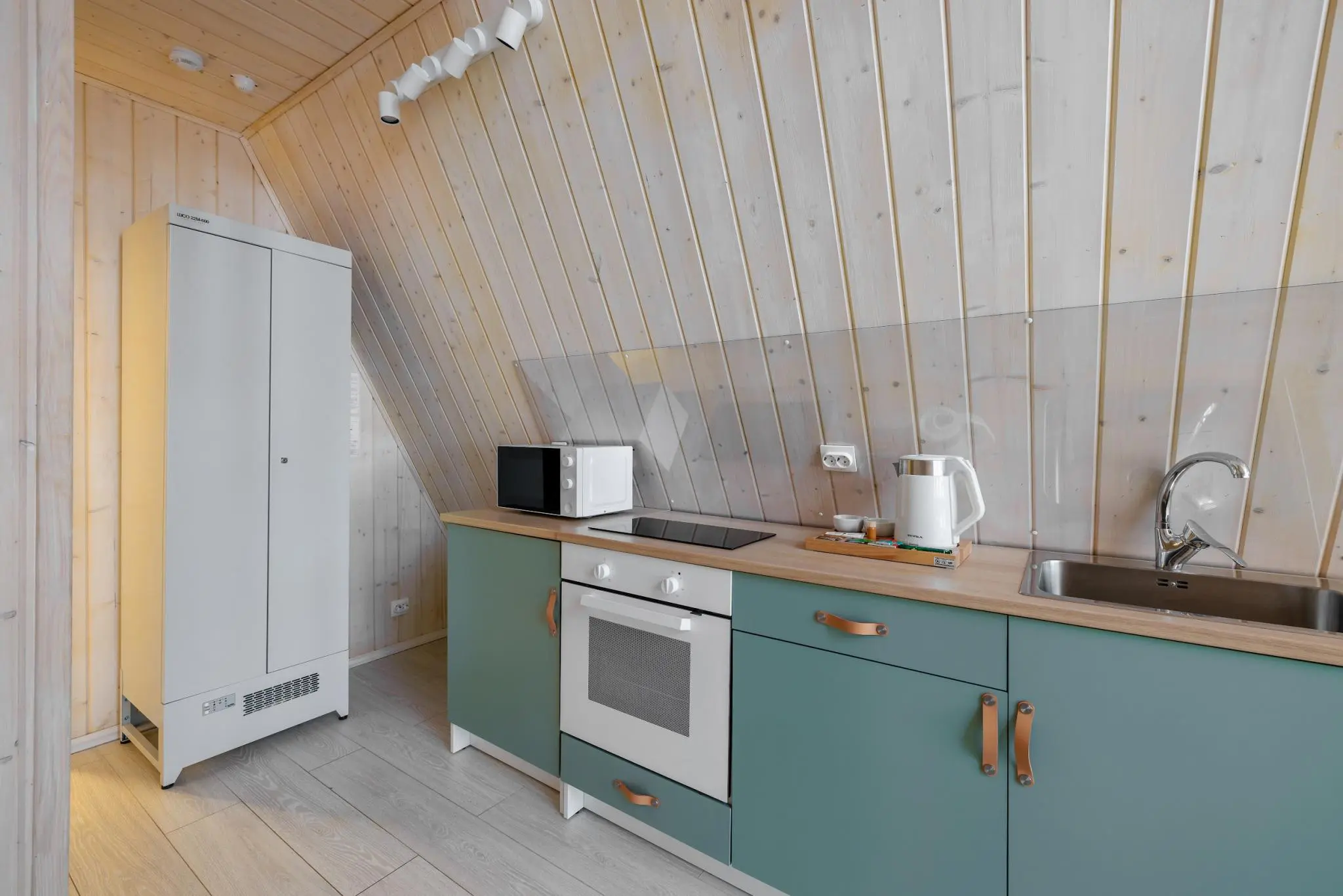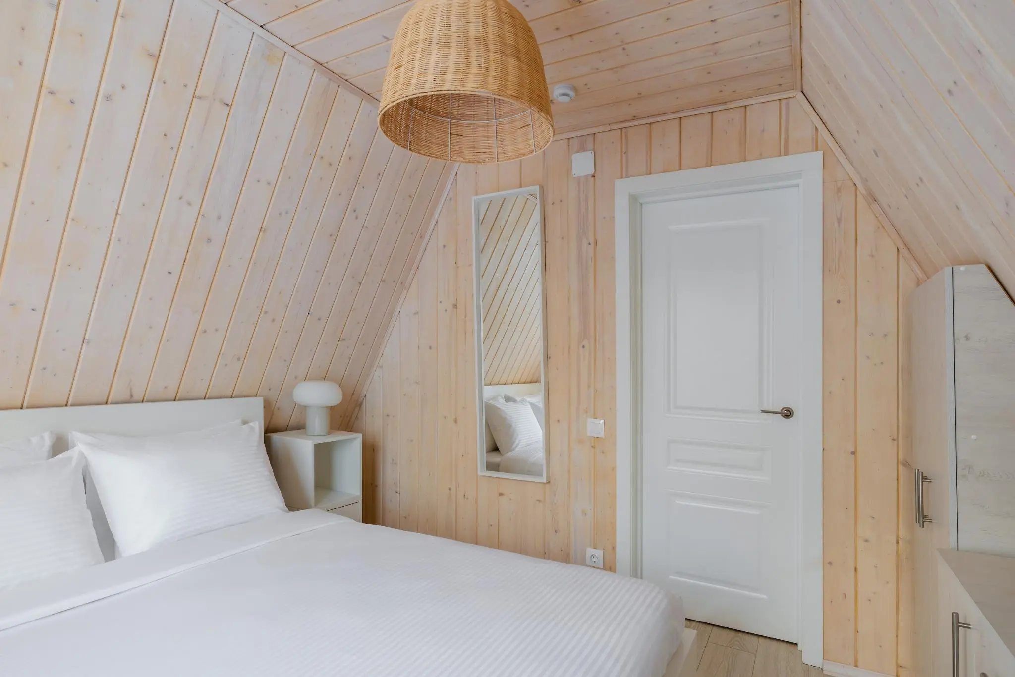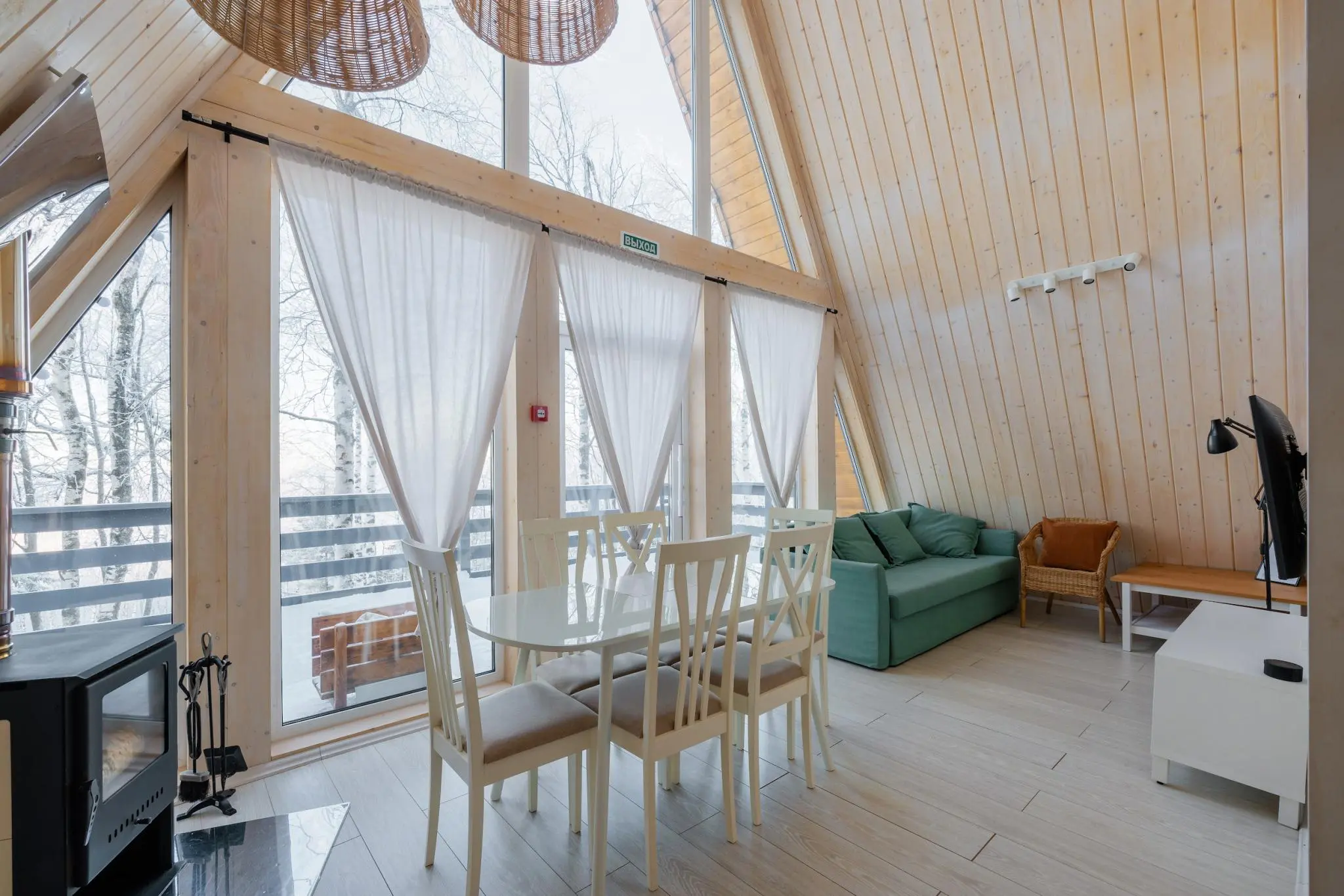 Дома рассчитаны на размещение от 4 до 8 человек, оснащены панорамными окнами, террасой, кухонной зоной, сауной и всеми удобствами. В каждом коттедже установлена система «Умный дом», что позволит гостю удаленно управлять освещением и отоплением в домах, а отелю – контролировать и экономить электроэнергию. Хостелы расположены у подножия горы, где сосредоточена основная инфраструктура курорта. Гостям предлагается размещение в номерах Эконом, Стандарт и Полулюкс от 2 до 8 человек.
