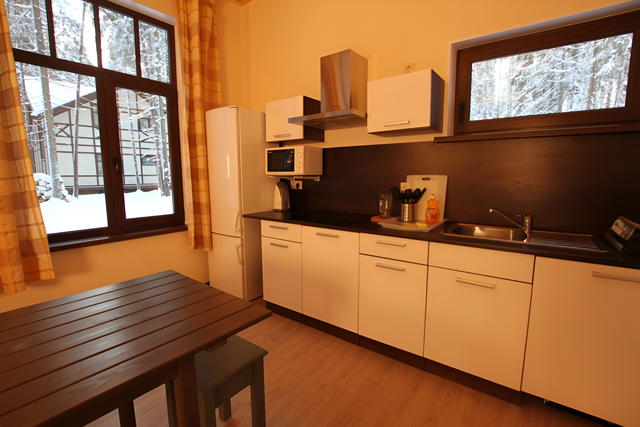 Гостей ждут уютные коттеджи со всеми удобствами: полноценной кухней, обеденной зоной, ванной комнатой и собственной мангальной площадкой рядом. Для пары, семьи с ребёнком или двух друзей, планирующих короткое, но насыщенное путешествие, есть мини-гостиница с небольшими, но комфортабельными номерами.