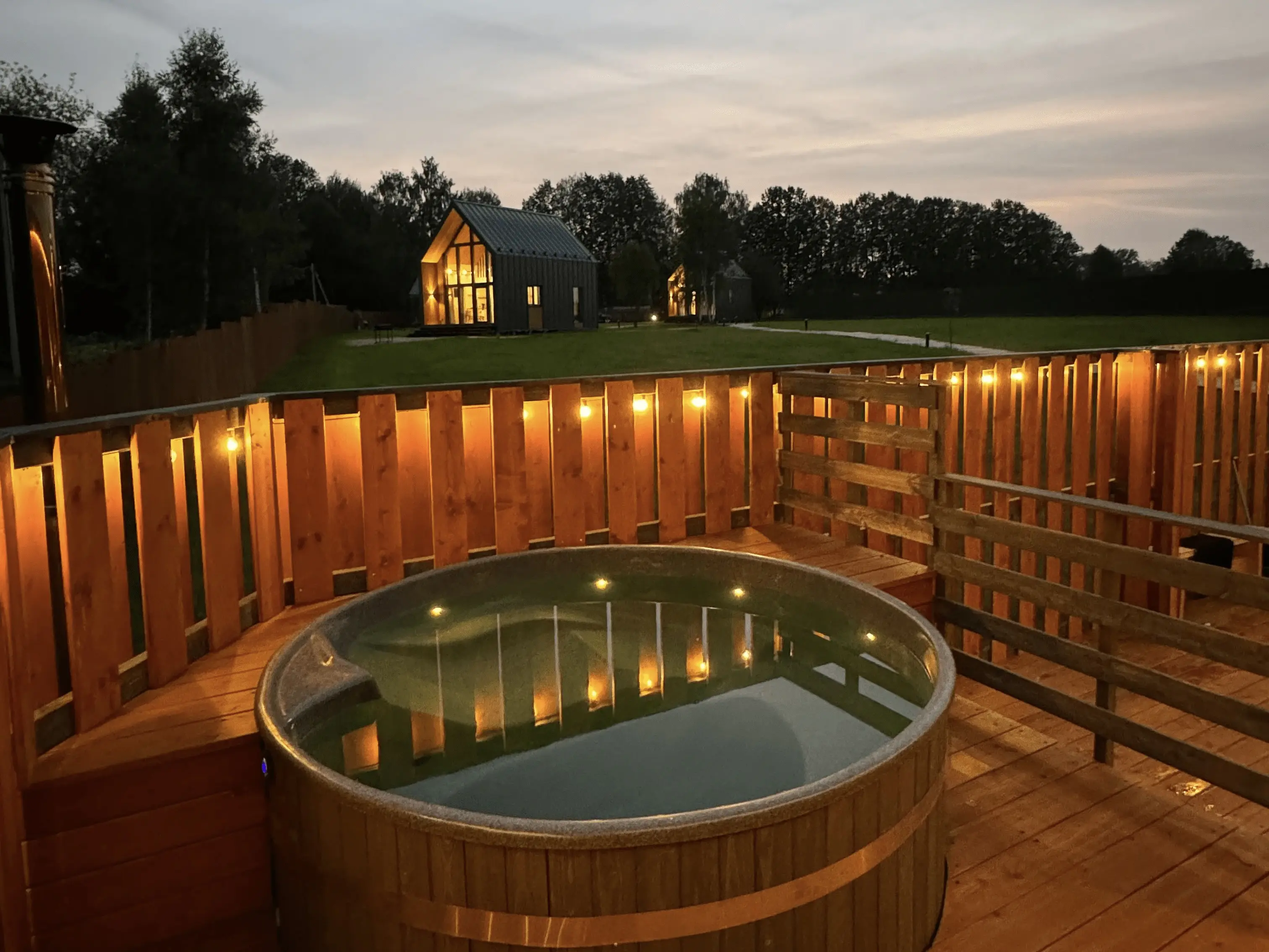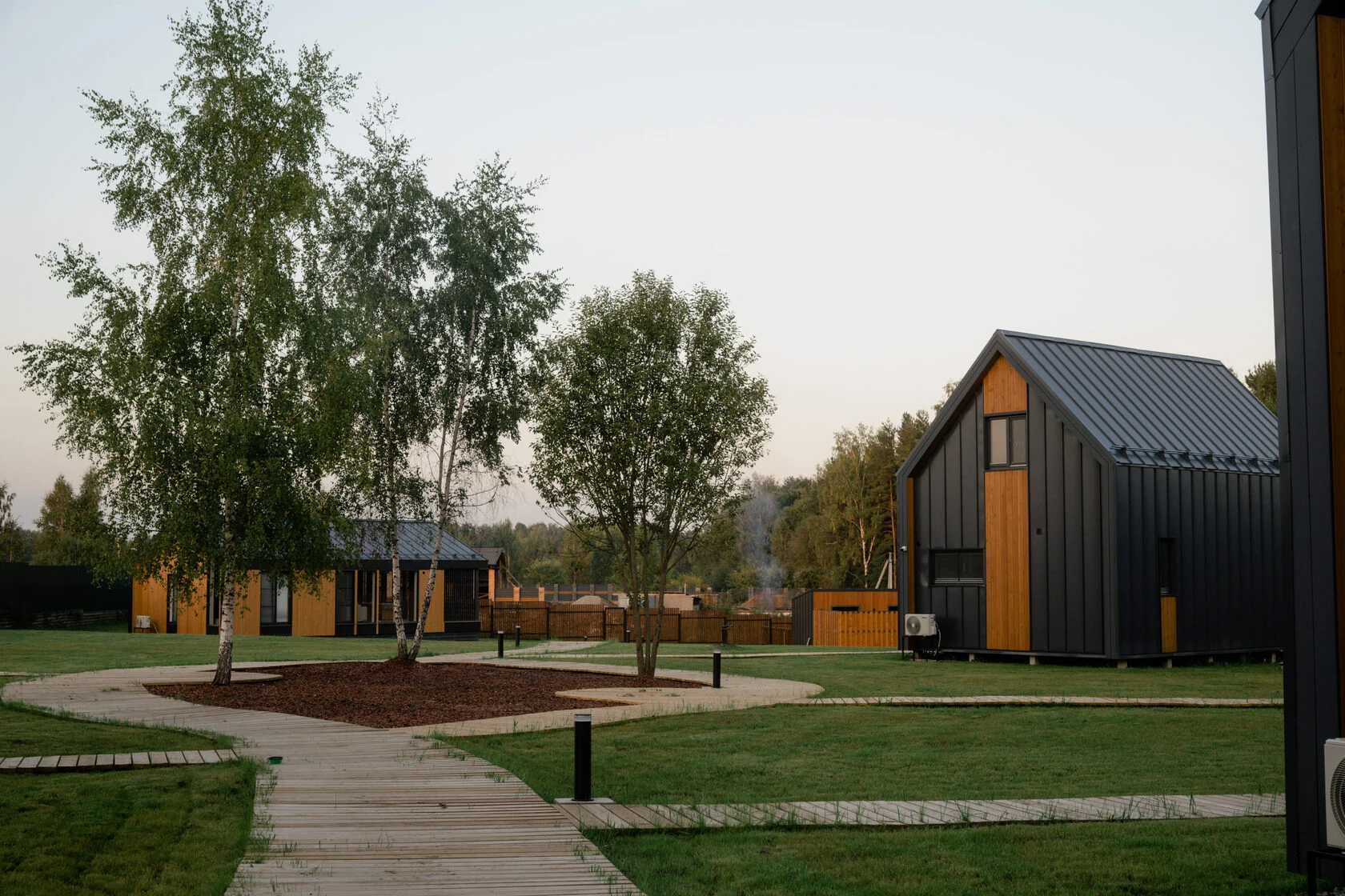 Современные домики в арендудля отдыха на природе недалеко от Истринского водохранилища. Гостям предлагается проживание в уютных комфортабельных домах в стиле барнхаус с доступом к своей придомовой территории, где есть костровая и мангальная зоны. Рядом с домиками имеется банный комплекс, с баней и купелью на дровах.