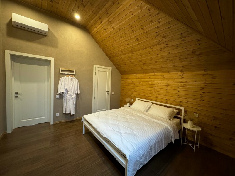 Здесь есть русская баня, бассейн, мангальная зона с беседкой, а также современный караоке. Территория огорожена, оборудована видеонаблюдением и предоставляет бесплатную парковку для гостей.