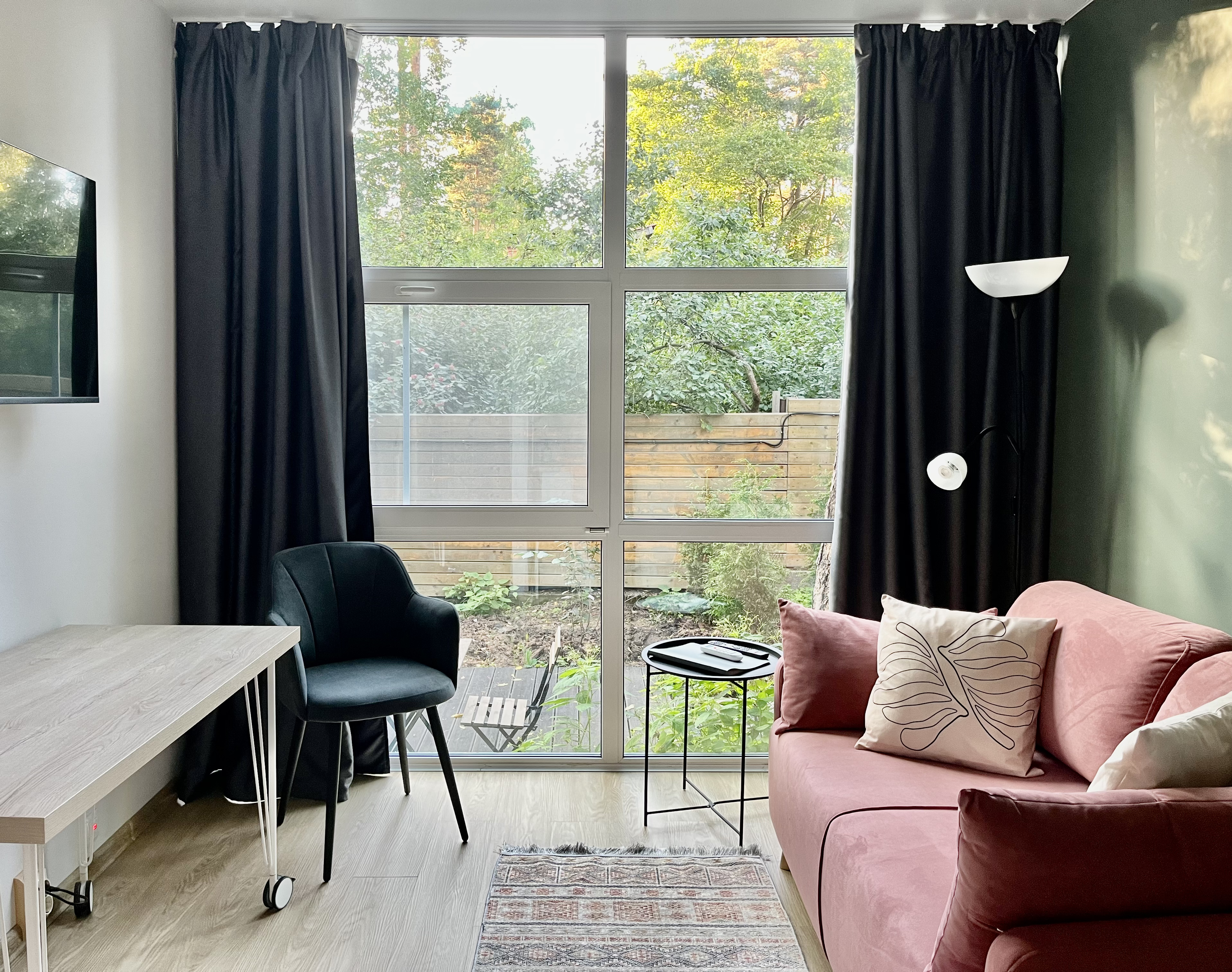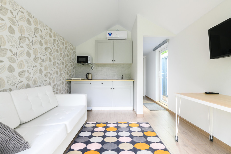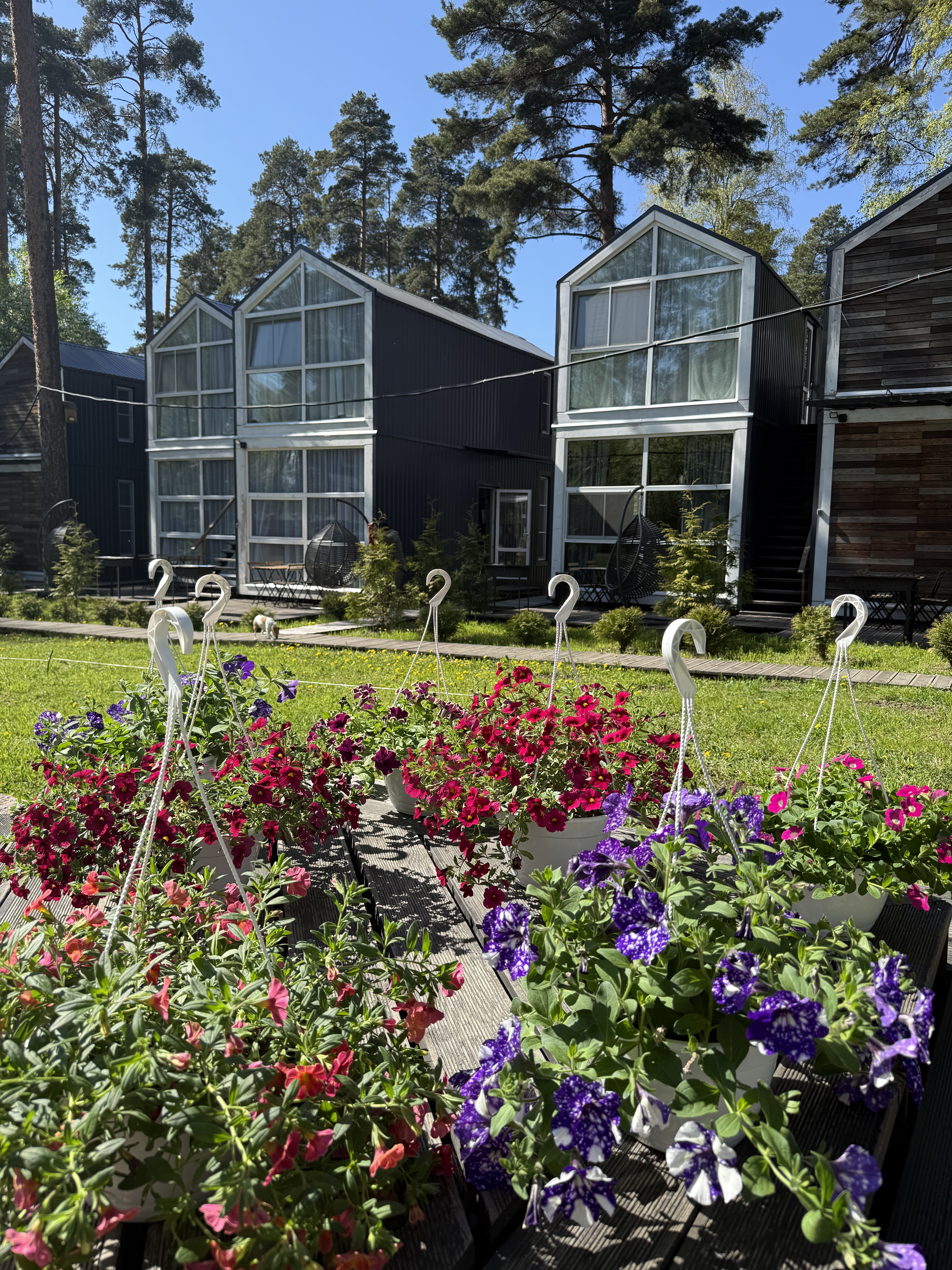 Каждый барнхаус включает в себя два апартамента, занимающих по целому этажу и имеющих собственный вход. Из удобств внутри — полноценная кухня, кондиционер, Wi-Fi. Здесь вы сможете уединиться с семьёй или любимым человеком, просыпаться по утрам под пение птиц и наслаждаться за завтраком красивым видом на растущие вокруг сосны, обсуждая, чем бы заняться сегодня.