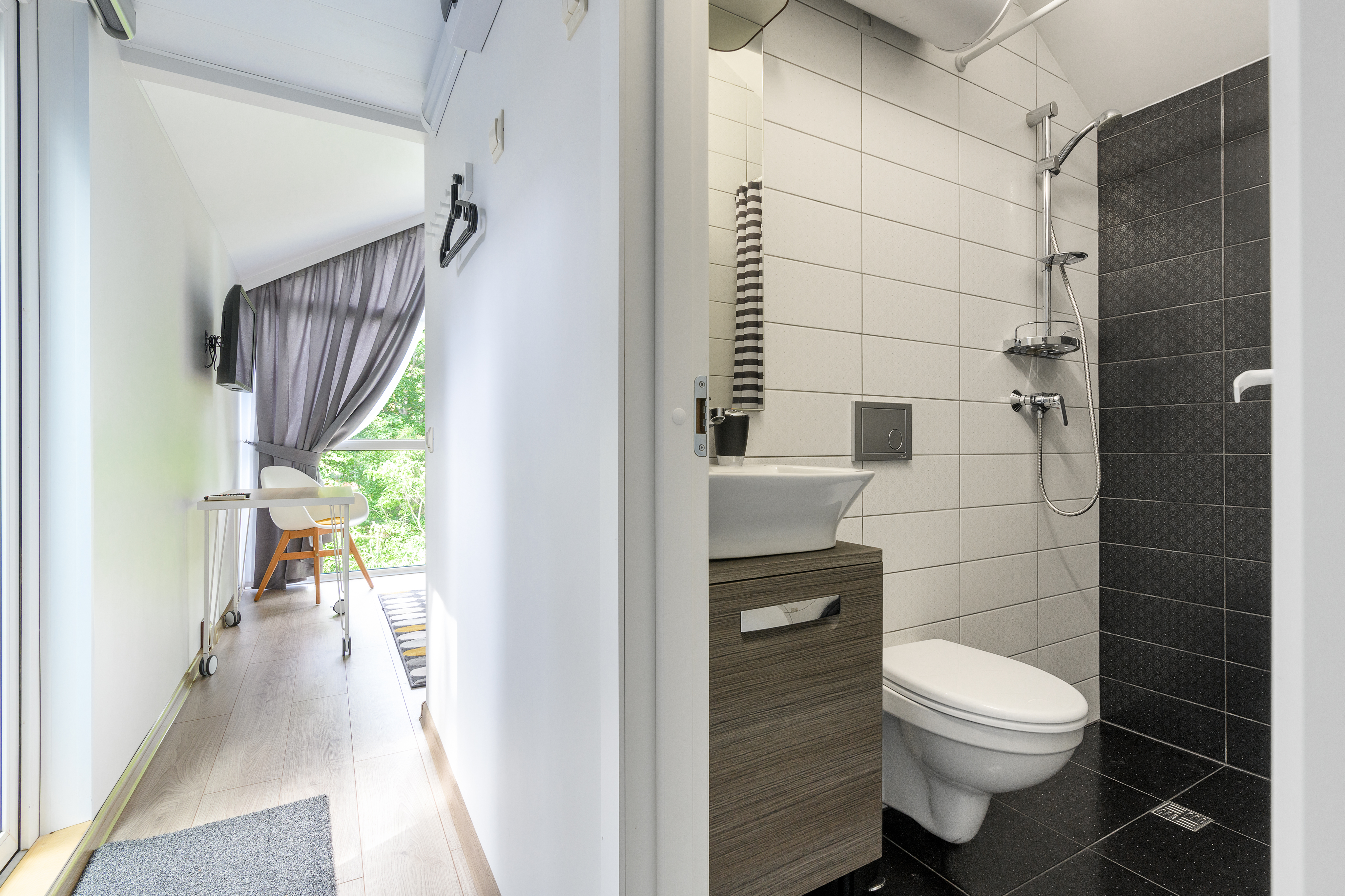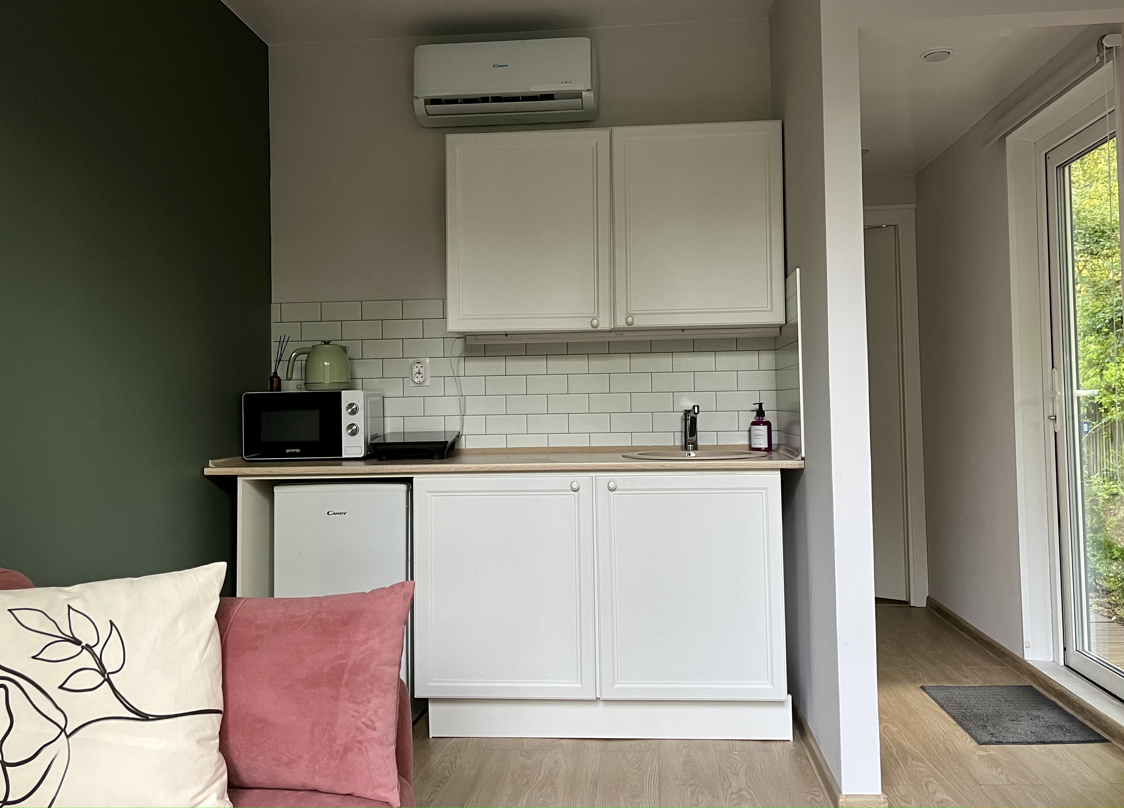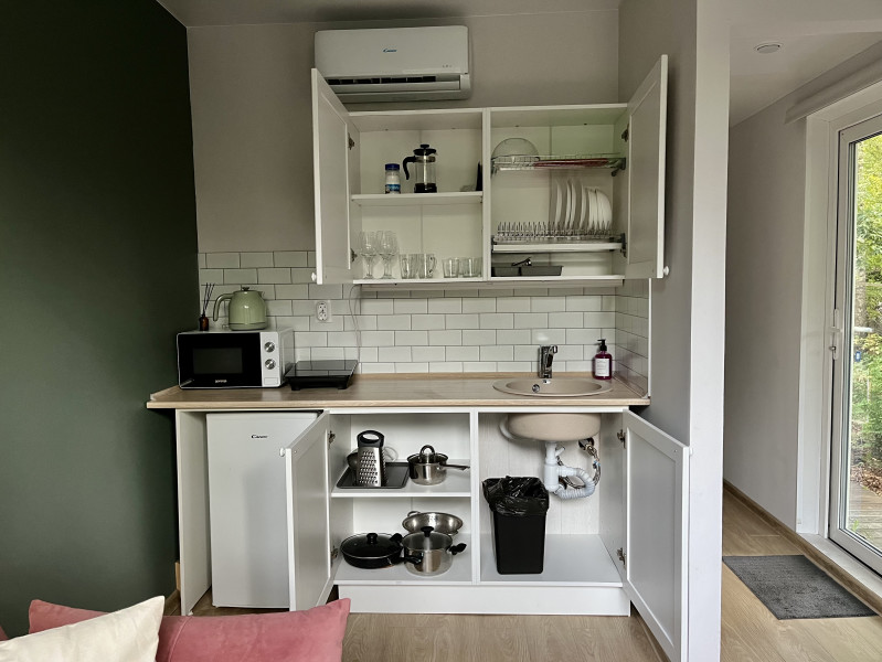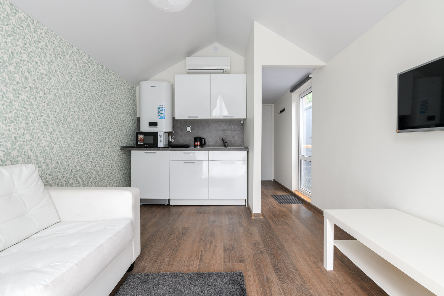 Каждый барнхаус включает в себя два апартамента, занимающих по целому этажу и имеющих собственный вход. Из удобств внутри — полноценная кухня, кондиционер, Wi-Fi. Здесь вы сможете уединиться с семьёй или любимым человеком, просыпаться по утрам под пение птиц и наслаждаться за завтраком красивым видом на растущие вокруг сосны, обсуждая, чем бы заняться сегодня.