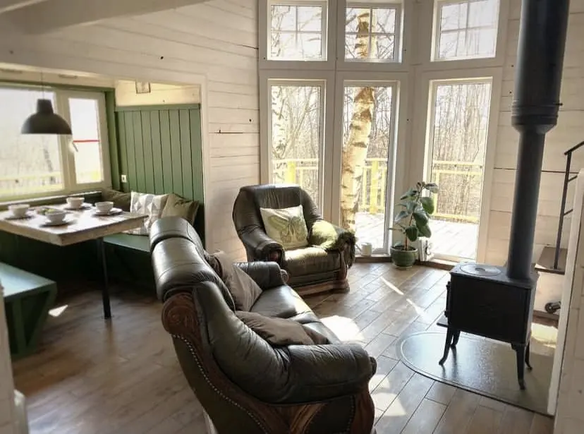 В каждом доме предусмотрена кухня, рядом — зона барбекю, а если готовить из фермерских продуктов, которые доставят к вашему приезду, любимые блюда получатся ещё вкуснее. Вечером можно посидеть у камина, а в тёплую погоду насладиться красивым видом с террасы.
