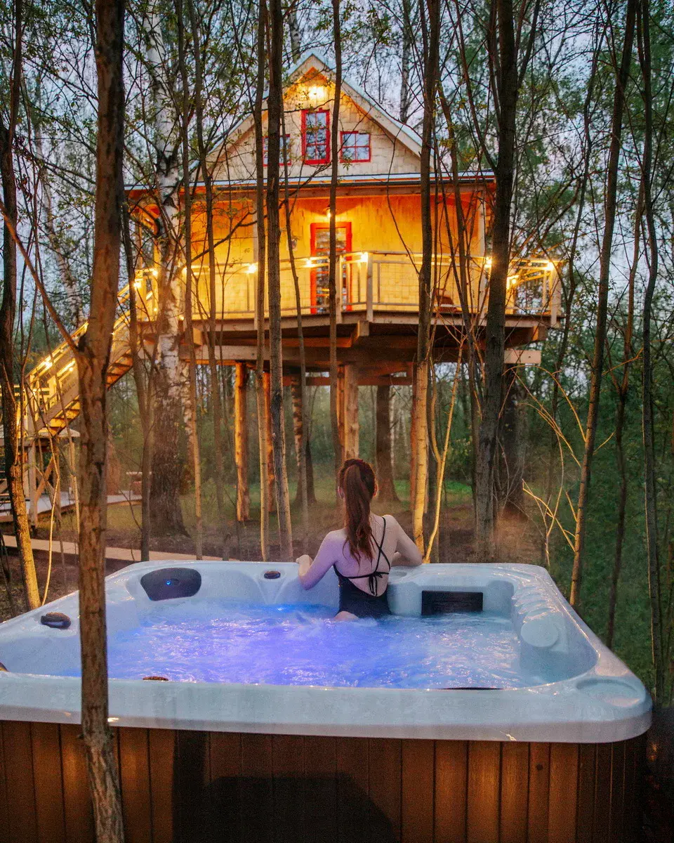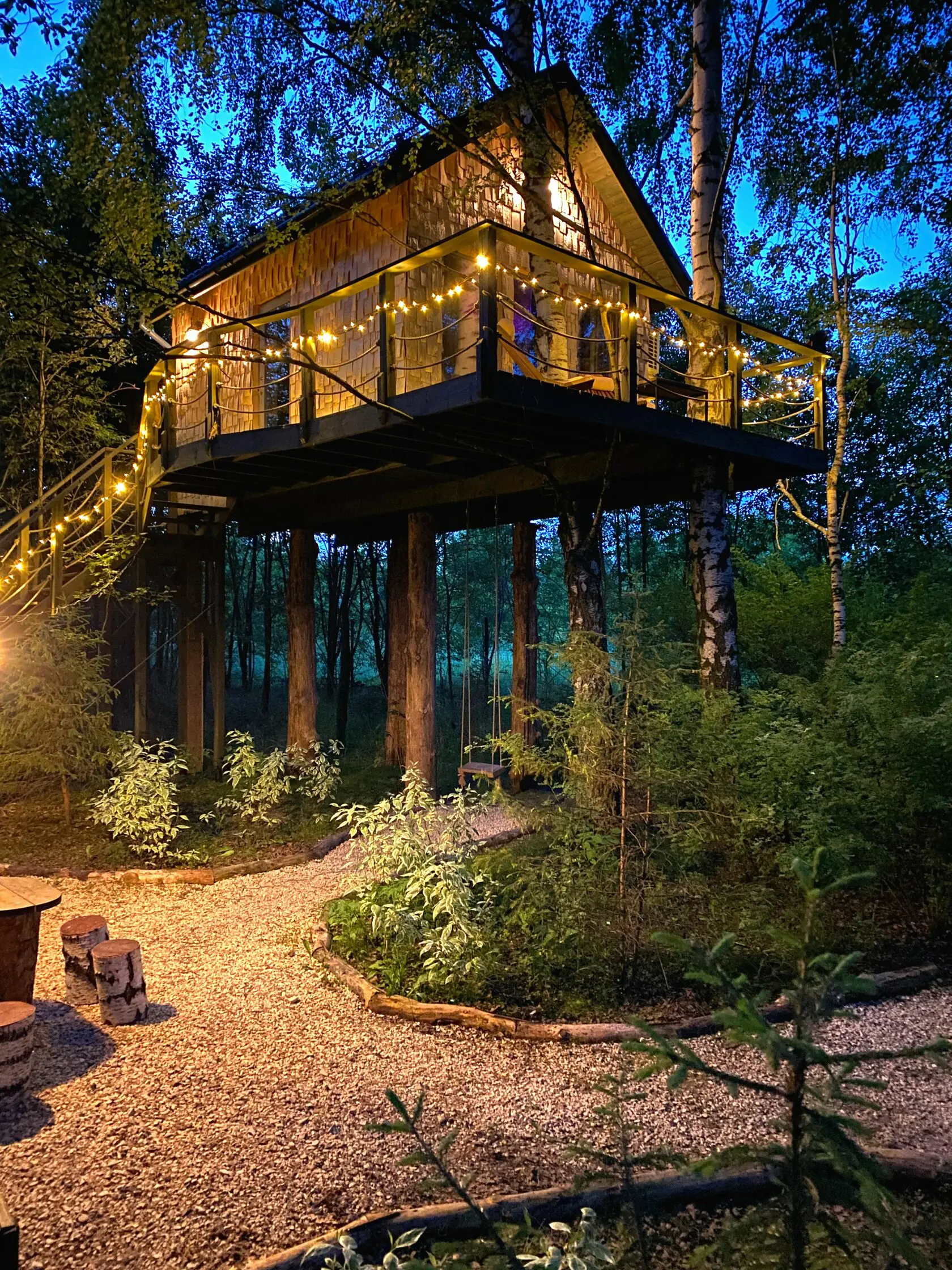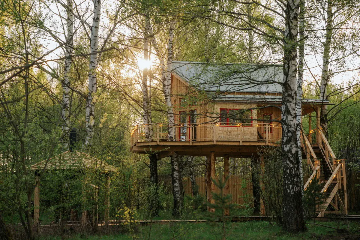 Здесь вас ждут уникальные уютные домики на деревьях, угнездившиеся в берёзовой роще. Среди них — Папин Дом, являющийся самым большим в России домом на дереве, и Мамин Дом — единственный в мире дом такого типа, доступный для инвалидов-колясочников.