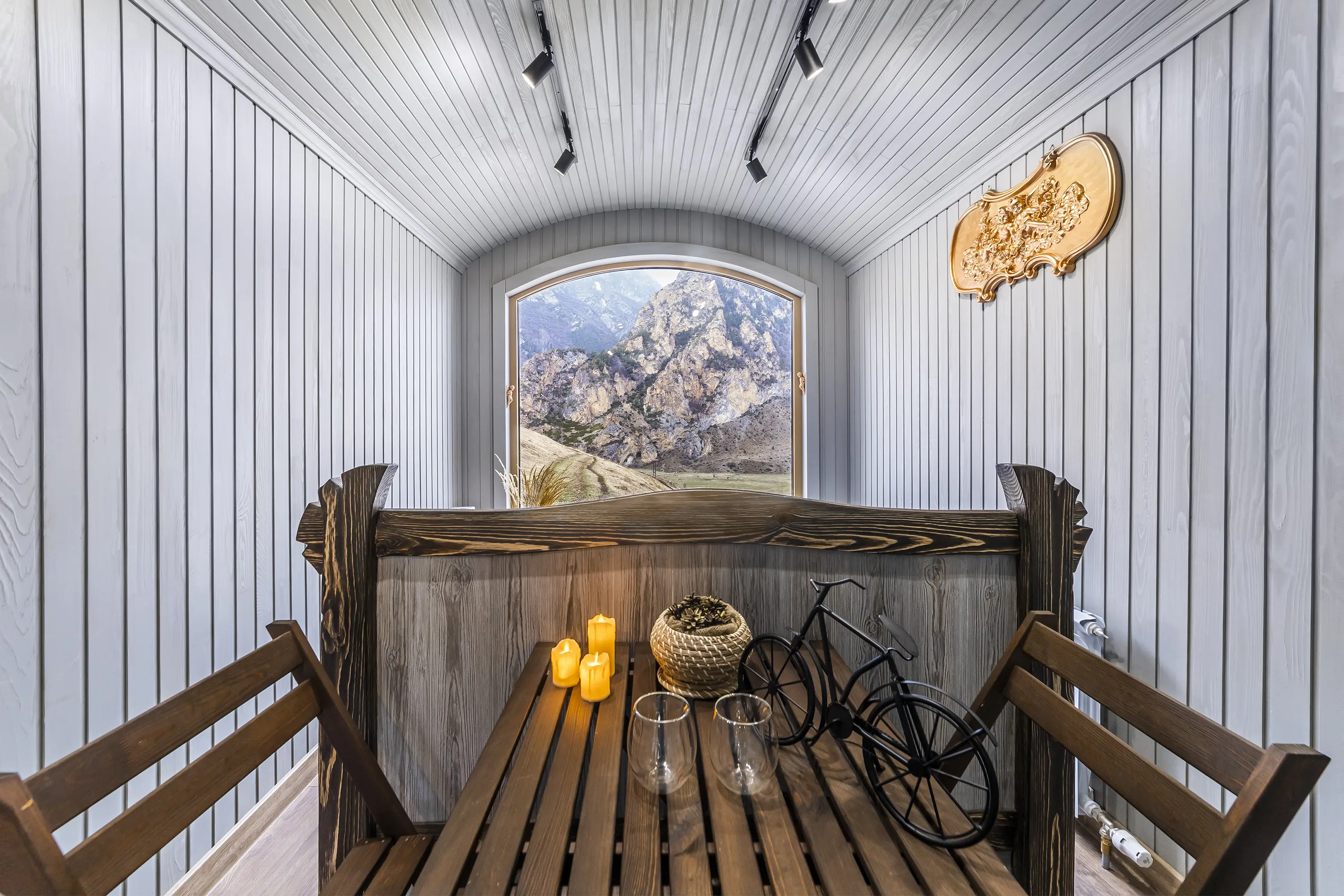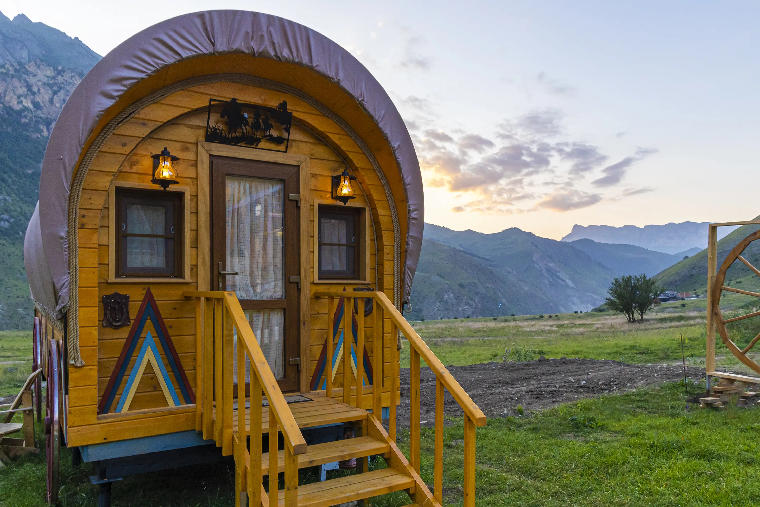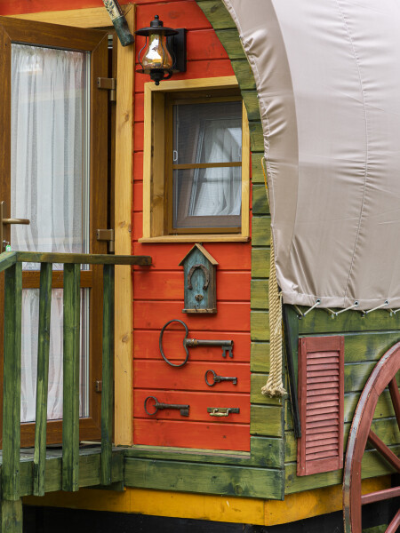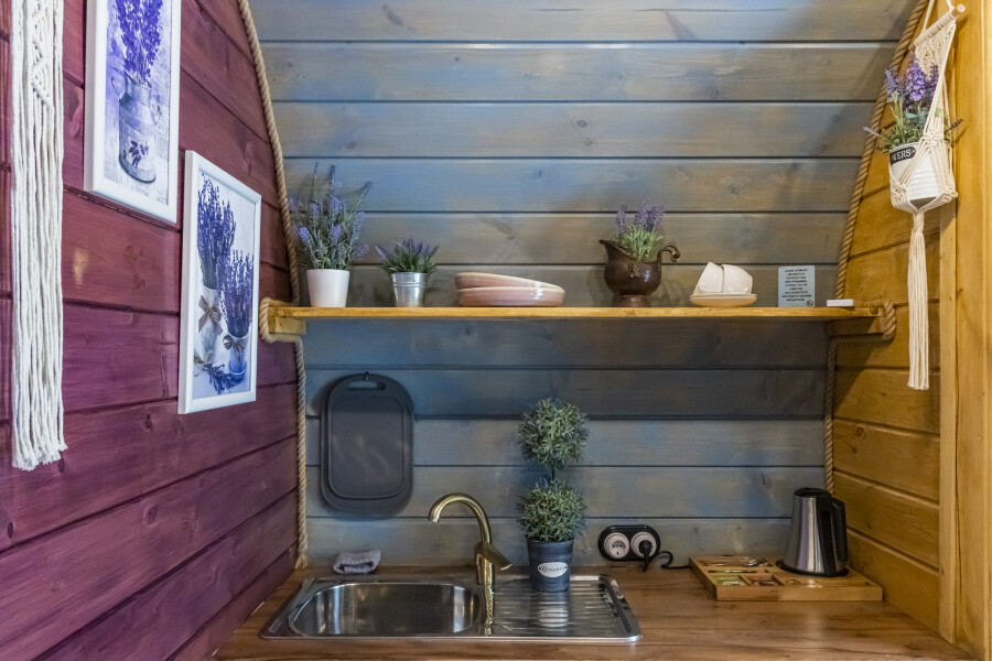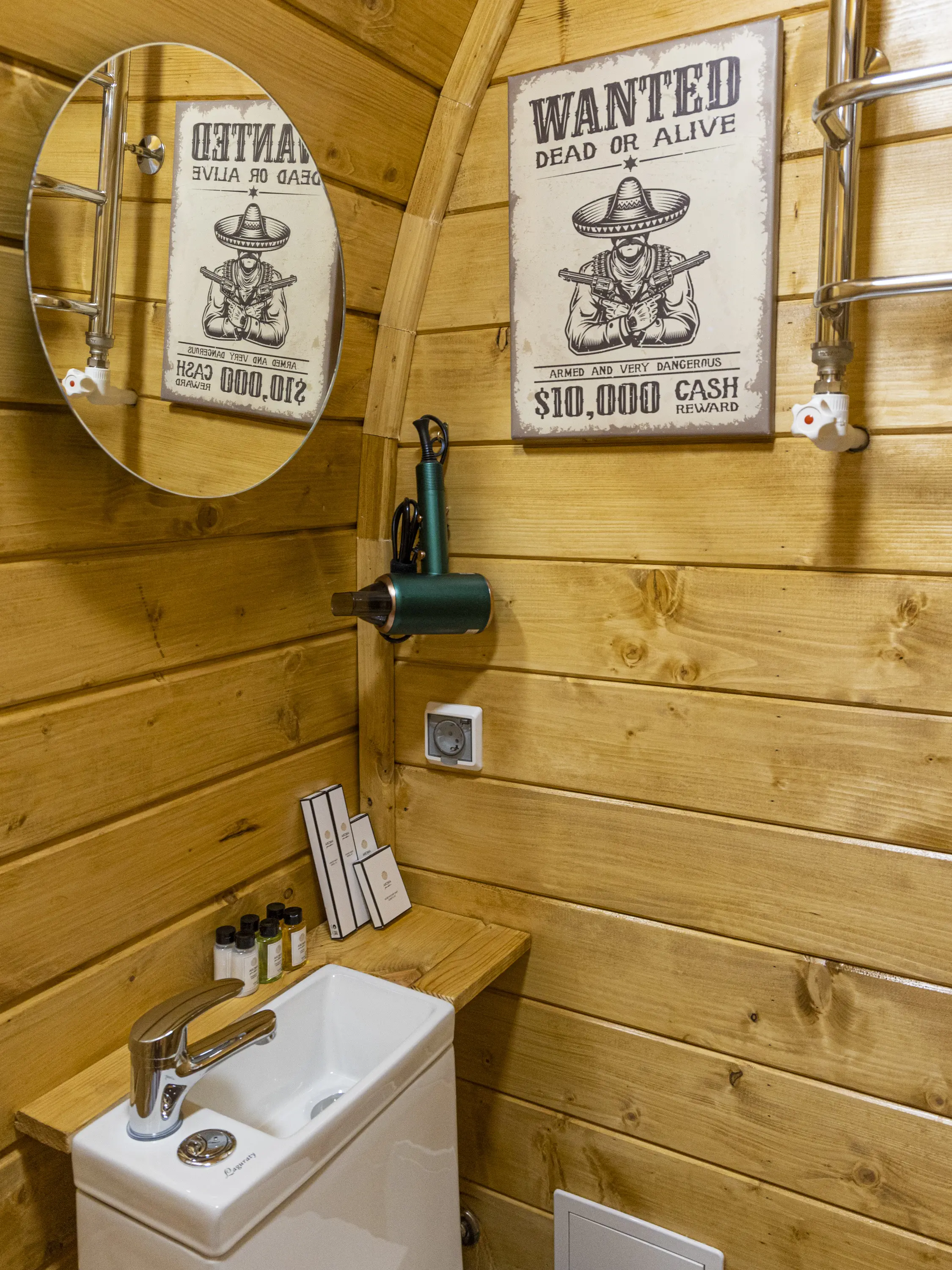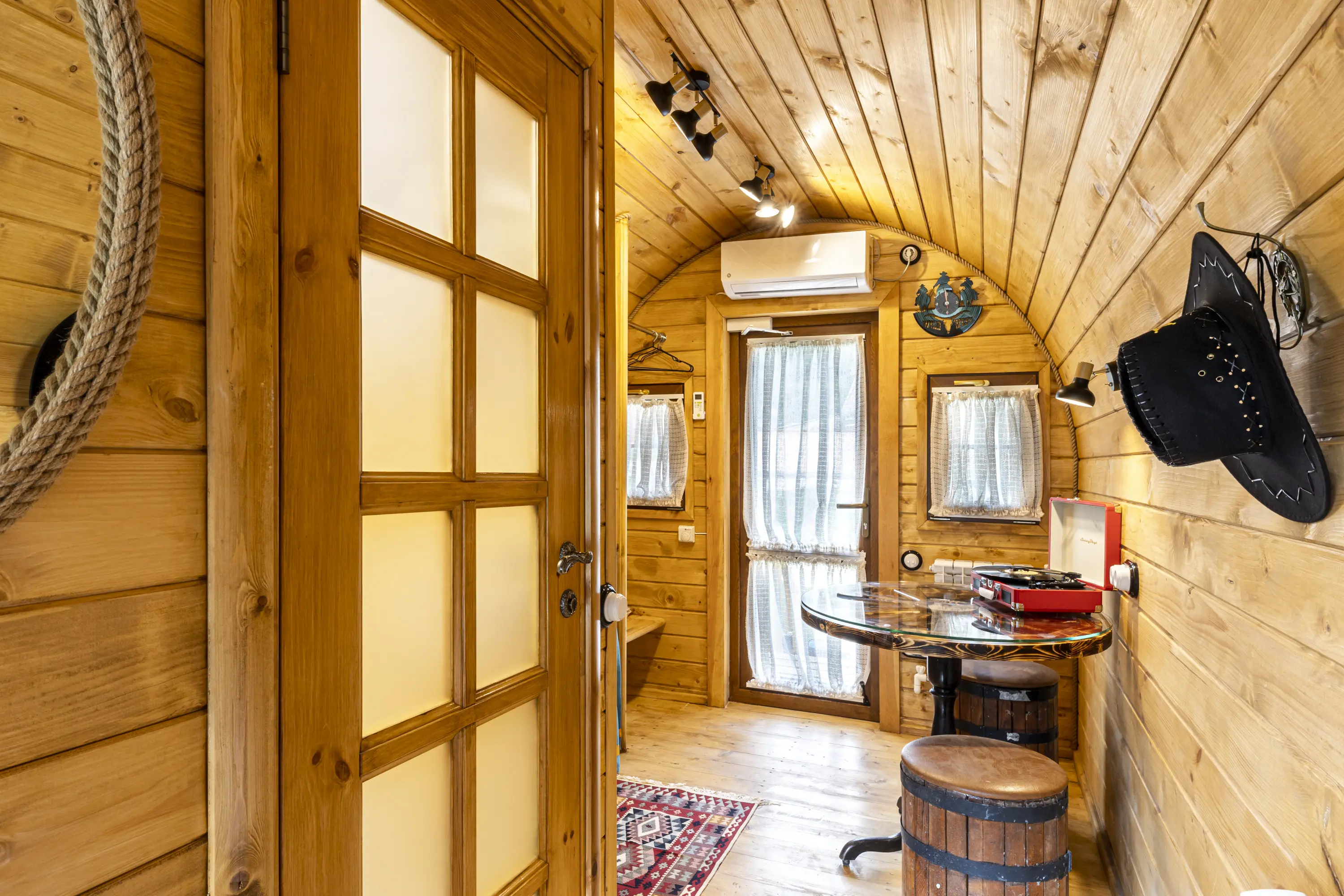 В одном из трёх городков, на которые словно разделён глэмпинг, каждый найдёт подходящий вариант размещения. Для небольшой семьи — уютные хаус-тенты, для пары — оригинальные и стильные домики-дилижансы.