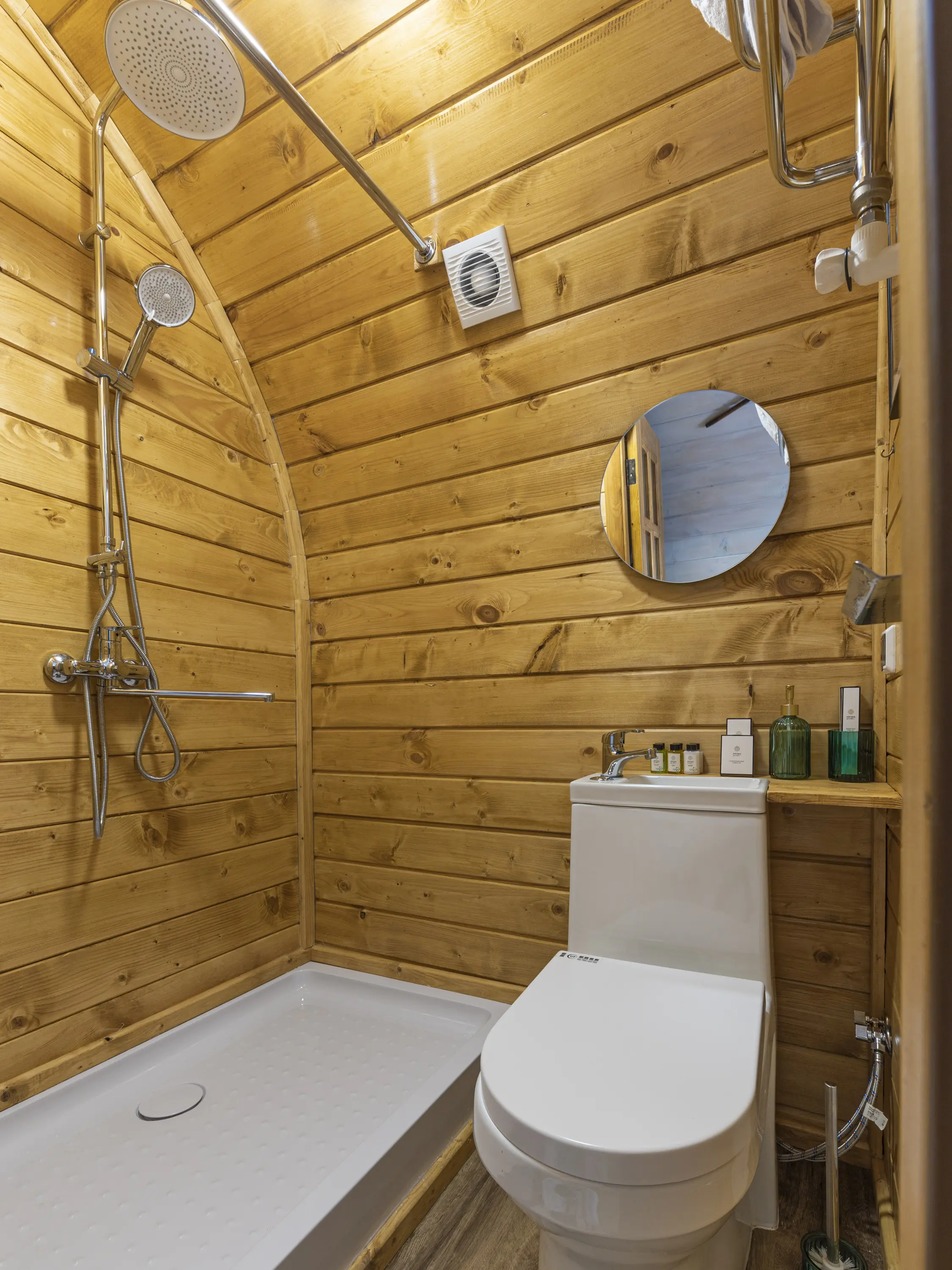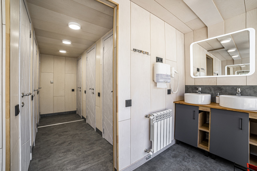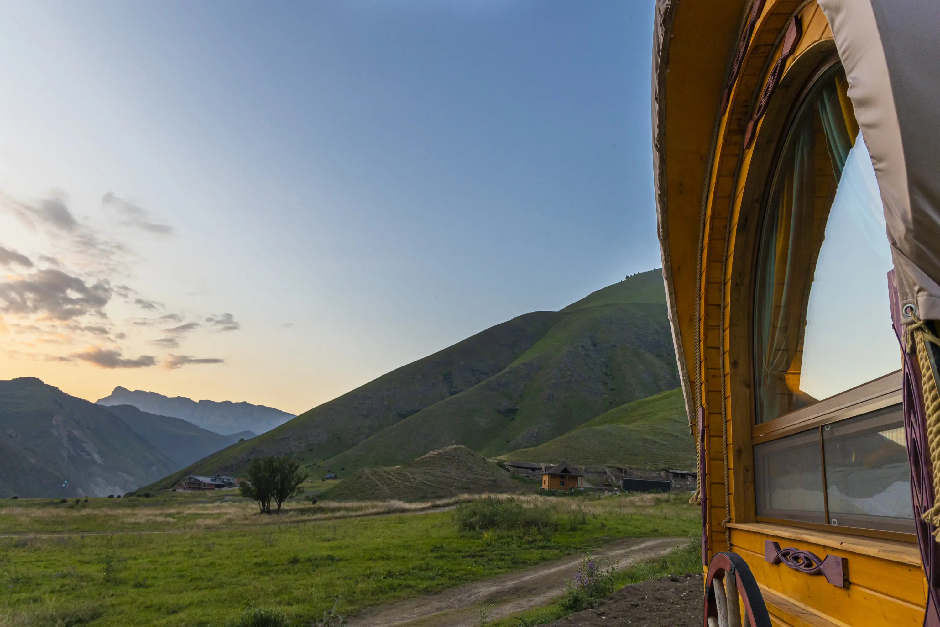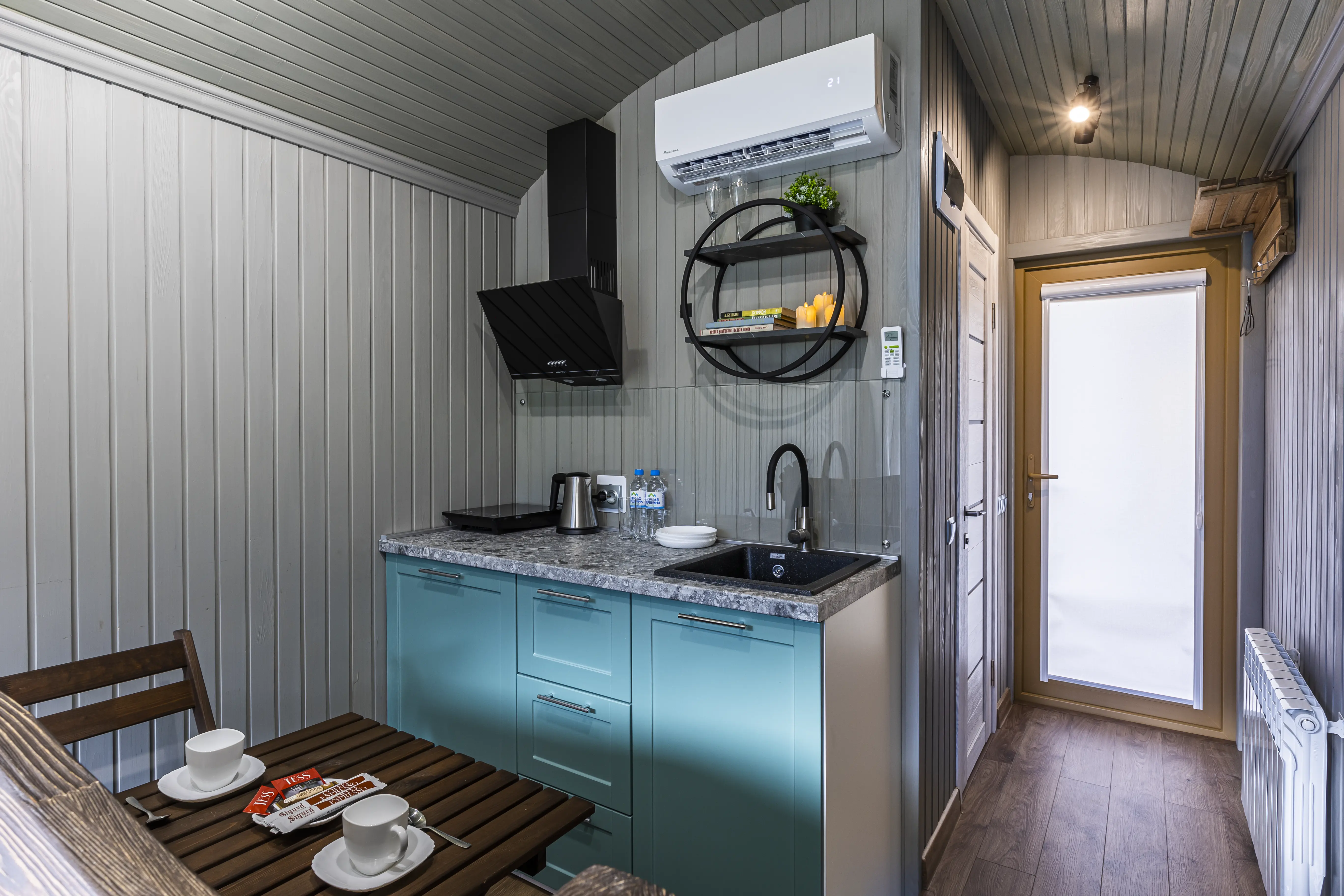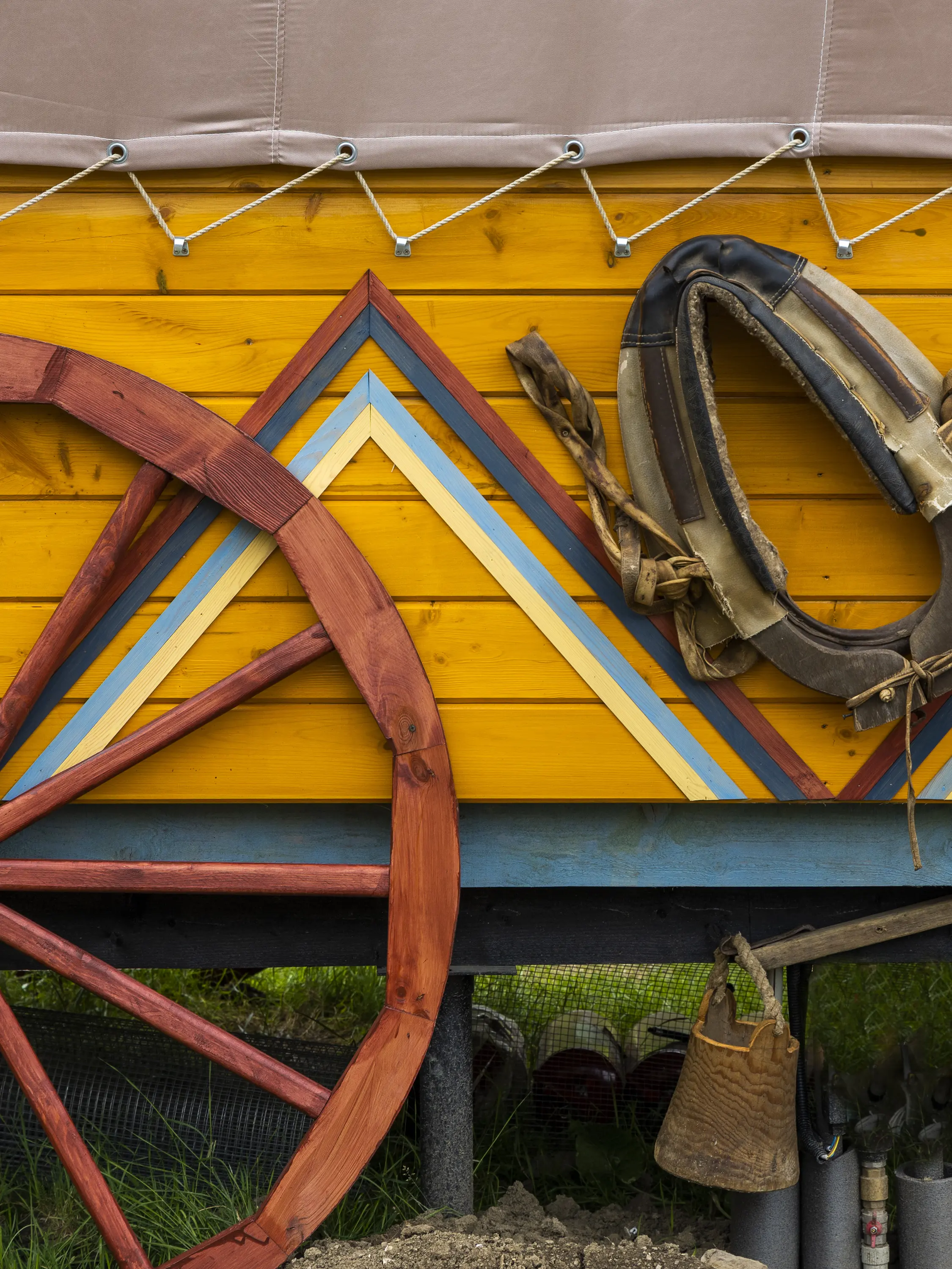 В одном из трёх городков, на которые словно разделён глэмпинг, каждый найдёт подходящий вариант размещения. Для небольшой семьи — уютные хаус-тенты, для пары — оригинальные и стильные домики-дилижансы.