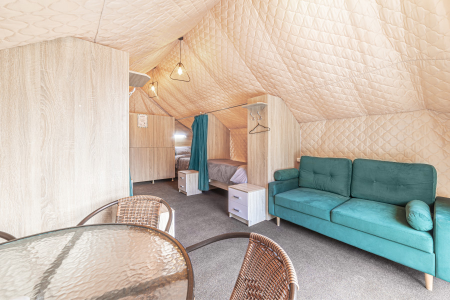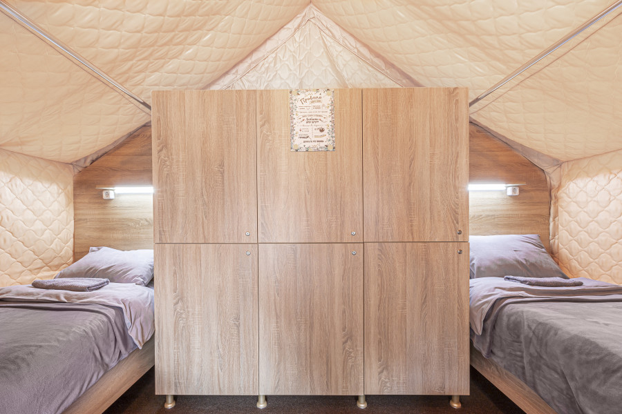 Сафари-тенты, рассчитанные на проживание четырёх-шести гостей, и вовсе универсальны: большая компания может снять такой тент полностью, а если вы путешествуете в одиночку, отличным решением станет забронировать в нём спальное место — так вы получите ещё и возможность приятно провести время в кругу единомышленников и завести новые знакомства.