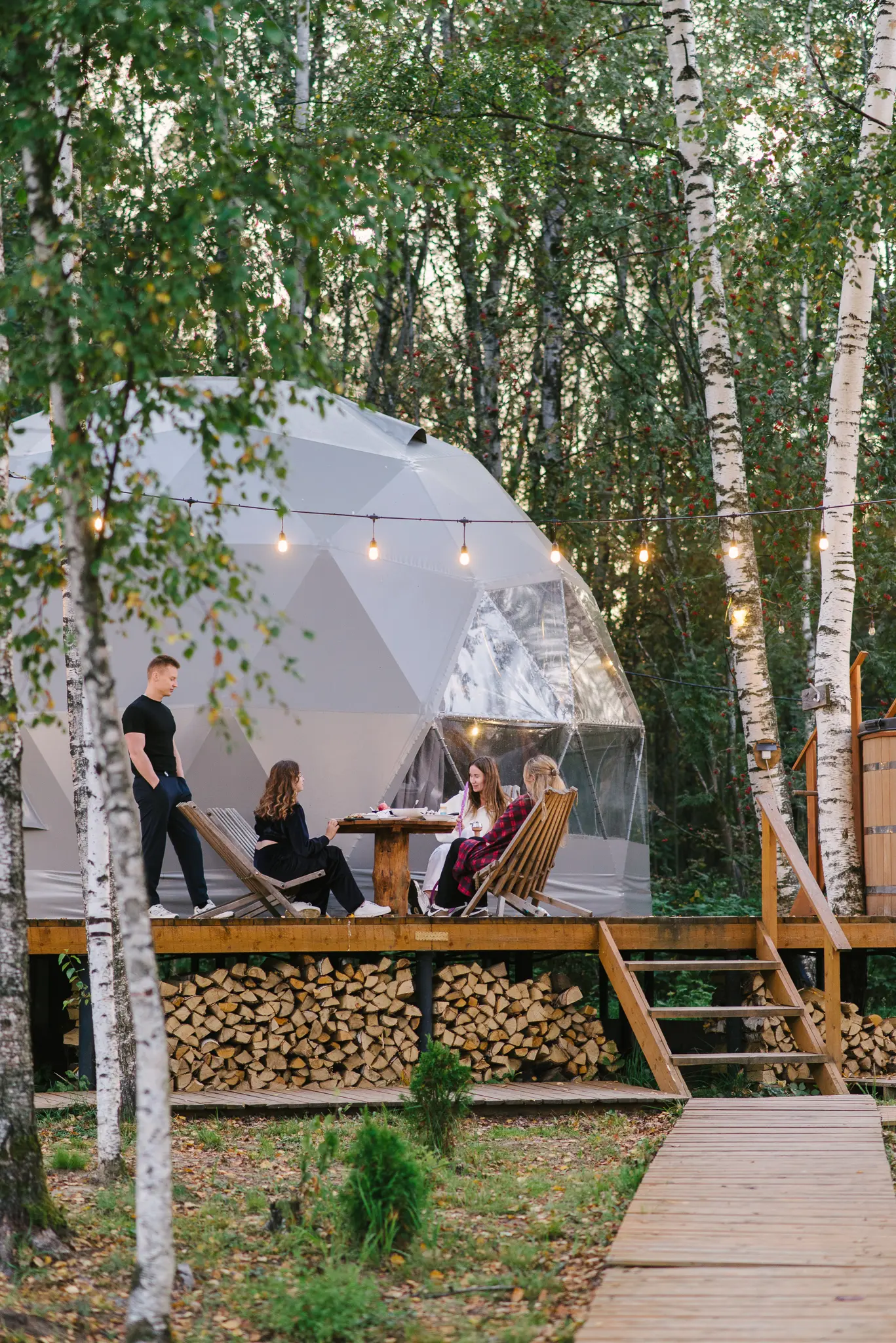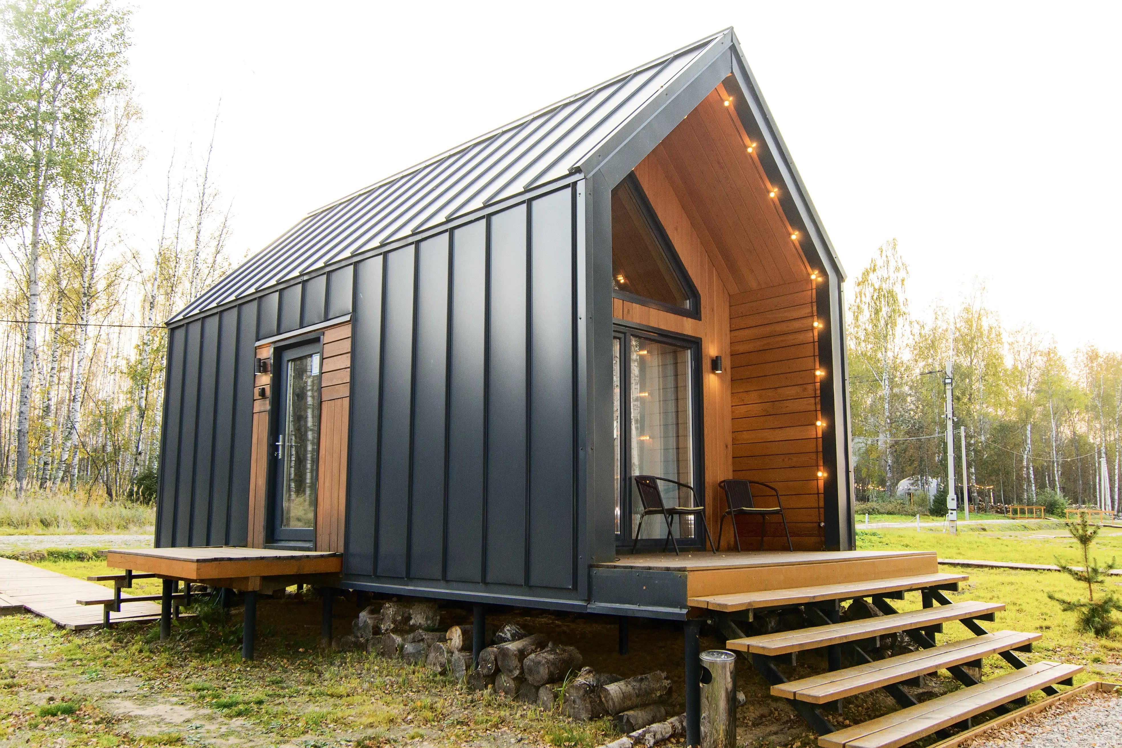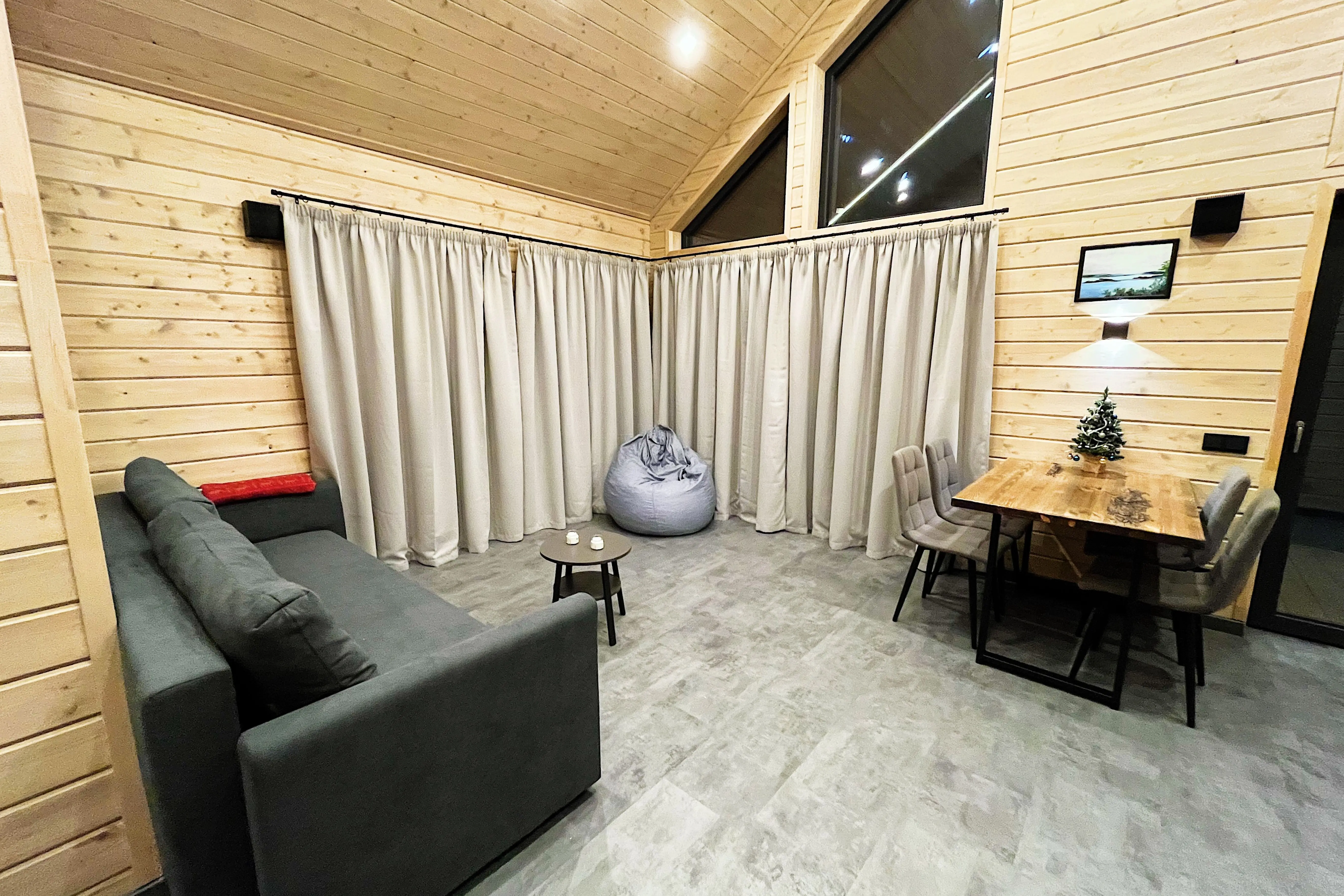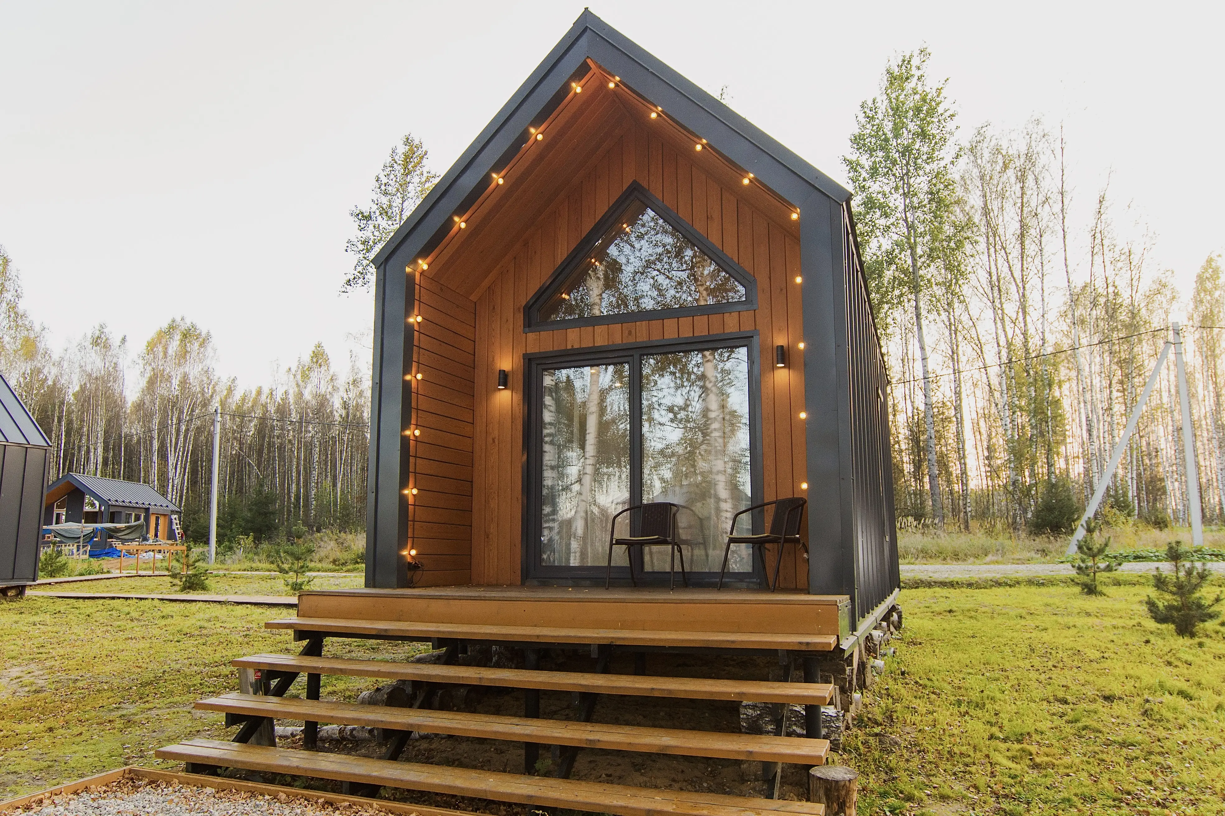 Оптимальный вариант проживания здесь найдётся для любой компании: домики для двоих, сферы средней вместимости и просторные барнхаусы. Везде вас ждут продуманный уютный интерьер, полноценно оснащённая кухня с обеденной зоной, собственные терраса и мангал.