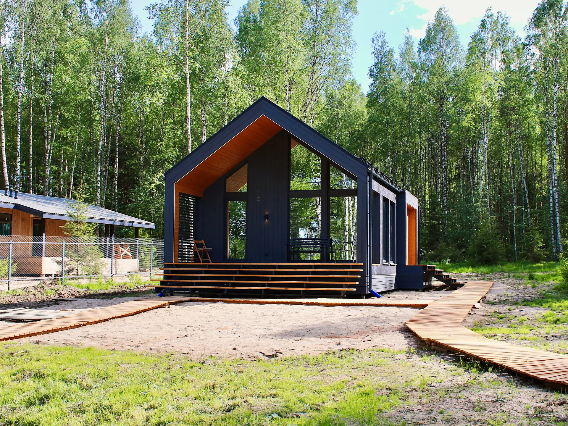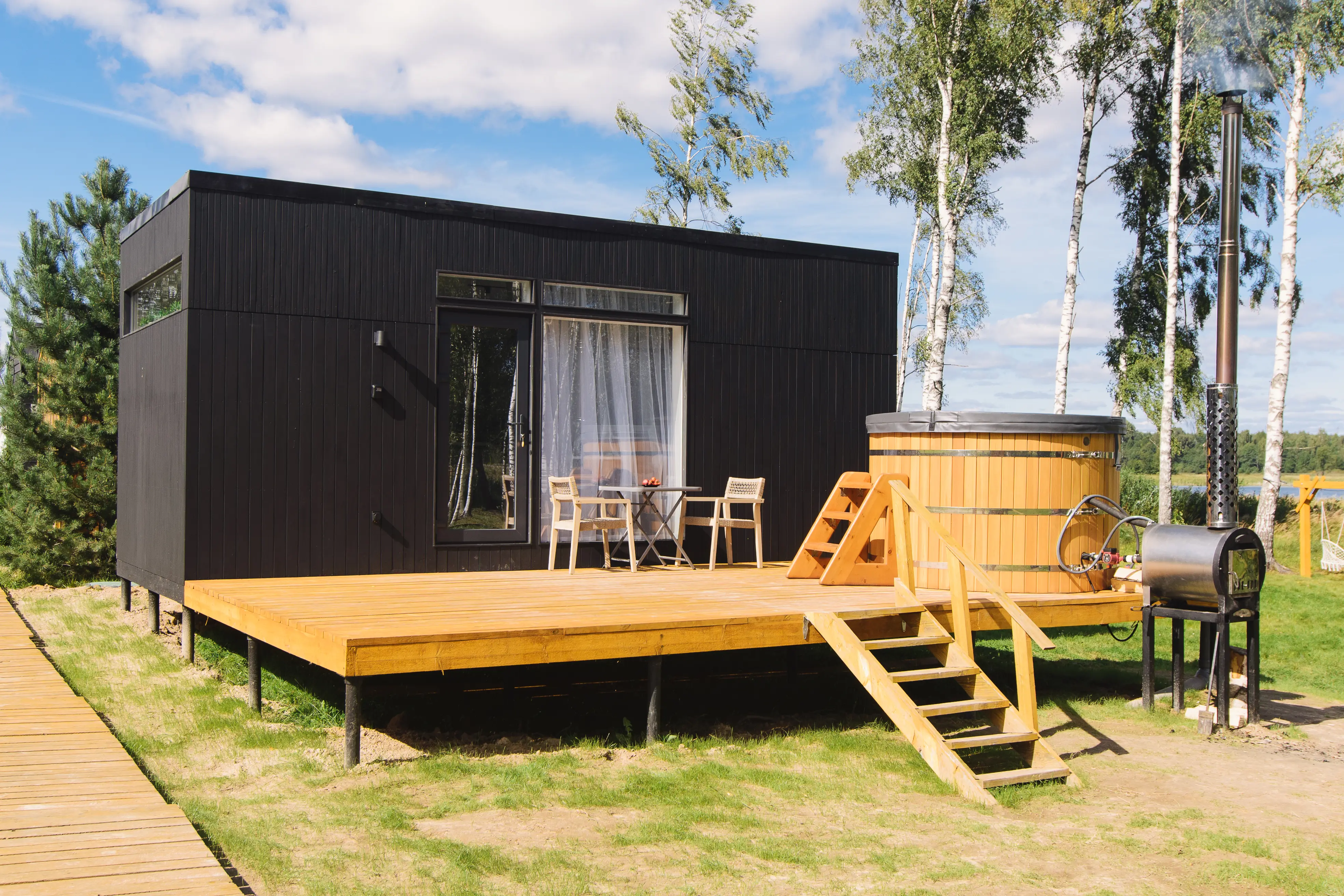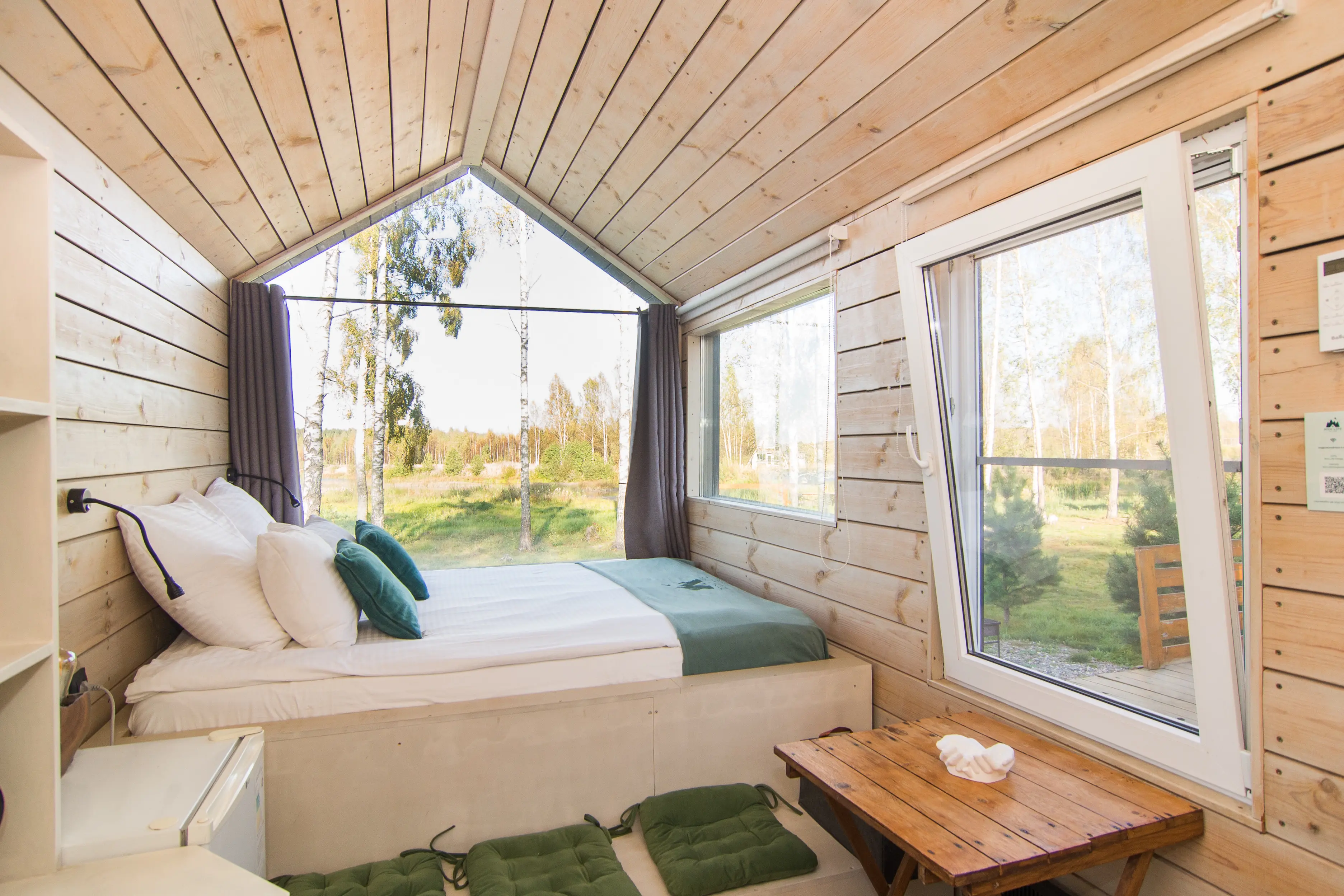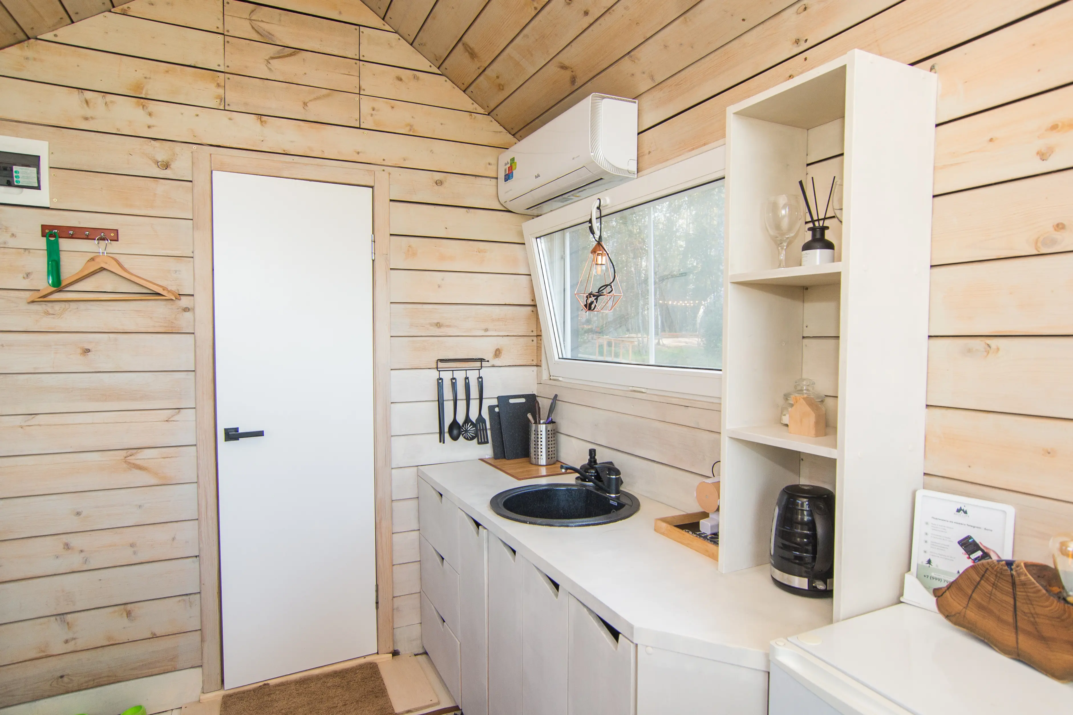 Оптимальный вариант проживания здесь найдётся для любой компании: домики для двоих, сферы средней вместимости и просторные барнхаусы. Везде вас ждут продуманный уютный интерьер, полноценно оснащённая кухня с обеденной зоной, собственные терраса и мангал.