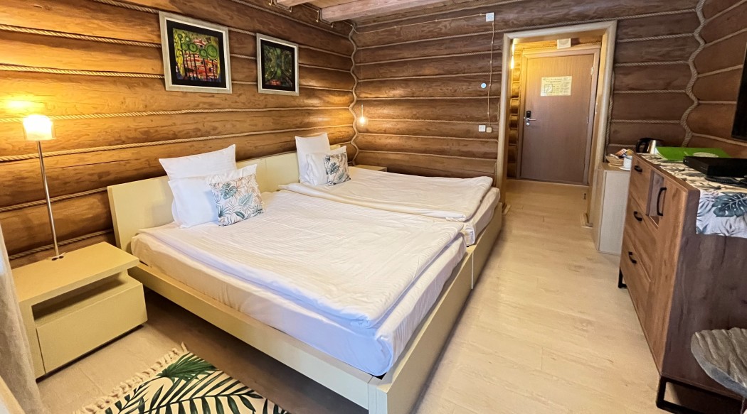 Гостям предлагается разнообразие комфортабельных номеров, включая отдельные коттеджи для тех, кто ищет максимальную приватность. Все варианты проживания оснащены современной мебелью и Wi-Fi. Проживание в отеле включает питание по системе полупансион, на территории работают три ресторана.