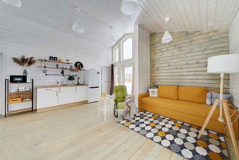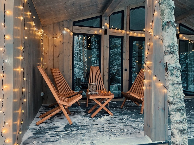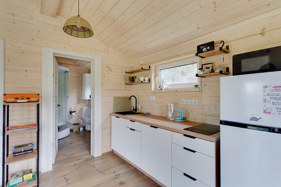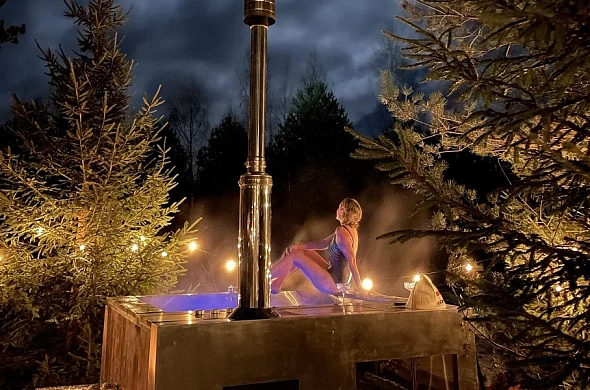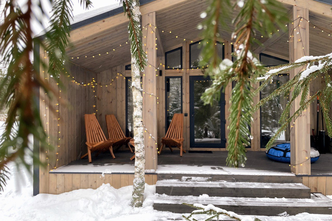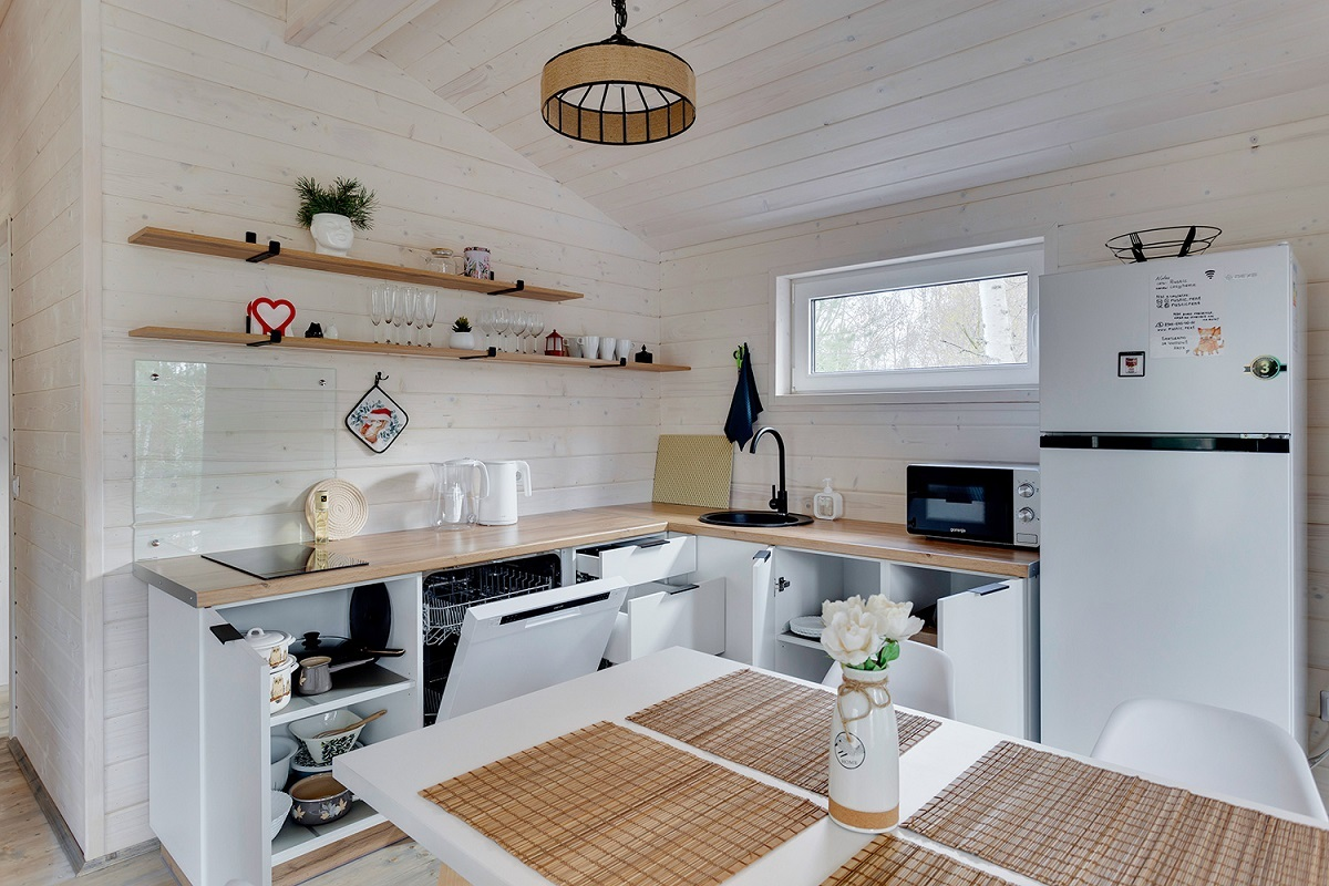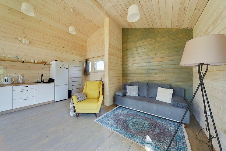 В домиках, помимо крытой террасы и панорамного вида, — просторная кухня-гостиная со столовой зоной, уютная отдельная спальня, ванная комната, Wi-Fi для общения или удалённой работы.