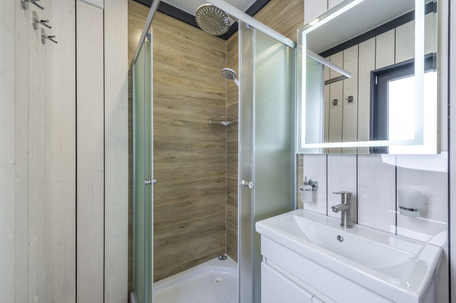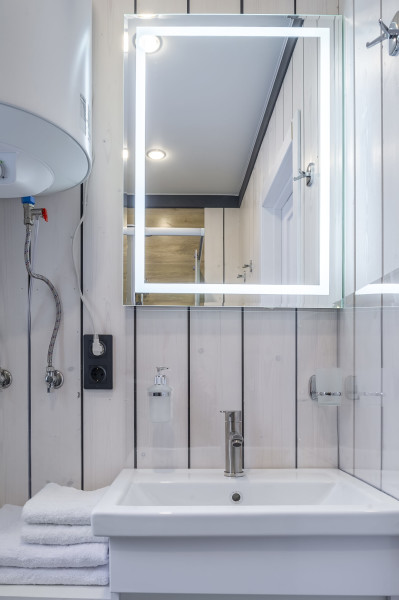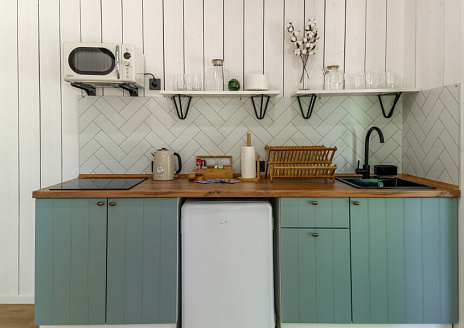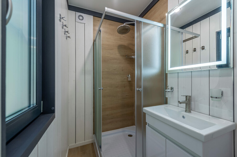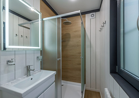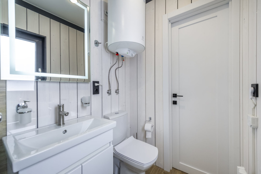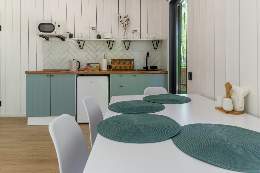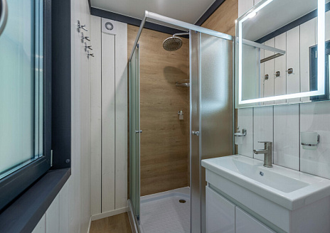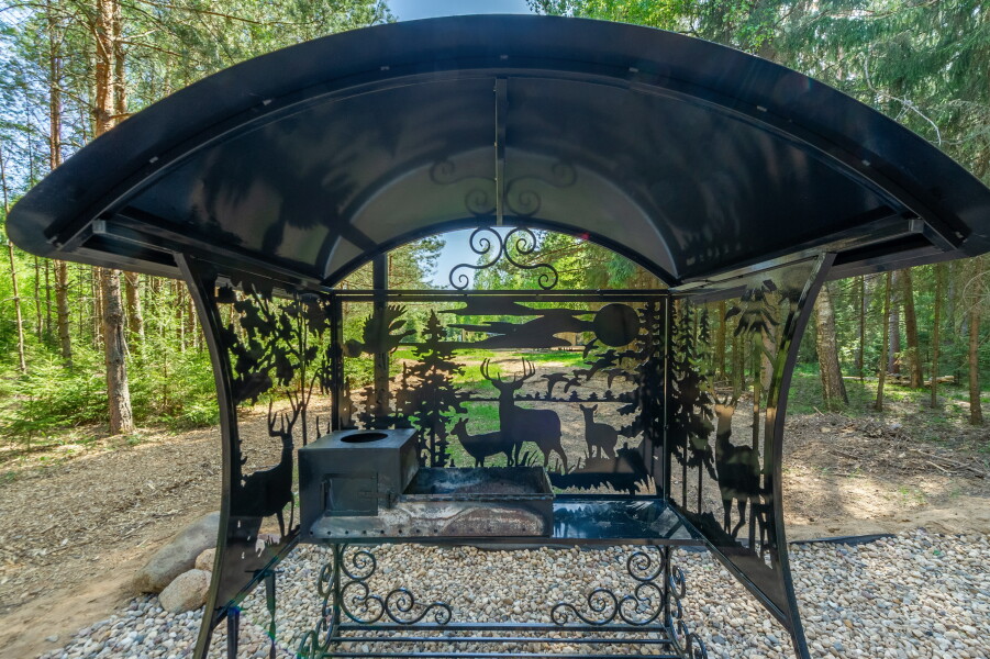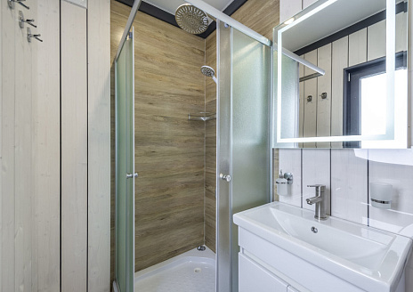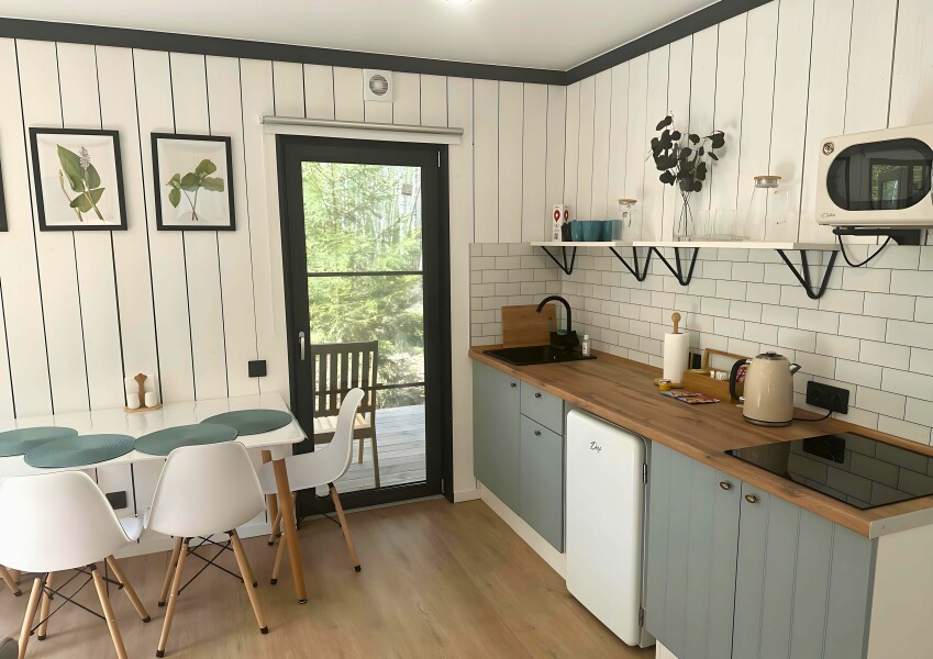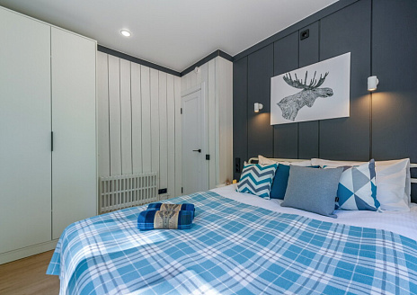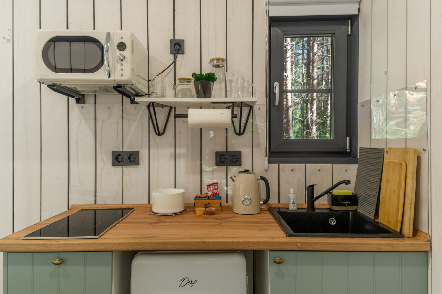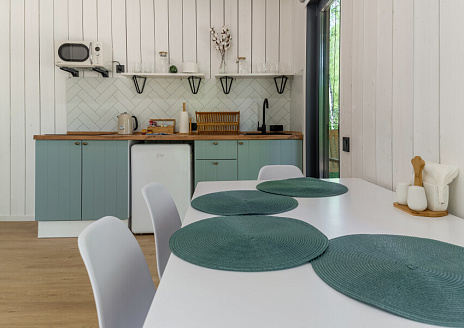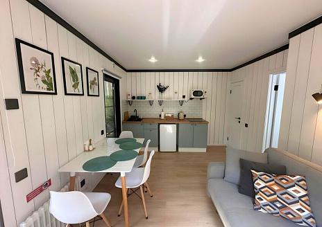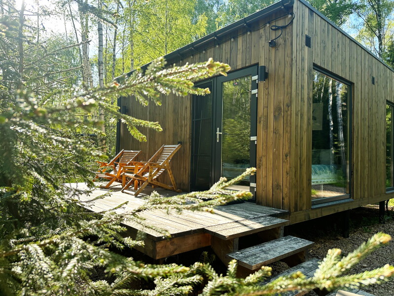 Здесь гостей ждут полностью оборудованные домики в скандинавском стиле с панорамными окнами. На территории есть велосипеды прогулок по окрестностям, спортивный инвентарь, зоны для барбекю, банкетный зал, караоке и прокат проектора для просмотра любимых фильмов. Также в распоряжении гостей: лесная баня с панорамными окнами и купели.