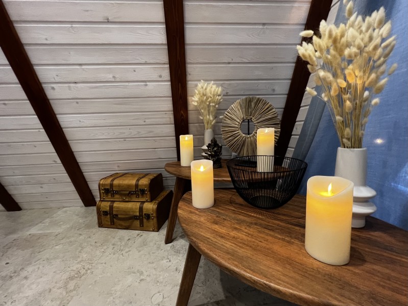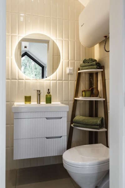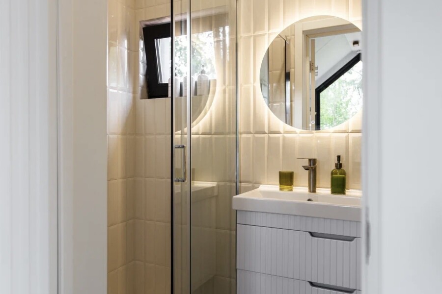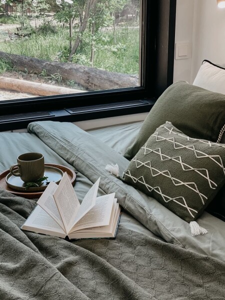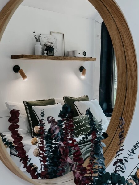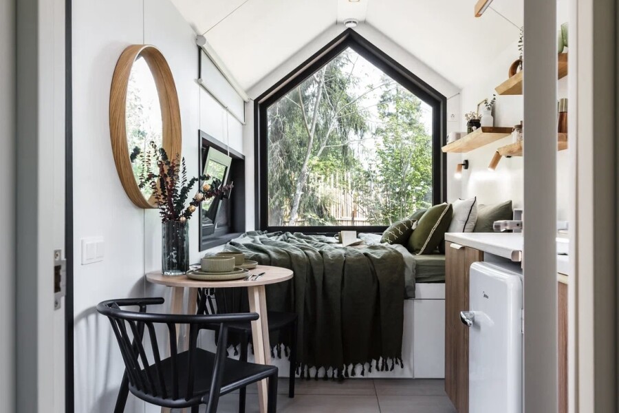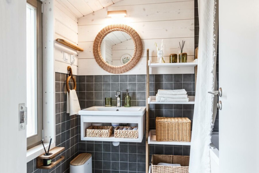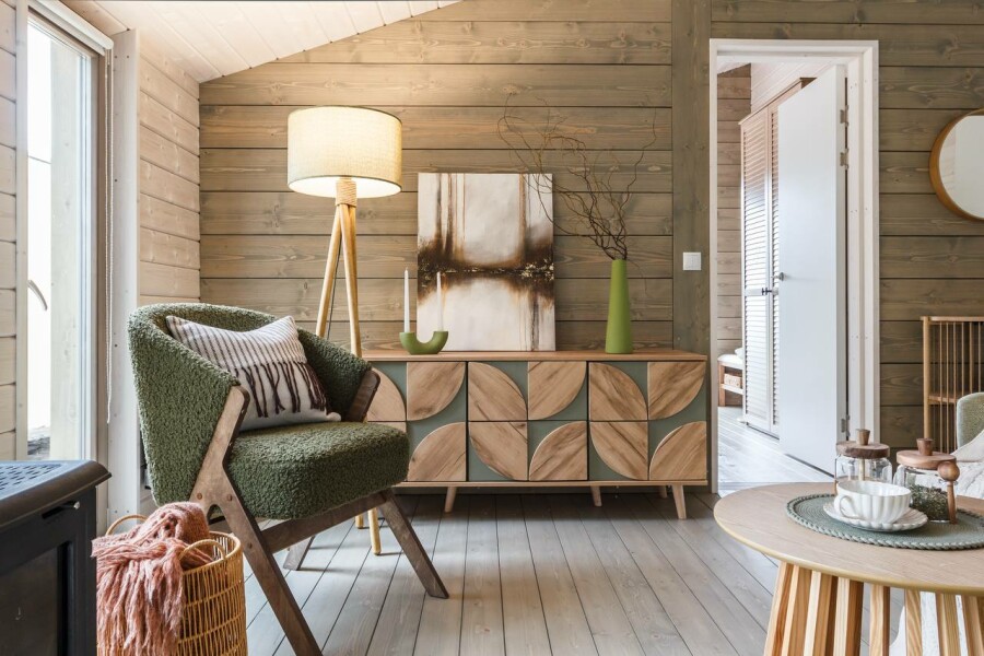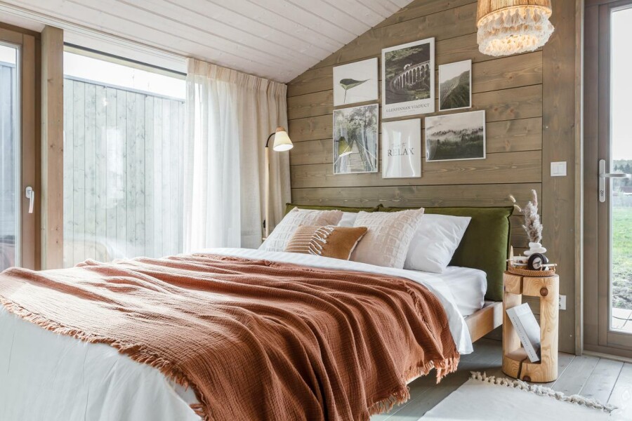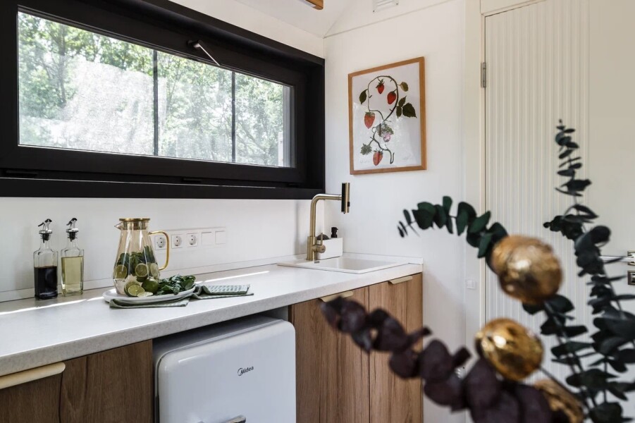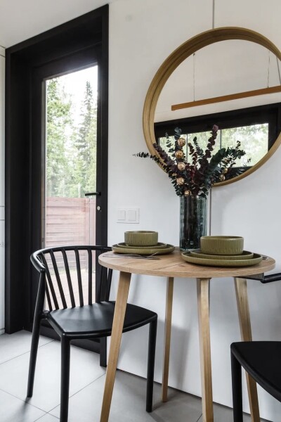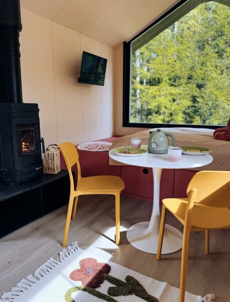 Для гостей открыты несколько разных по типу и площади домиков. В каждом из них вас ждут уютный и стильный интерьер, красивый вид и полноценный городской комфорт со всеми удобствами: кухней, санузлом, тёплым полом, кондиционером. В Шале есть банька, в остальных домиках — персональный банный чан-фурако под открытым небом.