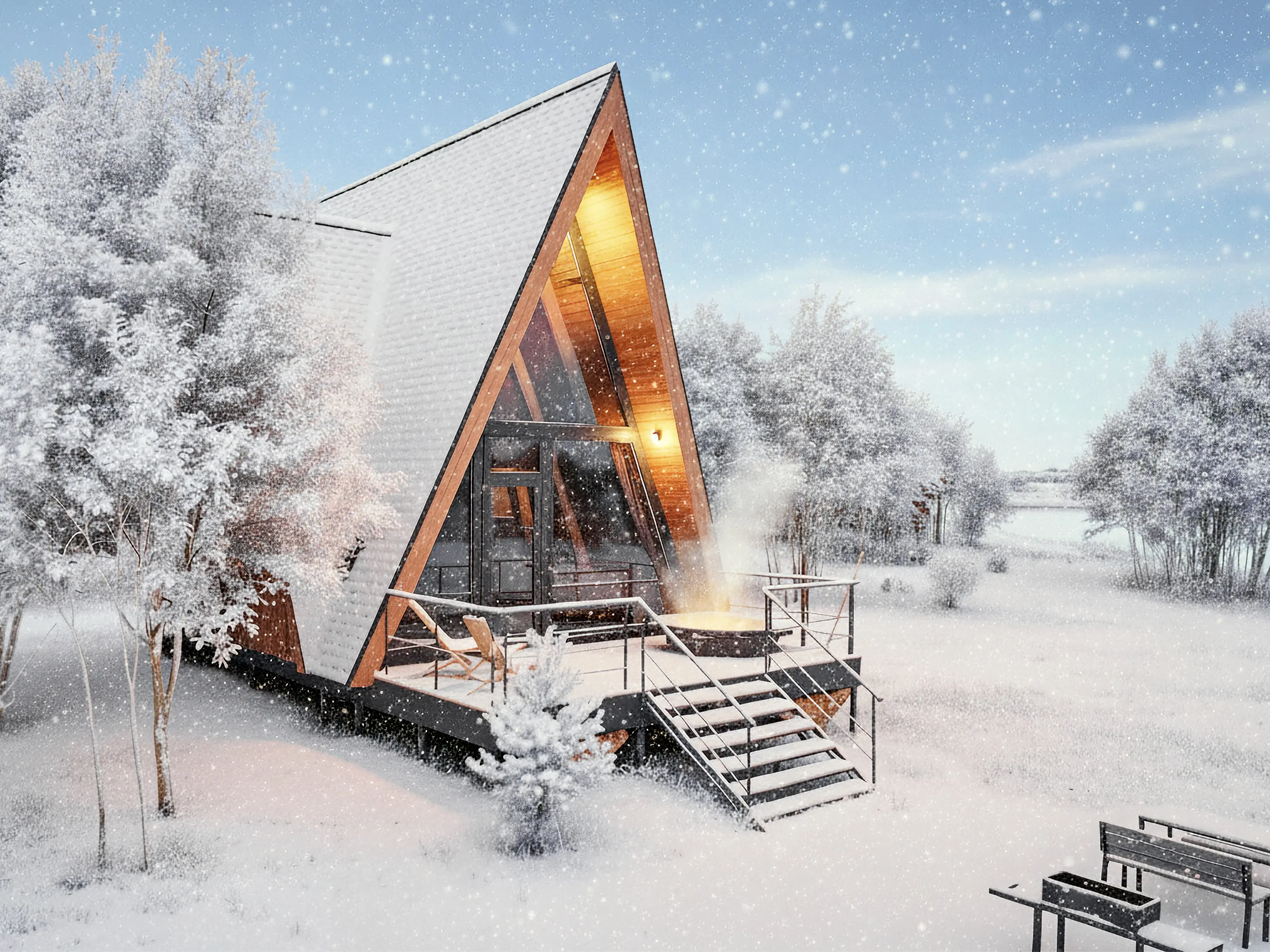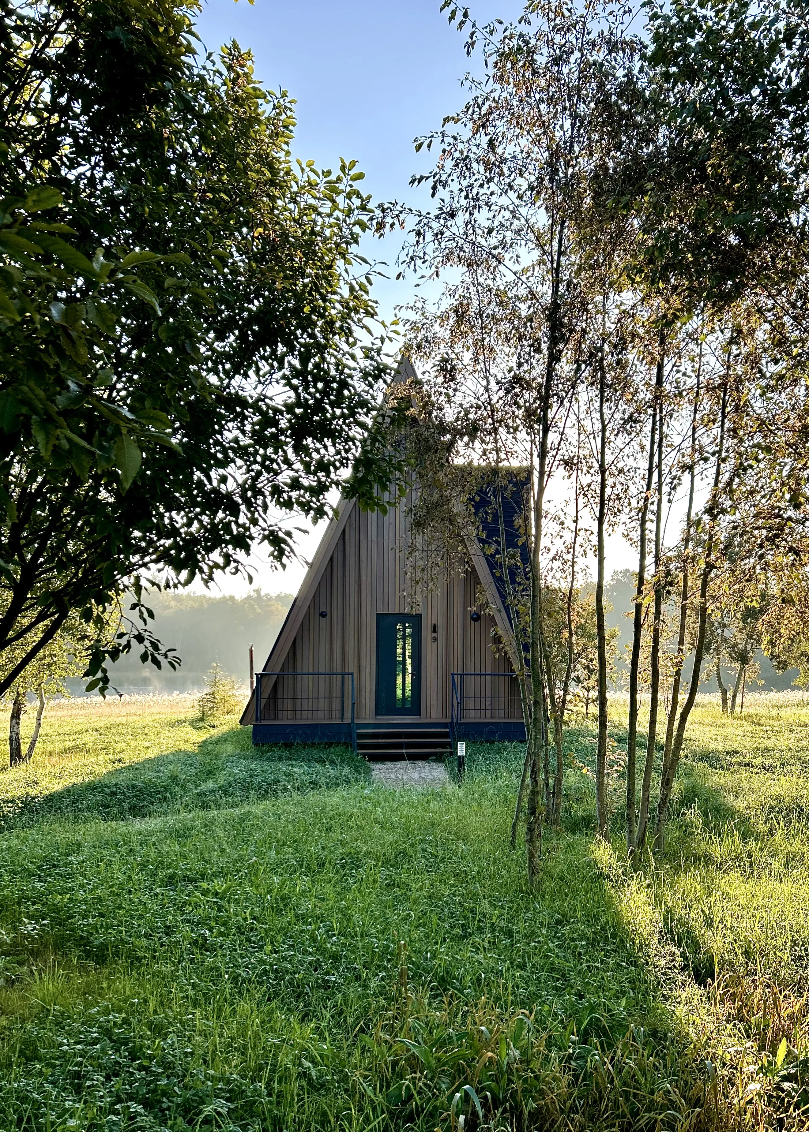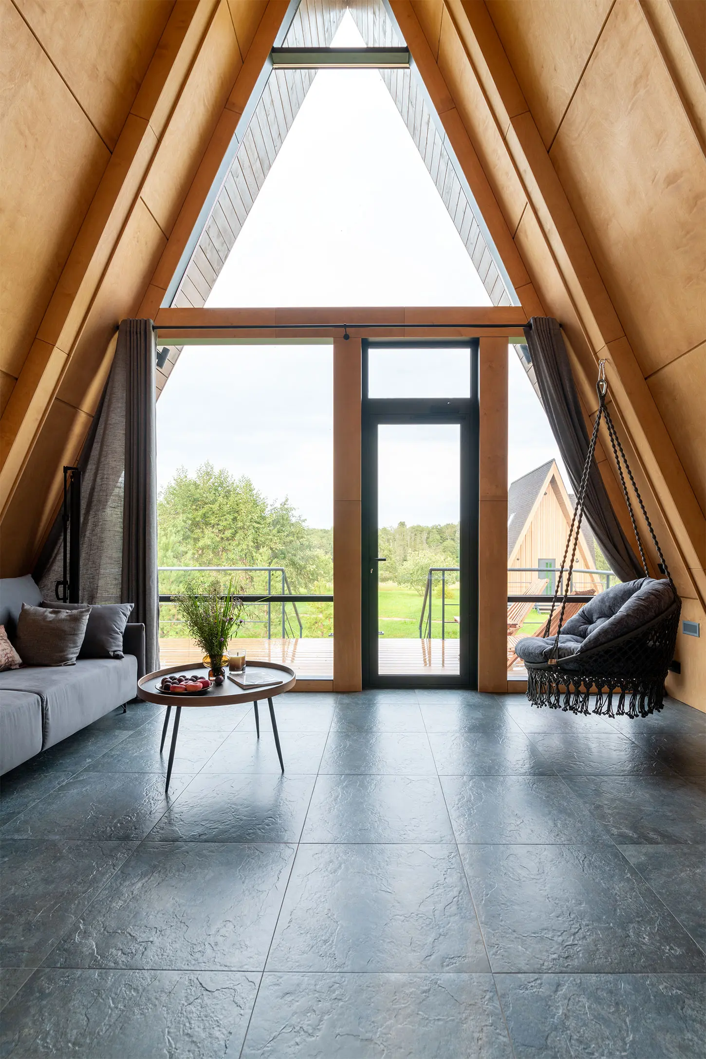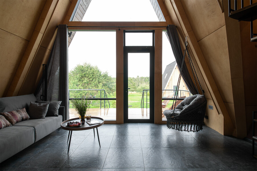 Глэмпинг Трофимов Берег предлагает проживание в 10 стильных комфортных дизайнерских A-frame домах с панорамными окнами, расположенных на берегу р. Колпяна в окружении леса. В каждом доме - банный чан на терассе. На территории открыта уникальная баня из 300-летней сухостойной сосны Кело, потолок из кедра и можжевельника, в центре - печь 4 т., облицованная старинным кирпичом. Это идеальное место для тех, кто ищет уединение и комфорт вдали от суеты большого города.