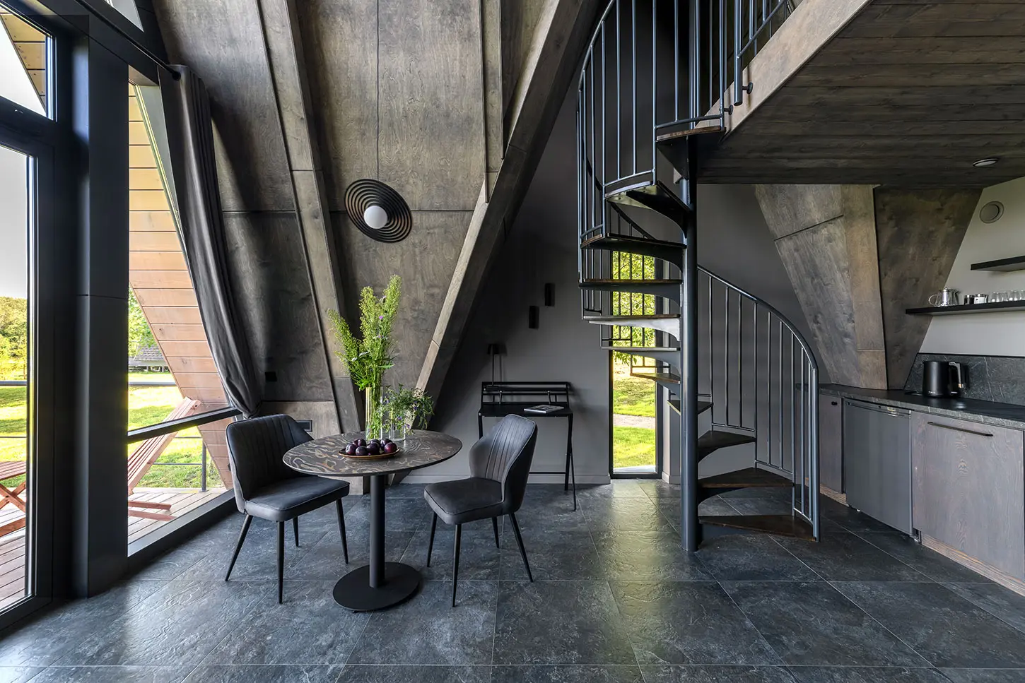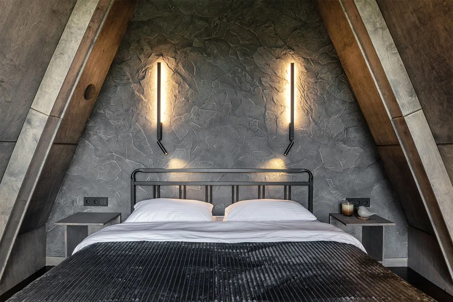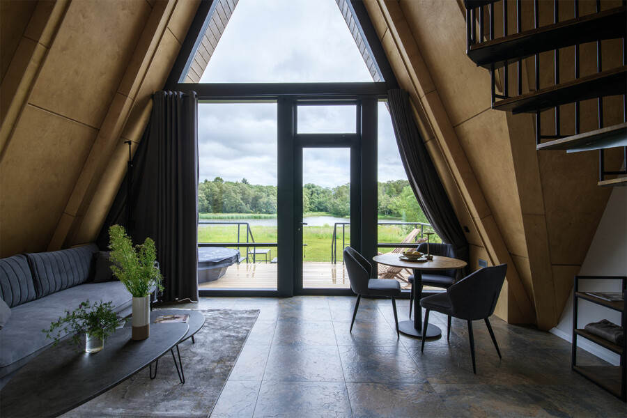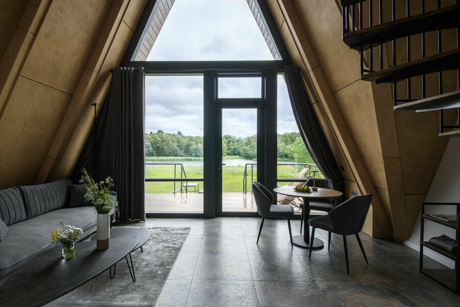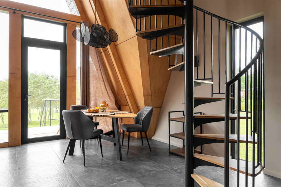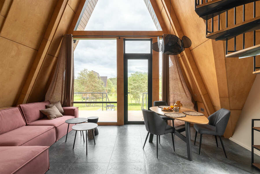 Глэмпинг Трофимов Берег предлагает проживание в 10 стильных комфортных дизайнерских A-frame домах с панорамными окнами, расположенных на берегу р. Колпяна в окружении леса. В каждом доме - банный чан на терассе. На территории открыта уникальная баня из 300-летней сухостойной сосны Кело, потолок из кедра и можжевельника, в центре - печь 4 т., облицованная старинным кирпичом. Это идеальное место для тех, кто ищет уединение и комфорт вдали от суеты большого города.