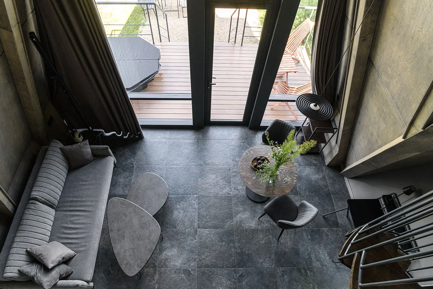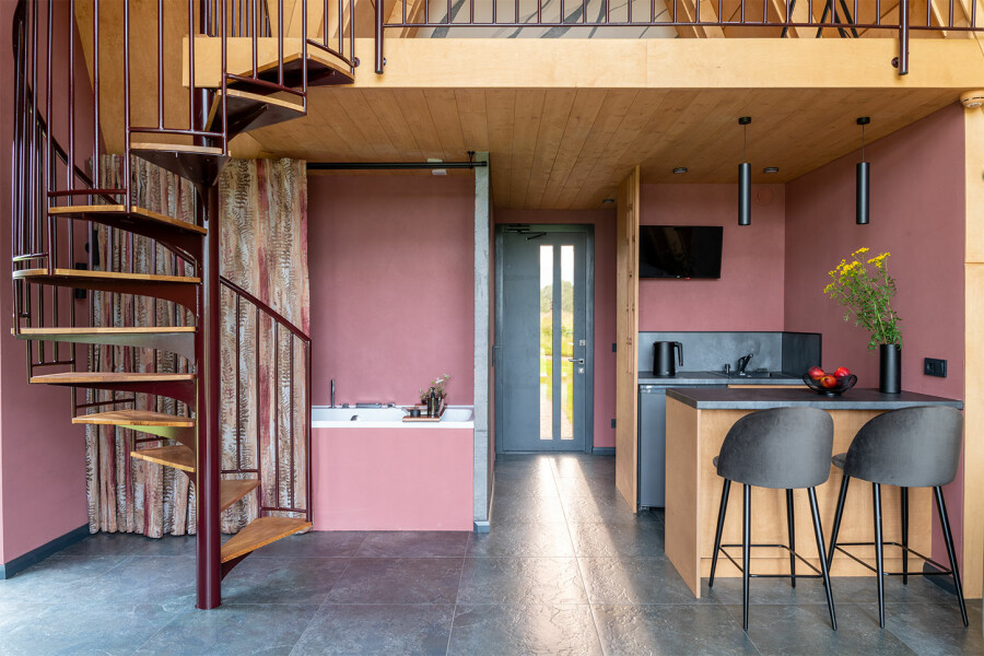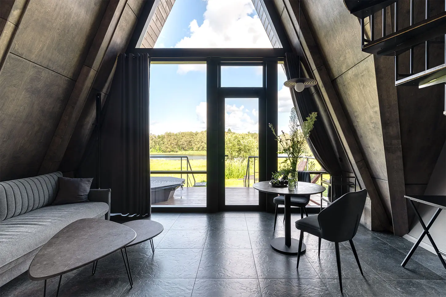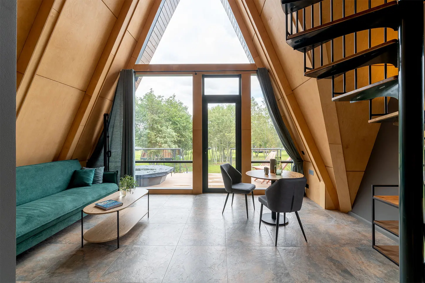 Глэмпинг Трофимов Берег предлагает проживание в 10 стильных комфортных дизайнерских A-frame домах с панорамными окнами, расположенных на берегу р. Колпяна в окружении леса. В каждом доме - банный чан на терассе. На территории открыта уникальная баня из 300-летней сухостойной сосны Кело, потолок из кедра и можжевельника, в центре - печь 4 т., облицованная старинным кирпичом. Это идеальное место для тех, кто ищет уединение и комфорт вдали от суеты большого города.