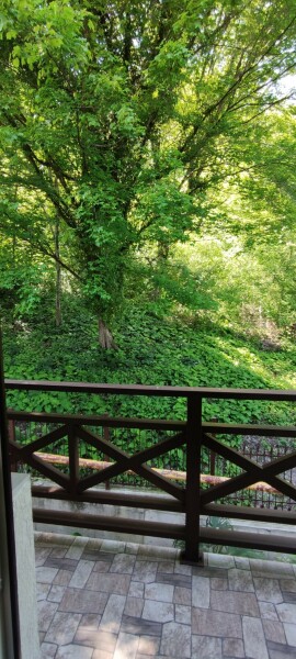 Все номера имеют доступ к балкону, с которого открывается великолепный вид на лесные просторы и горные вершины. На территории комплекса вы найдете уютную беседку с мангалом, детскую игровую площадку, спорт зал и общую кухню, где вы можете готовить по своему усмотрению. В окрестностях можно найти рынок, развлекательный центр, магазин продуктов, столовую, остановку общественного транспорта, а также банкомат и аптеку.