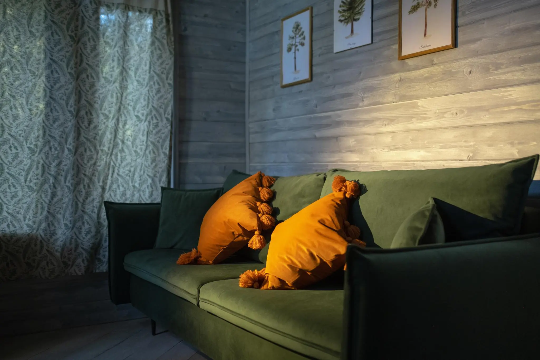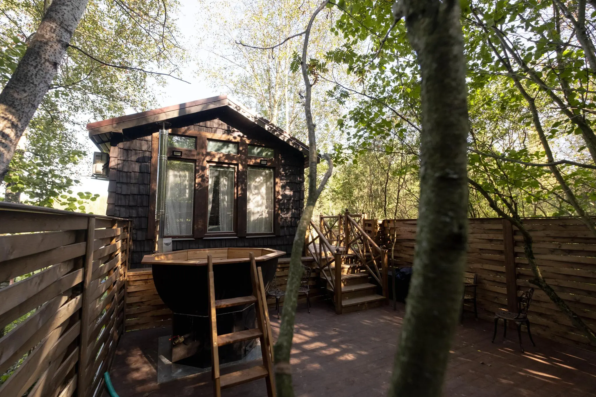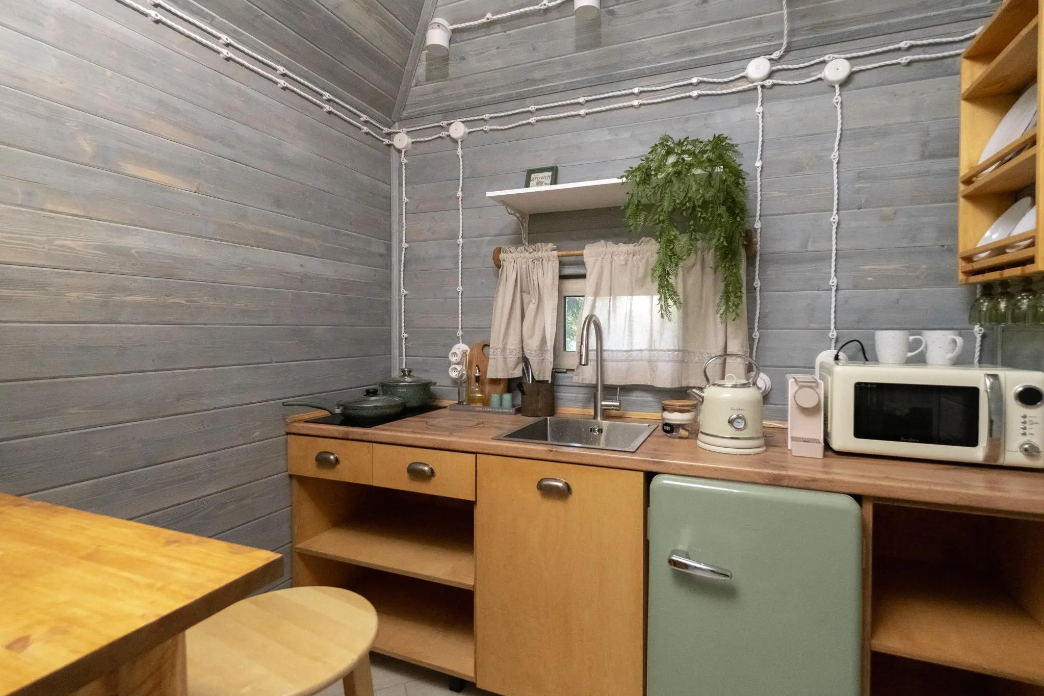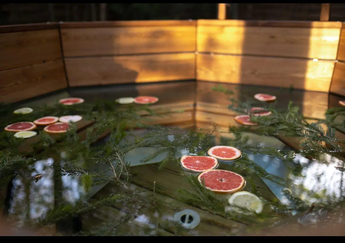 У каждого домика есть закрытая веранда с мангальной зоной и грилем. Для отдыха на свежем воздухе предусмотрены: настоящая дровяная баня, сибирские чаны и купели с горячей водой. Гости могут наслаждаться прогулками по лесу, общением с домашними животными на территории (кроликами и курочками), а также проводить время в домике за настольными играми, караоке и просмотром фильмов с помощью видеопроектора.