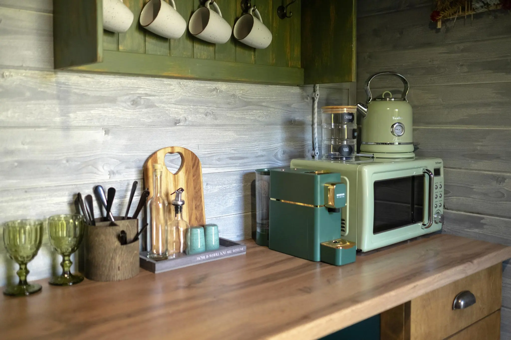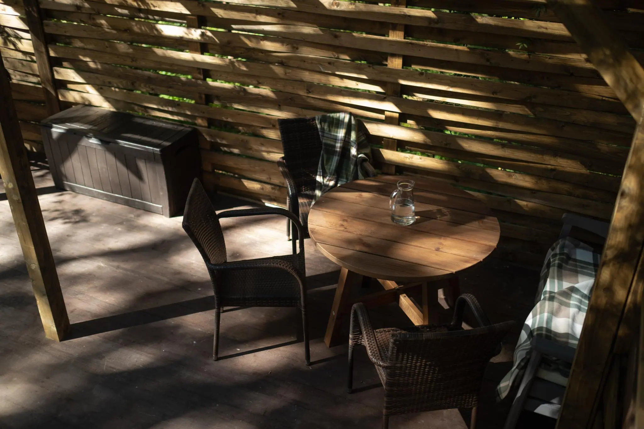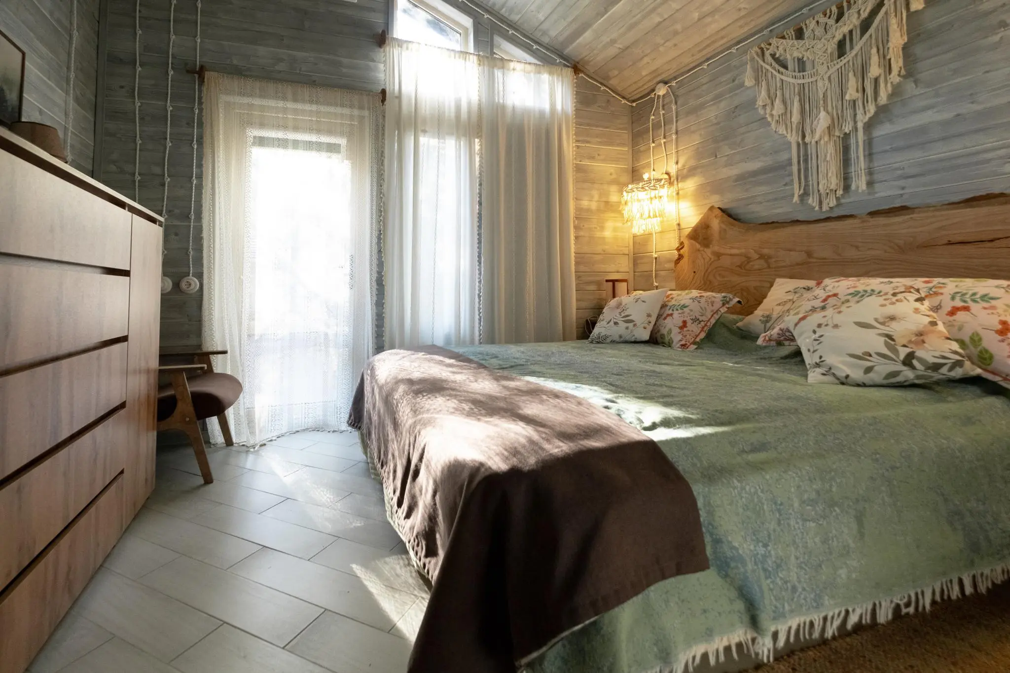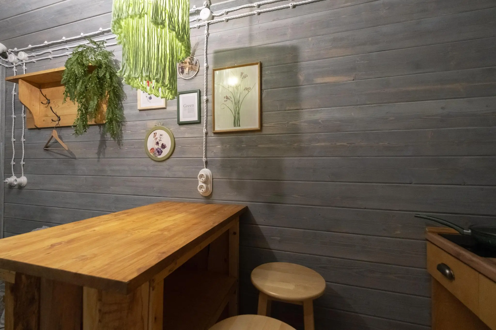 У каждого домика есть закрытая веранда с мангальной зоной и грилем. Для отдыха на свежем воздухе предусмотрены: настоящая дровяная баня, сибирские чаны и купели с горячей водой. Гости могут наслаждаться прогулками по лесу, общением с домашними животными на территории (кроликами и курочками), а также проводить время в домике за настольными играми, караоке и просмотром фильмов с помощью видеопроектора.