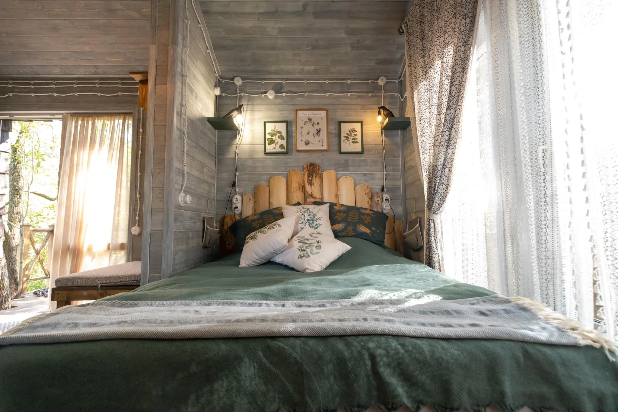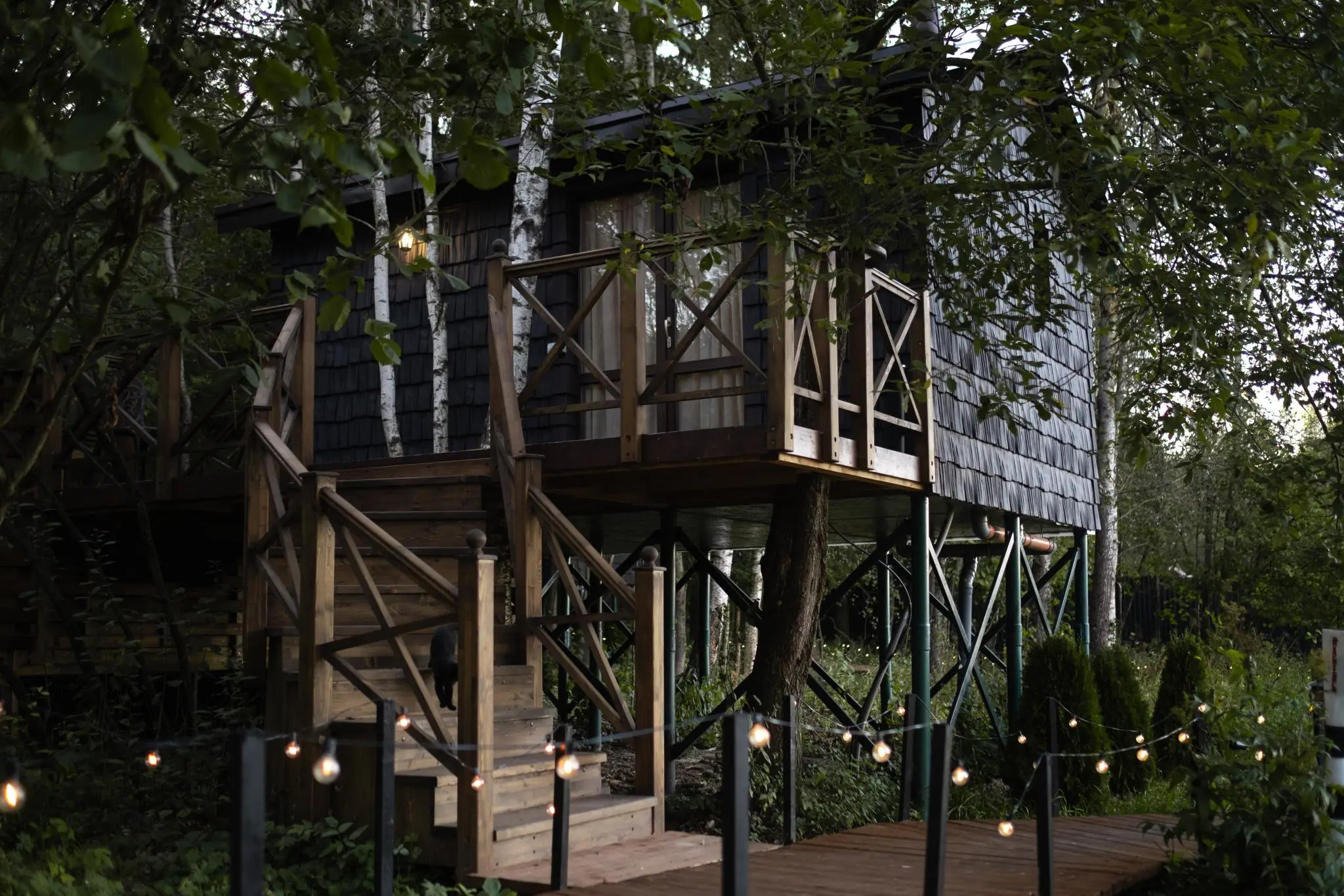 «В Кронах» — это уединенное пространство для отдыха в лесу. Комплекс предлагает размещение в дизайнерских домиках на деревьях, купольных сферах с панорамными окнами и уютных коттеджах, которые гармонично вписаны в природу, создавая атмосферу тишины, комфорта и полной приватности.