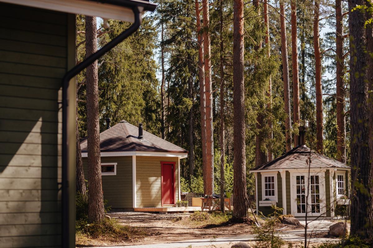 На территории комплекса расположены два дизайнерских коттеджа, оснащённых всем необходимым для комфортного загородного отдыха. Здесь можно провести время с семьей или небольшой компанией, наслаждаясь чистым воздухом, лесной тишиной и уютной атмосферой.