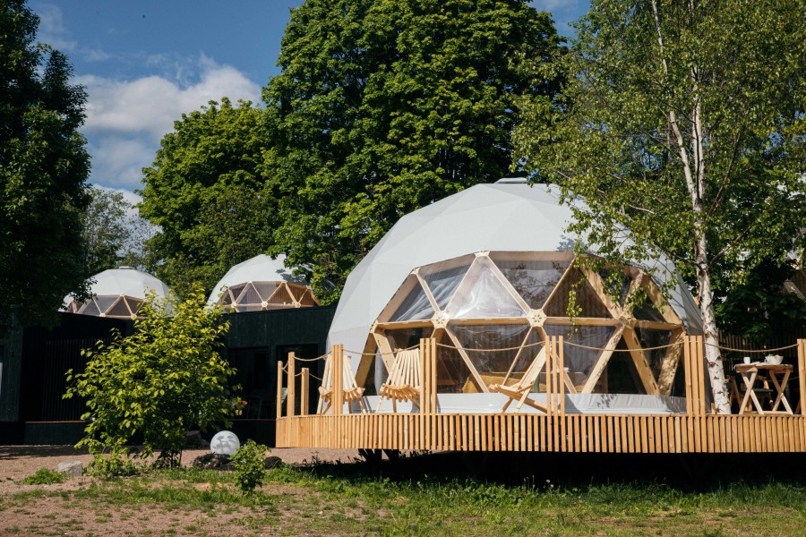 У глэмпинга есть собственный причал, откуда можно отправиться изучать залив на сапах или взять в аренду катер и поехать на рыбалку, в Сайменский канал или покататься вокруг Выборга. Также заливом можно наслаждаться с террасы, лежа на шезлонге, или в зоне барбекю за приготовлением ужина. На территории есть панорамная сауна-бочка с тёплой купелью, качели, детская площадка, фотозоны, настольные игры и гигантская дженга. Каждый домик оборудован собственной кухней со всем необходимым, а если готовить не захочется, то можно заказать доставку.
