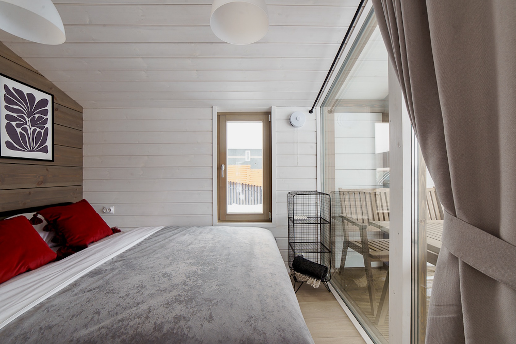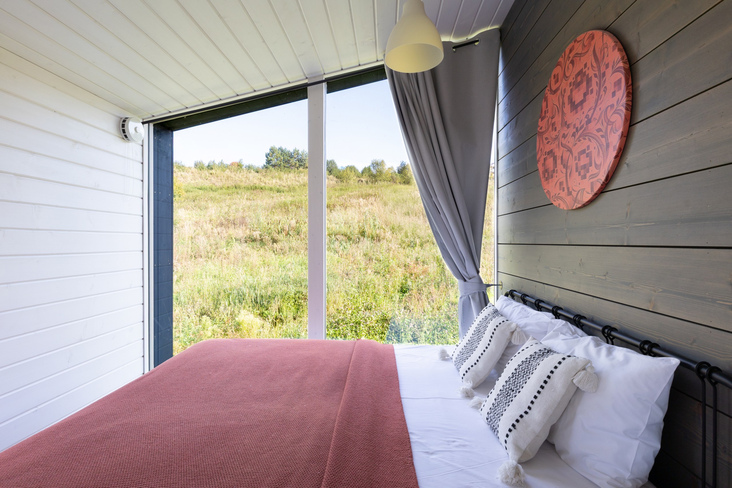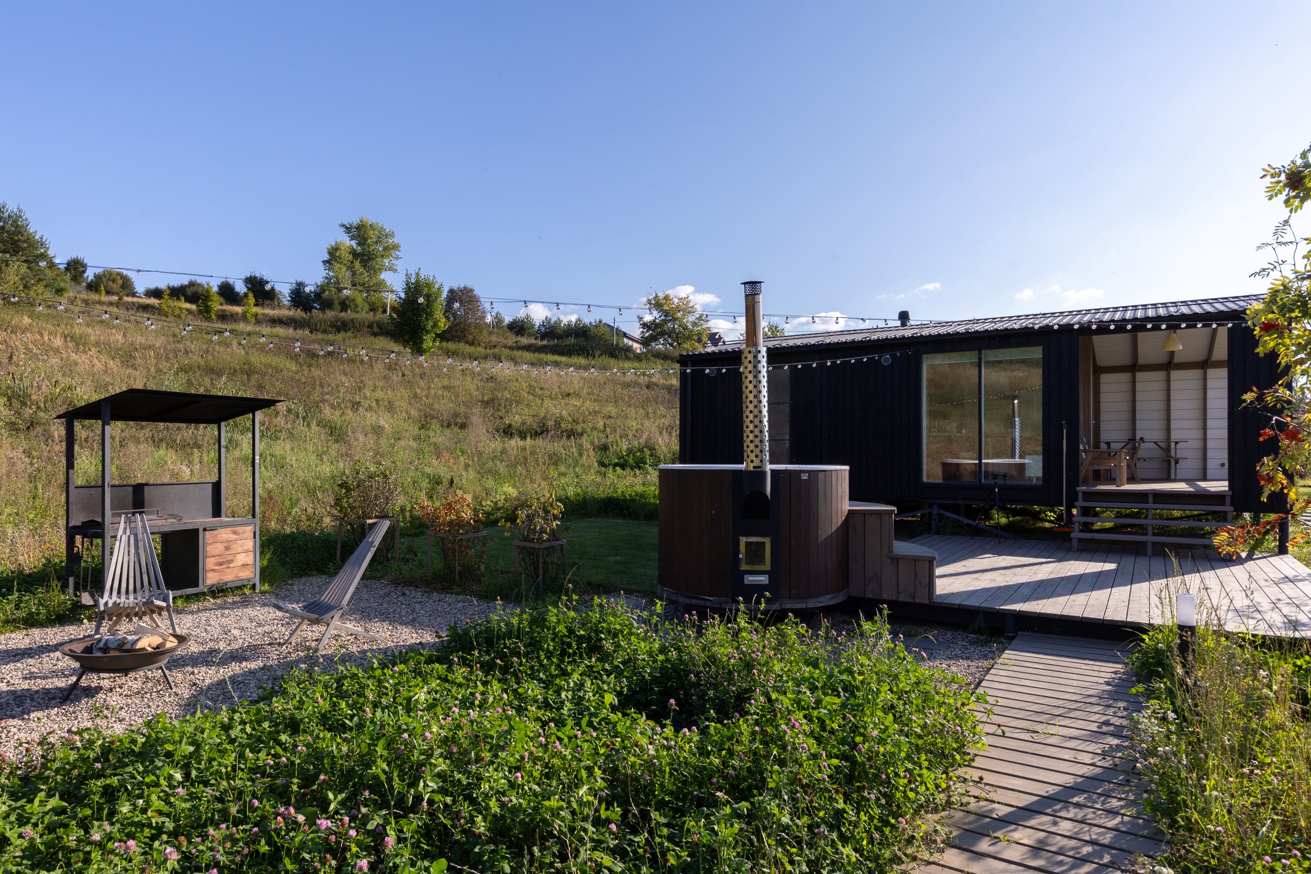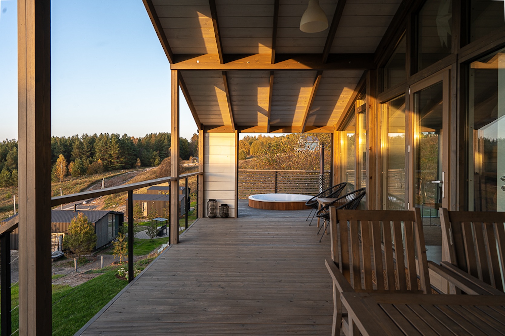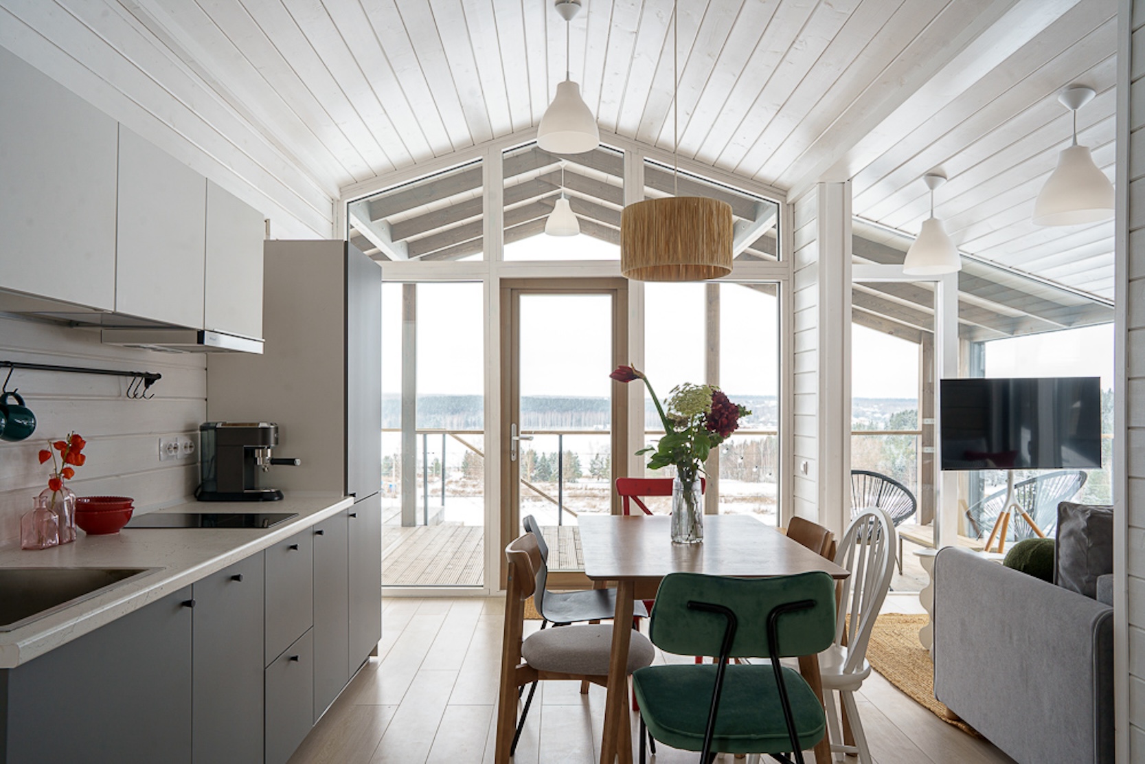 Вас ждут светлые домики с панорамными окнами, уютными спальнями и просторной кухней-гостиной, а на террасе каждого дома есть горячая купель с аэромассажем. Зоны отдыха оборудованы мангалами и костровыми чашами для вечерних посиделок.