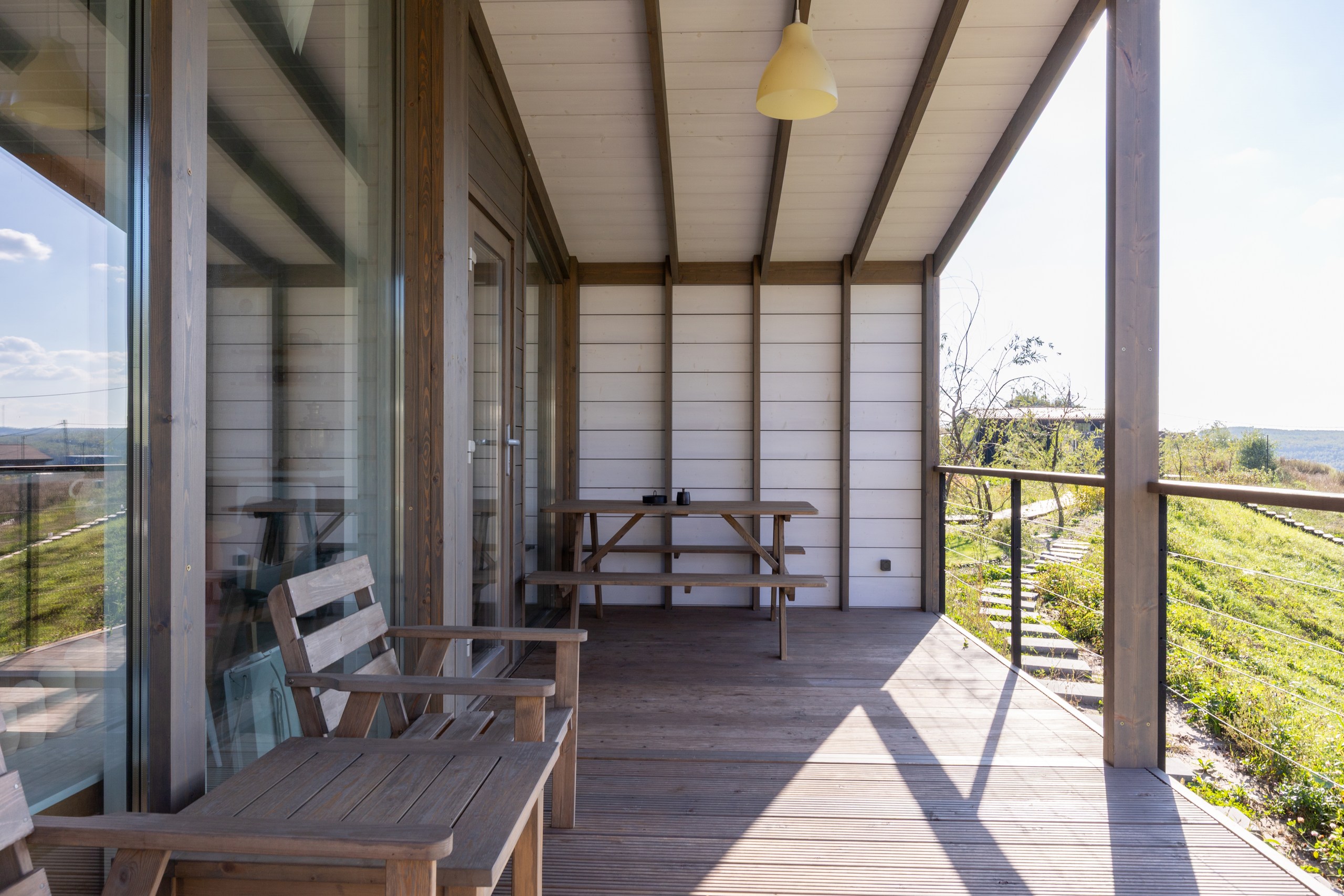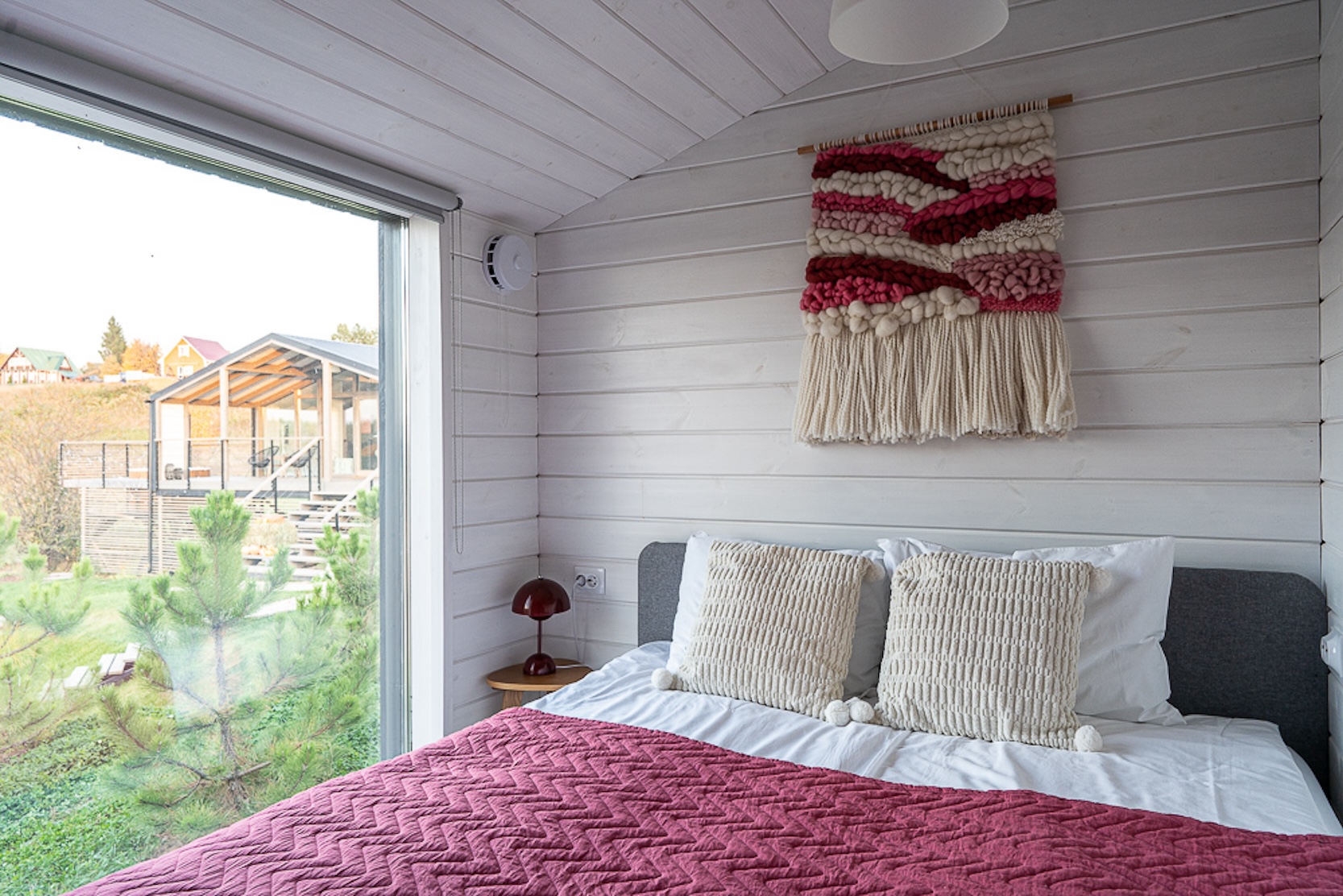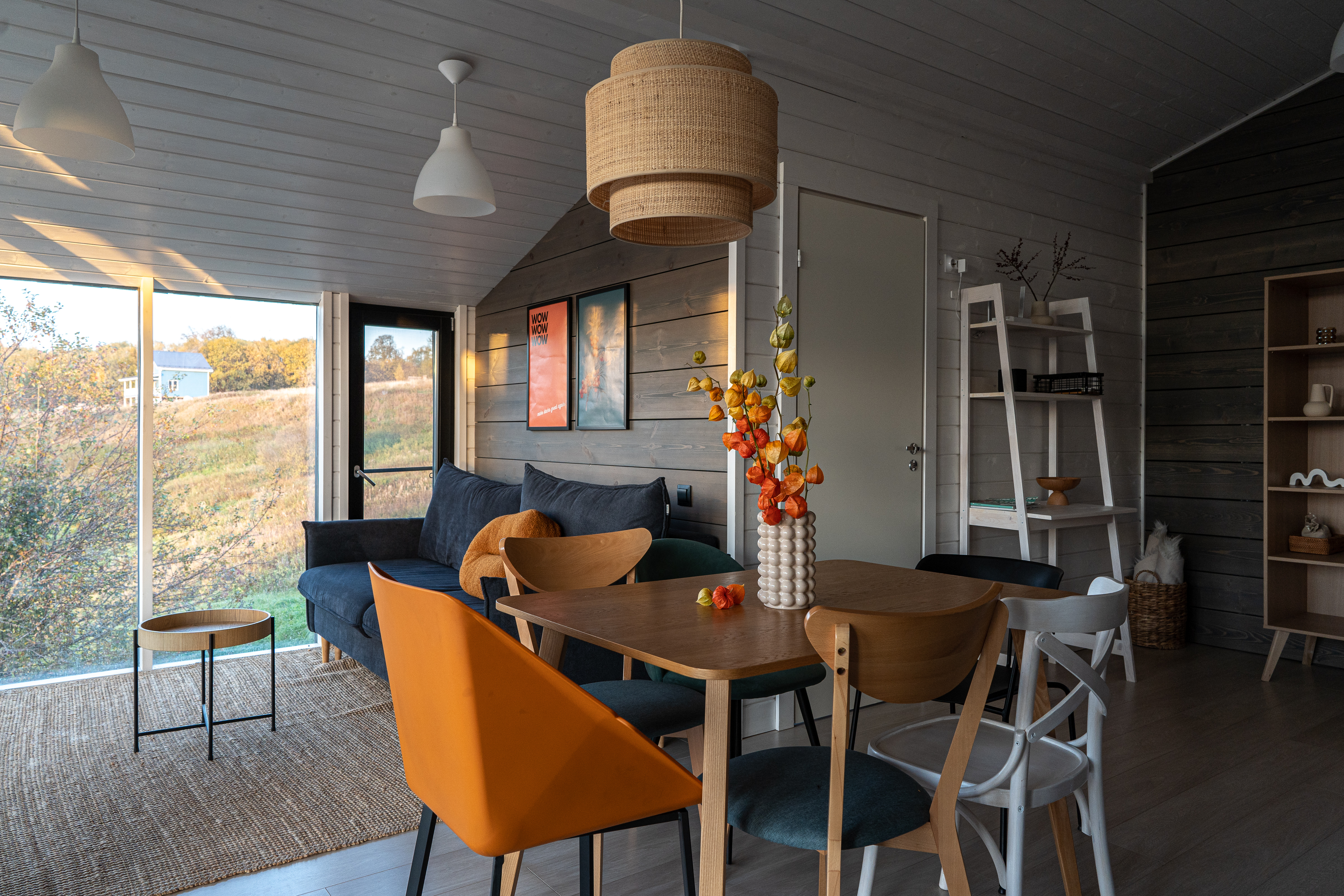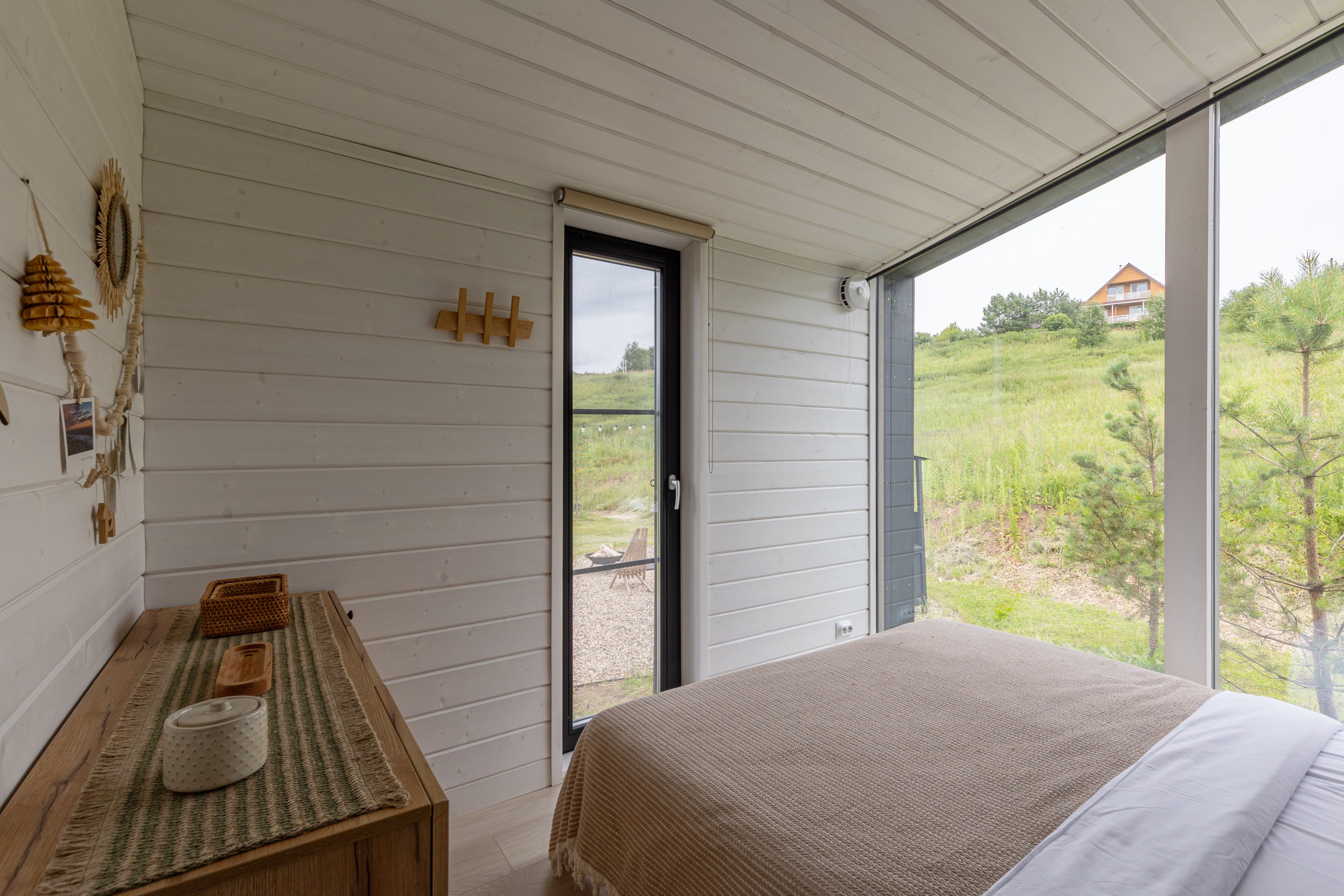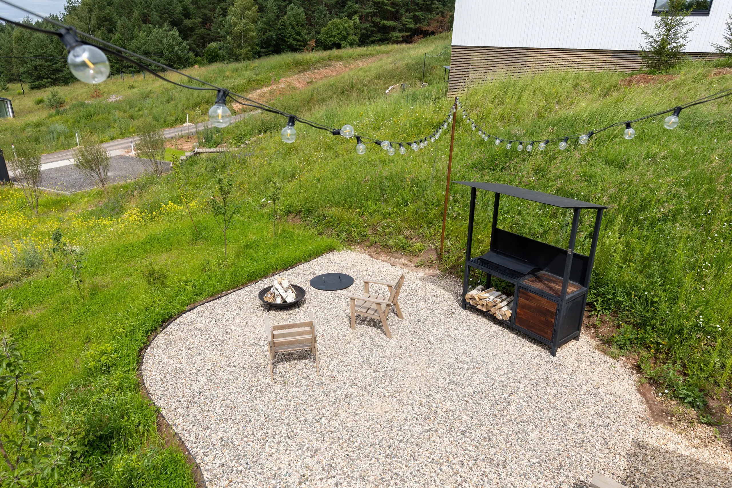 Вас ждут светлые домики с панорамными окнами, уютными спальнями и просторной кухней-гостиной, а на террасе каждого дома есть горячая купель с аэромассажем. Зоны отдыха оборудованы мангалами и костровыми чашами для вечерних посиделок.