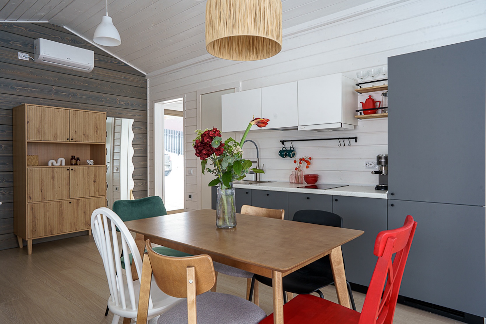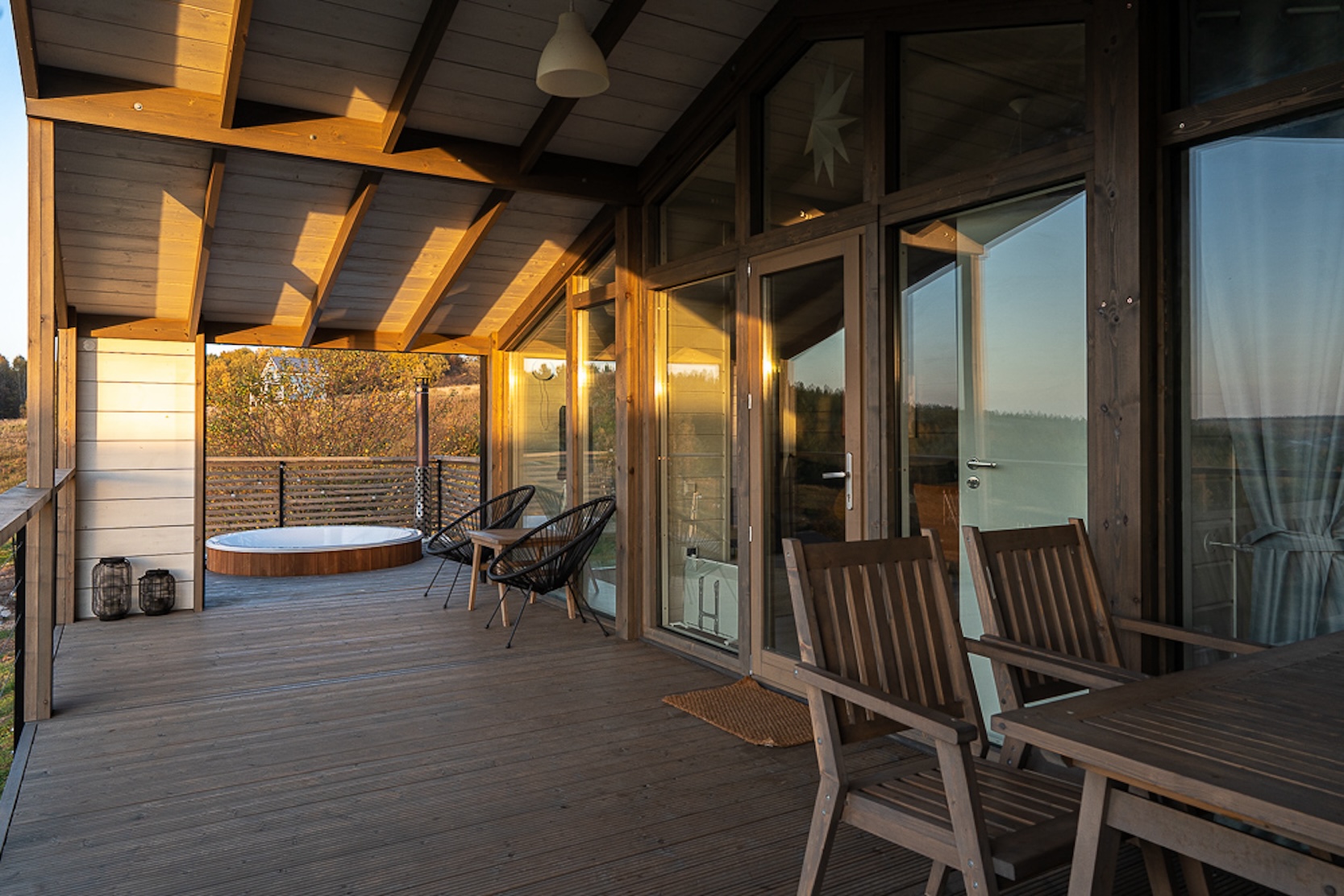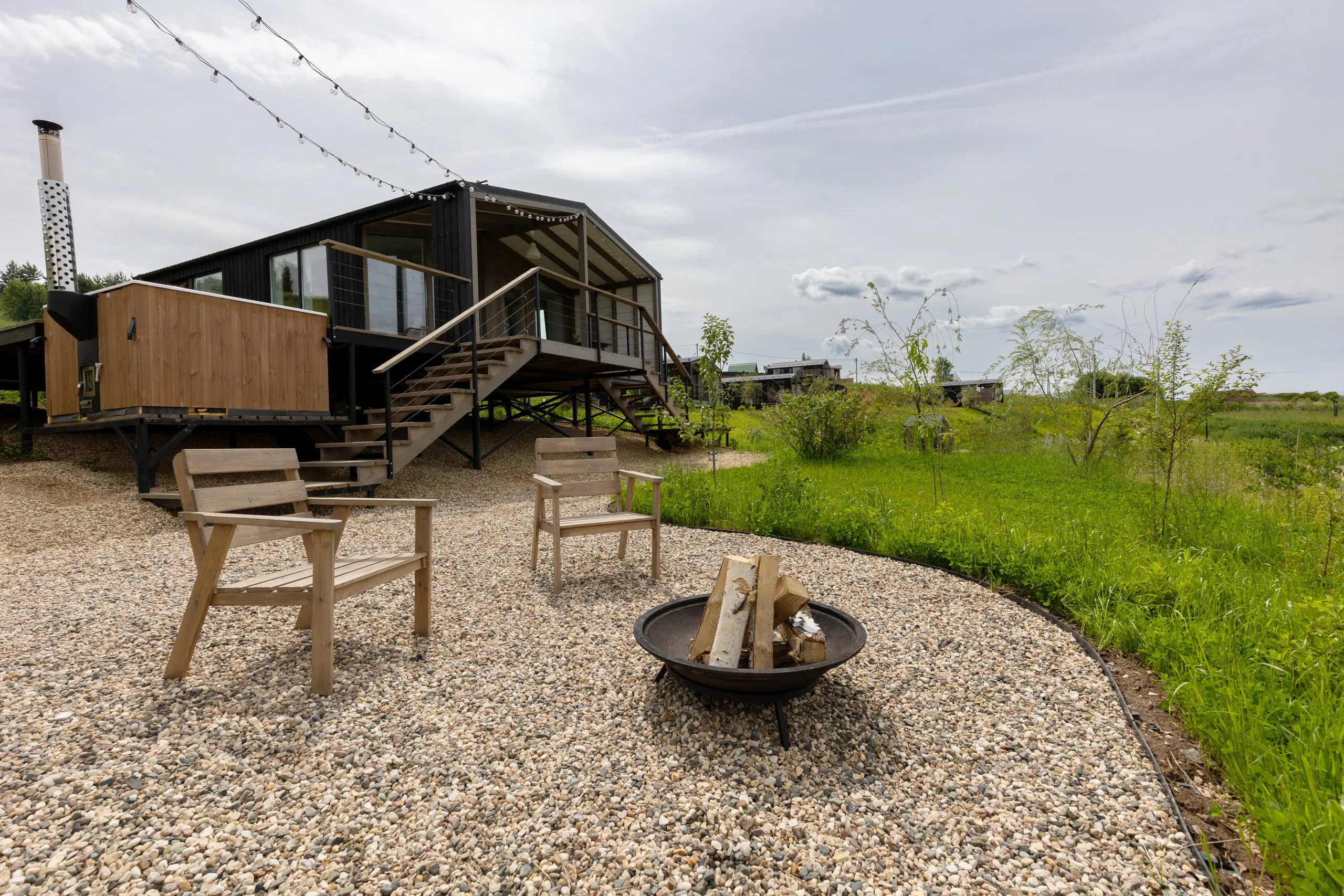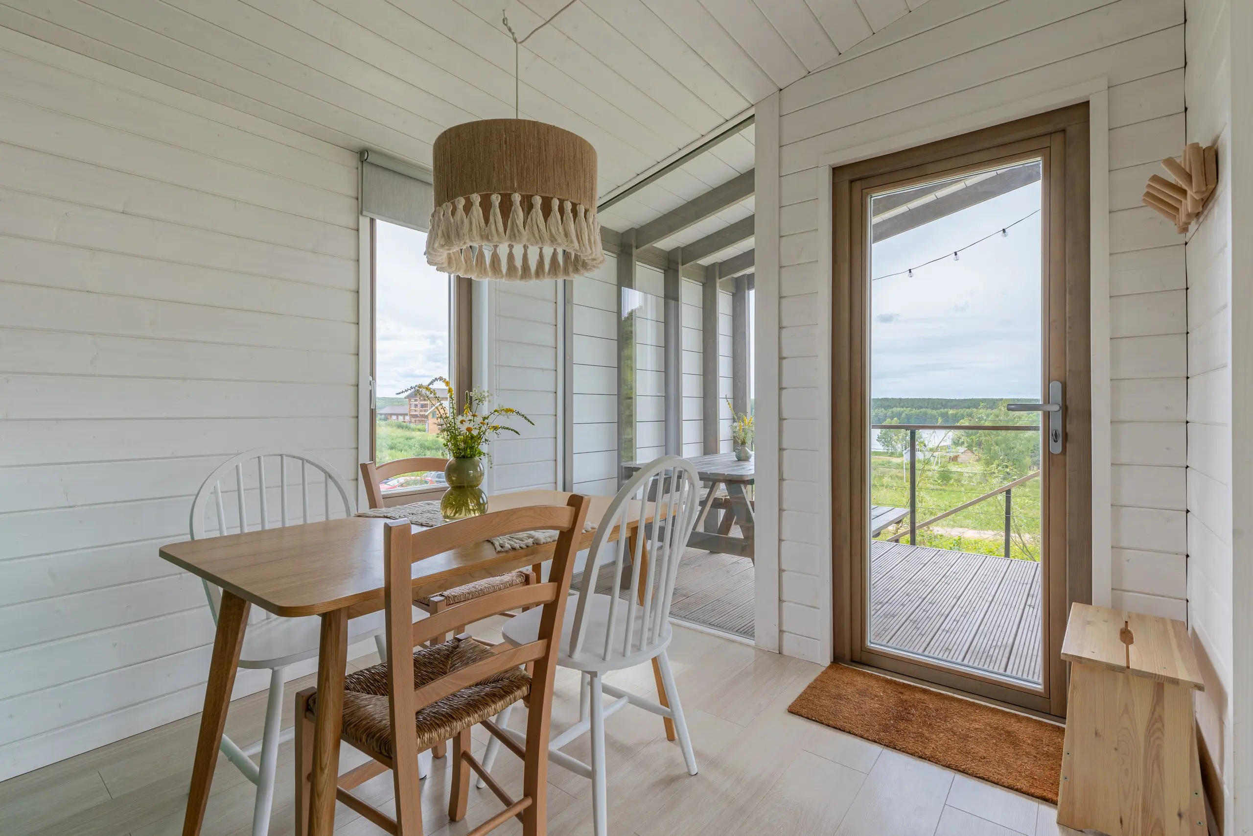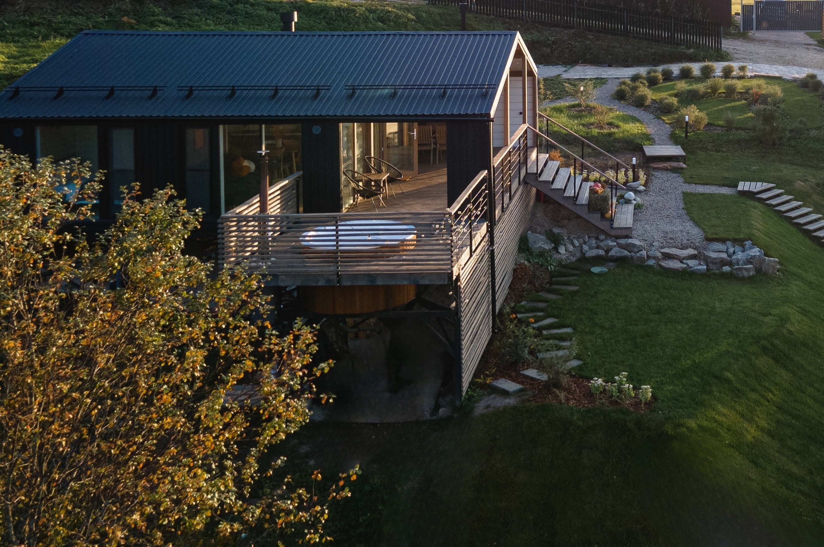 Вас ждут светлые домики с панорамными окнами, уютными спальнями и просторной кухней-гостиной, а на террасе каждого дома есть горячая купель с аэромассажем. Зоны отдыха оборудованы мангалами и костровыми чашами для вечерних посиделок.