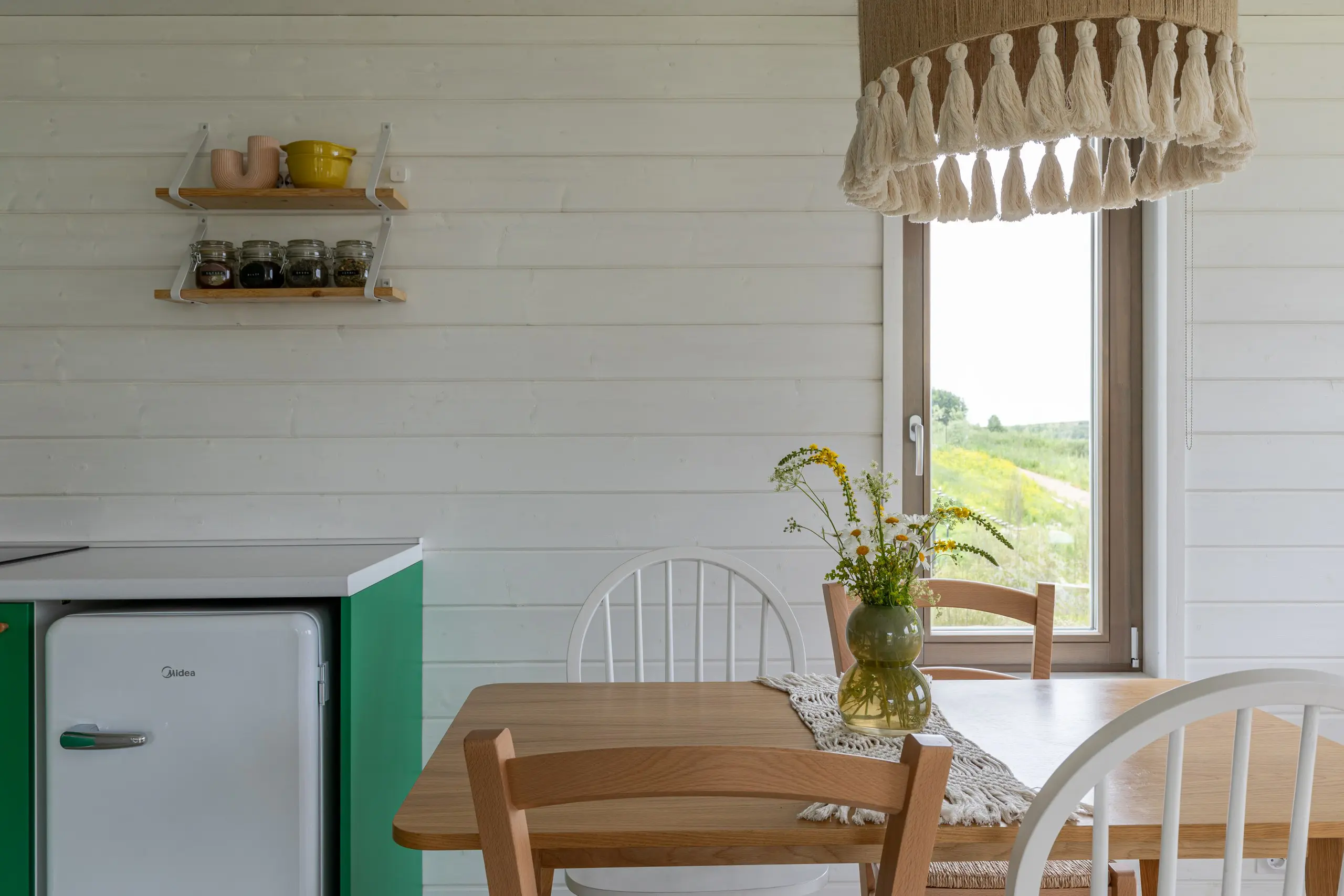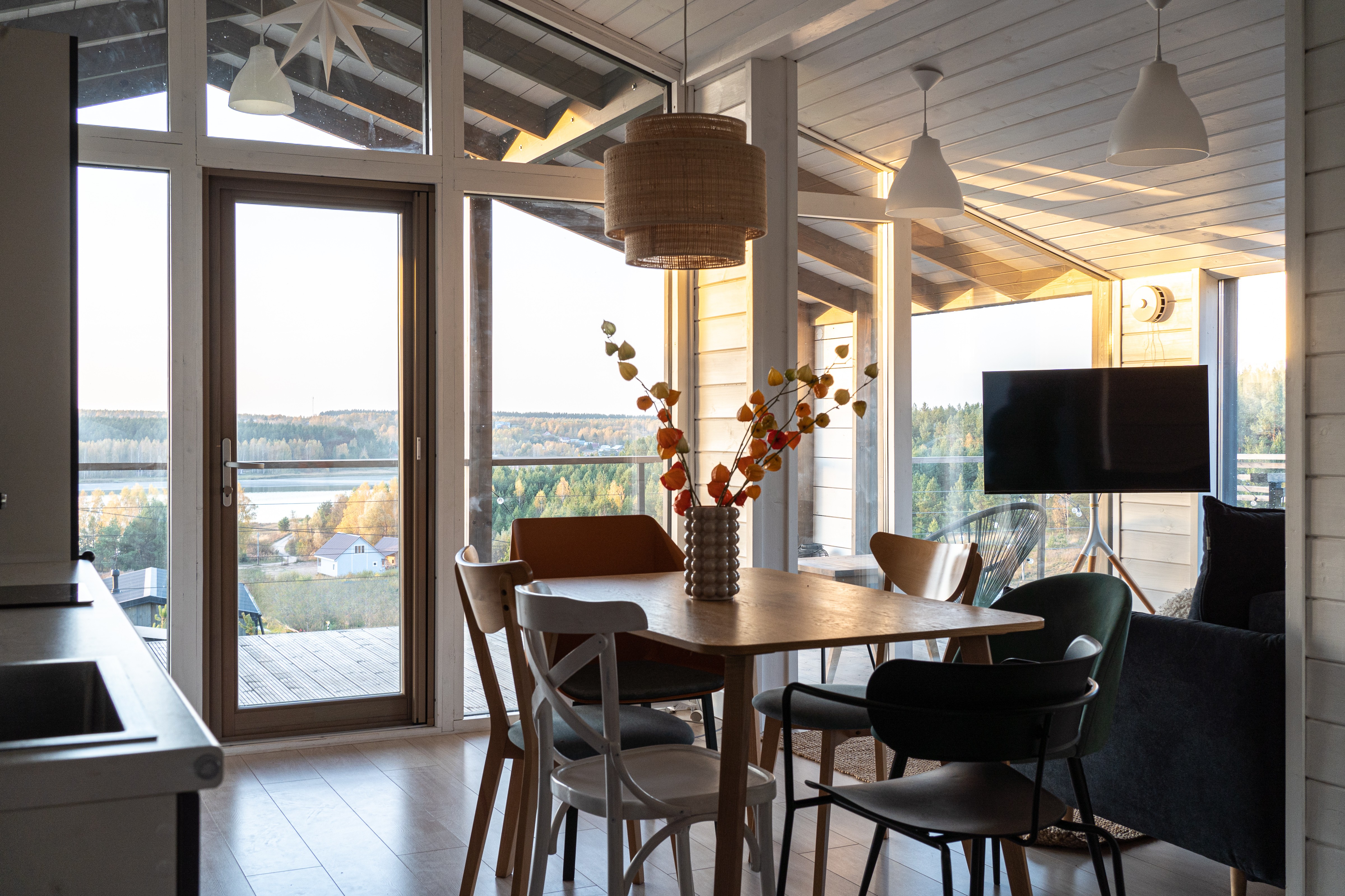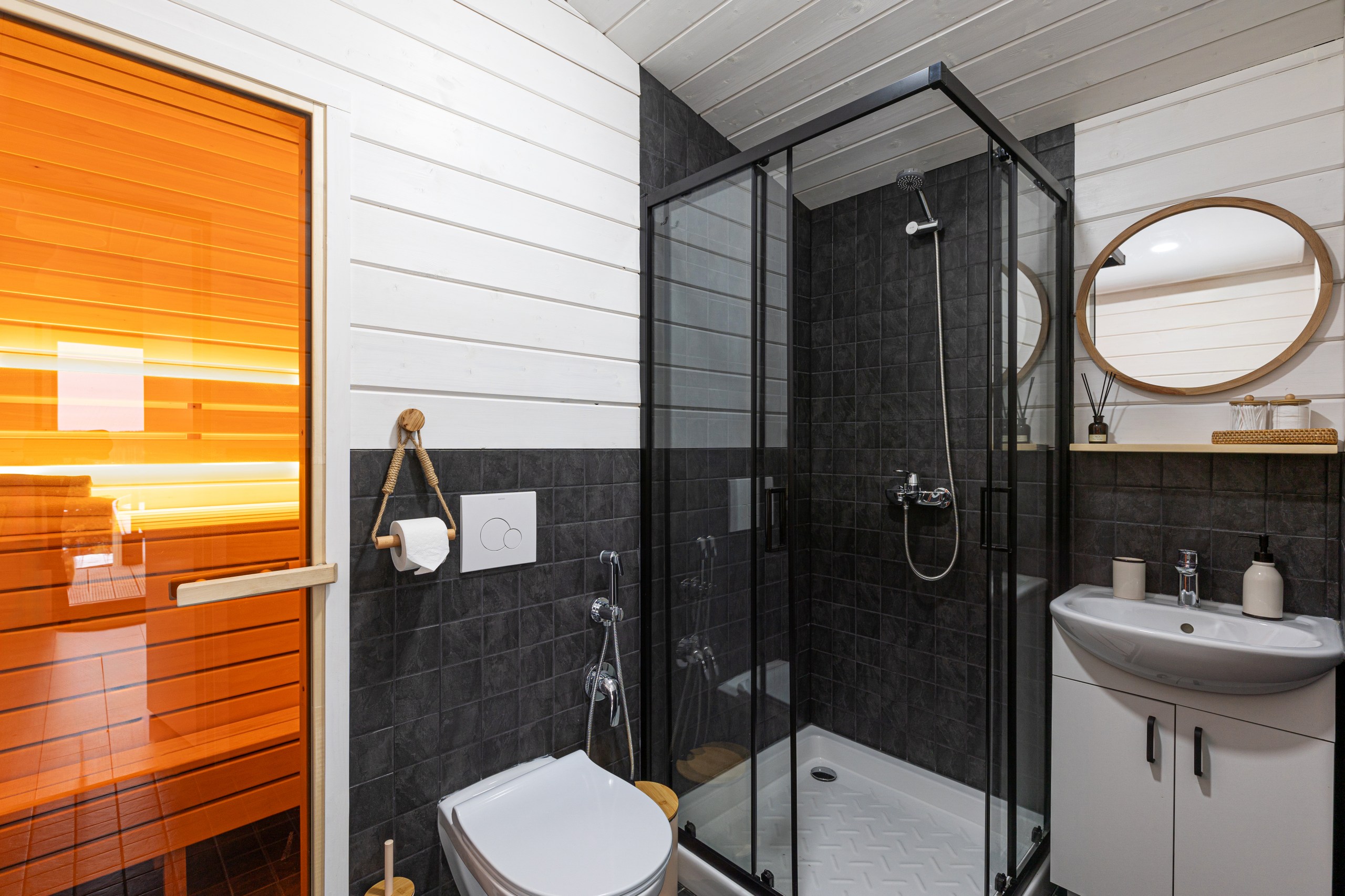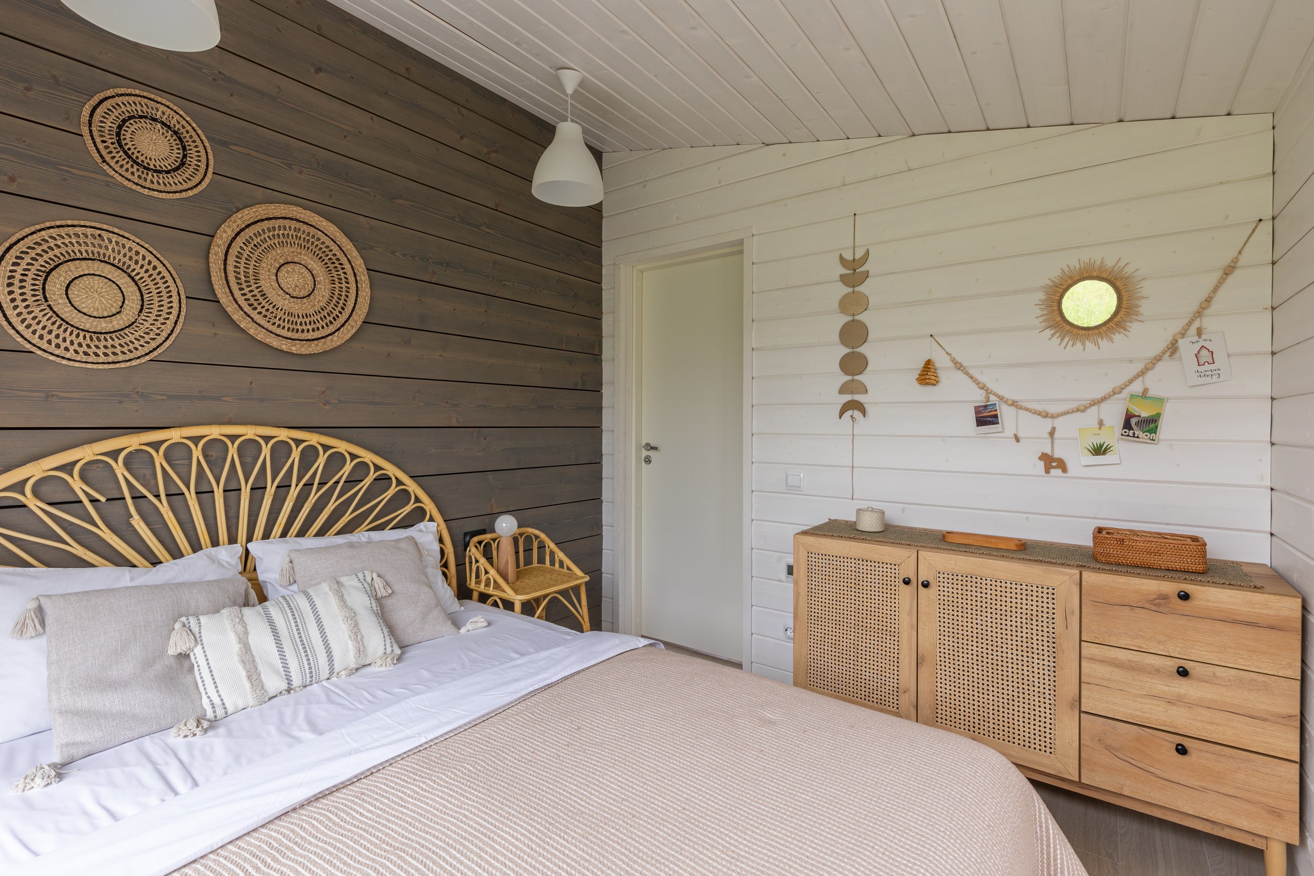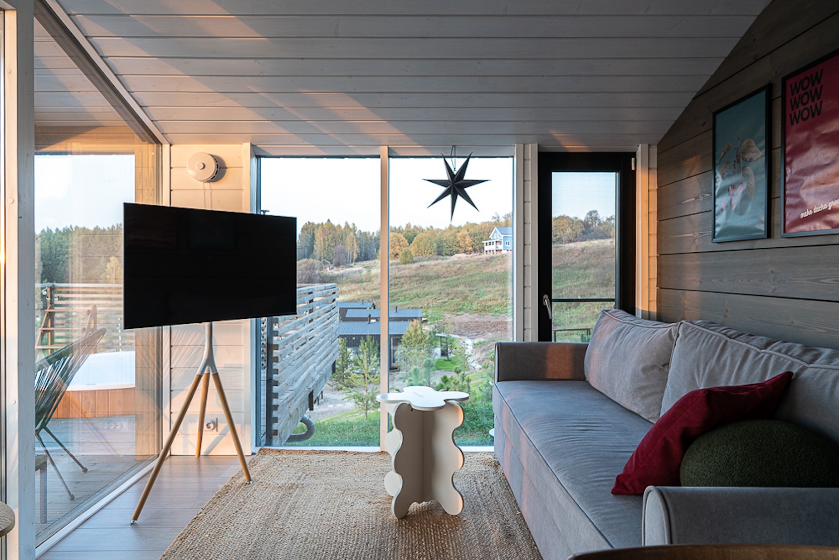 Вас ждут светлые домики с панорамными окнами, уютными спальнями и просторной кухней-гостиной, а на террасе каждого дома есть горячая купель с аэромассажем. Зоны отдыха оборудованы мангалами и костровыми чашами для вечерних посиделок.