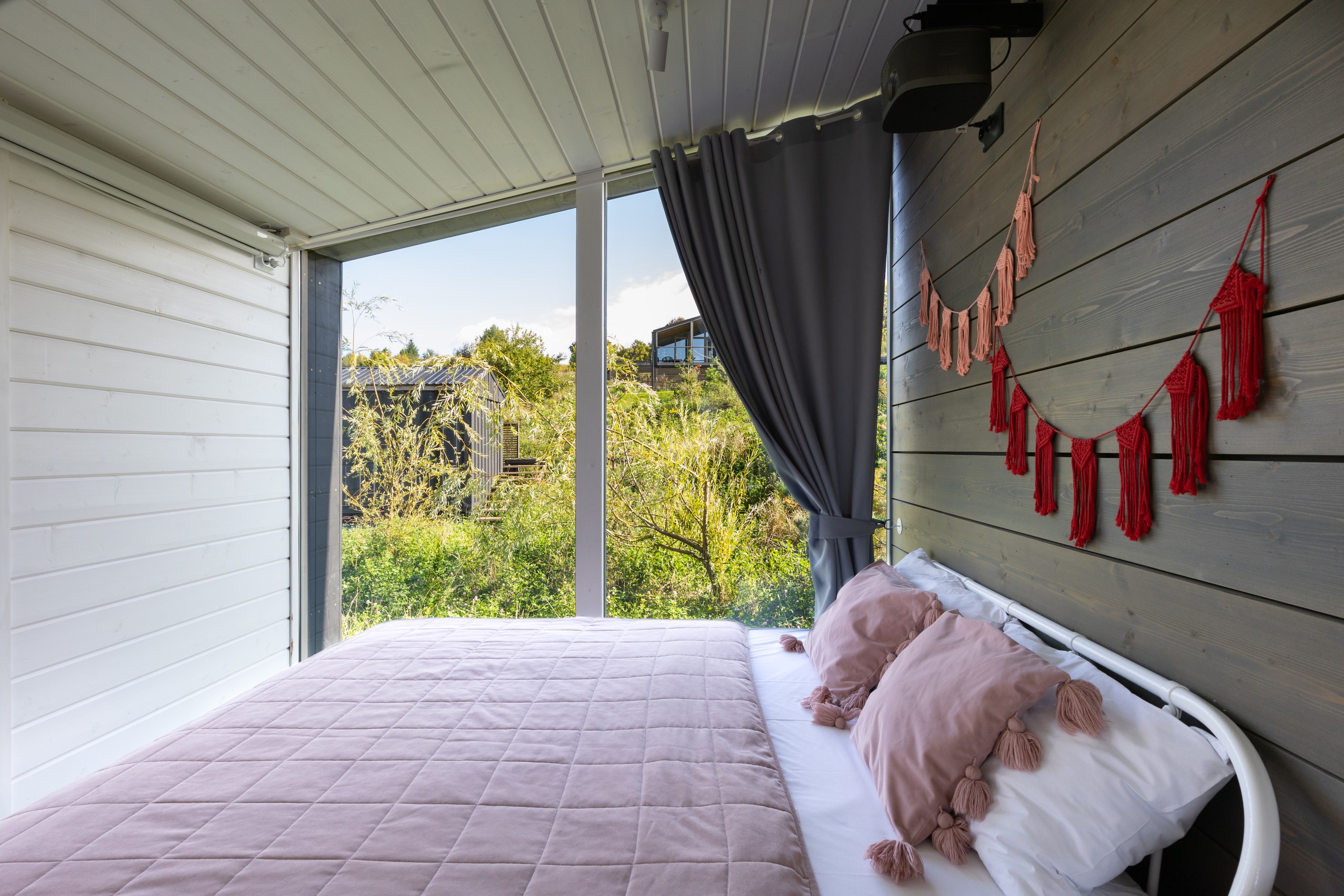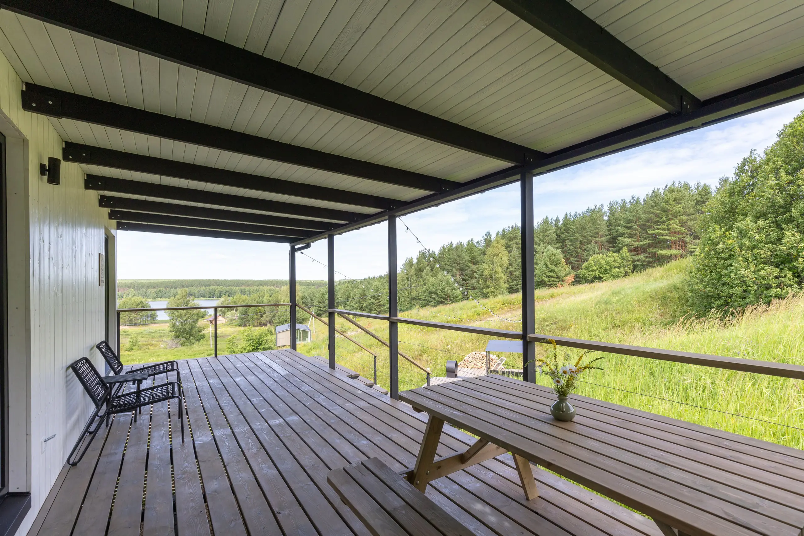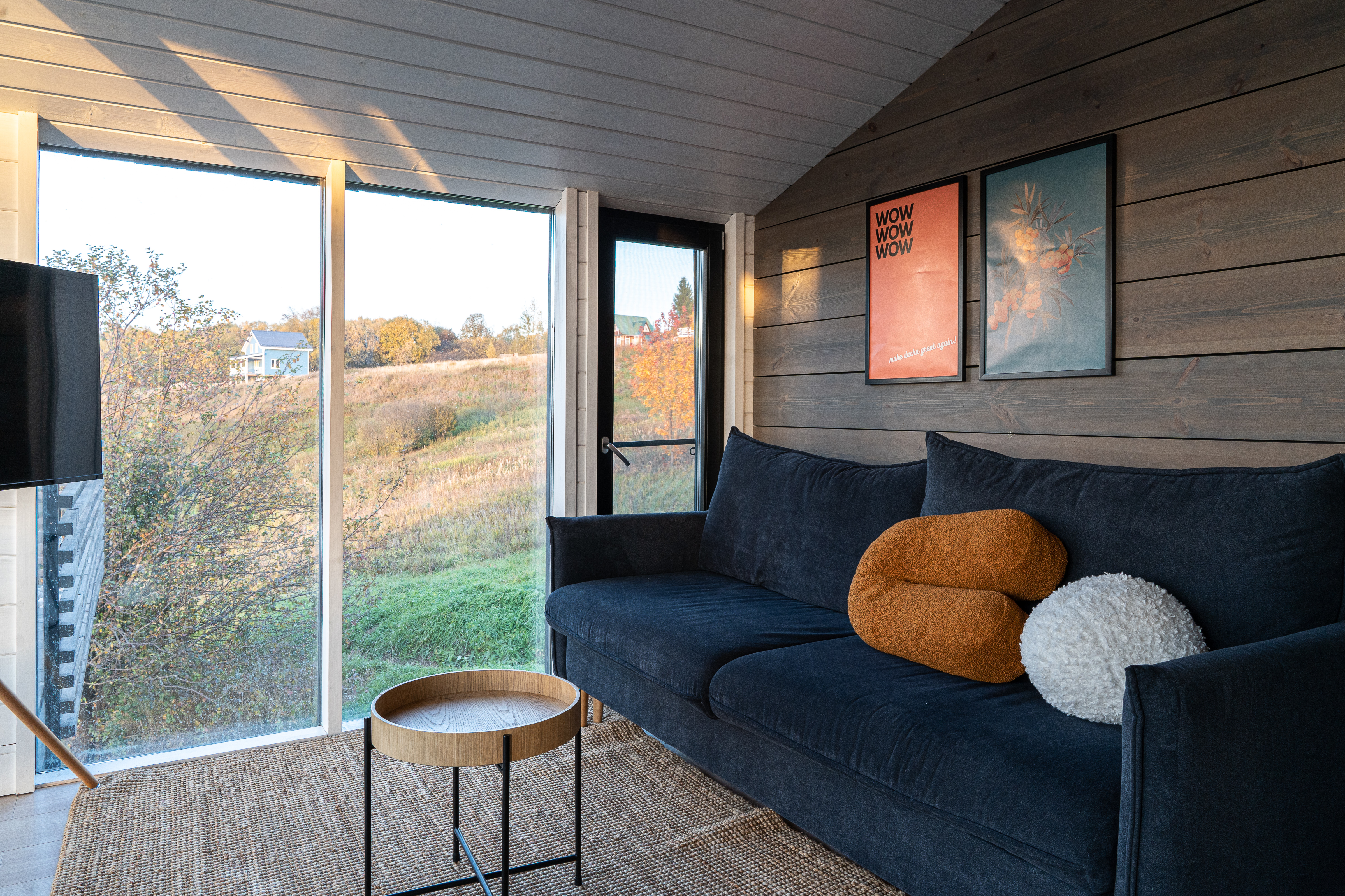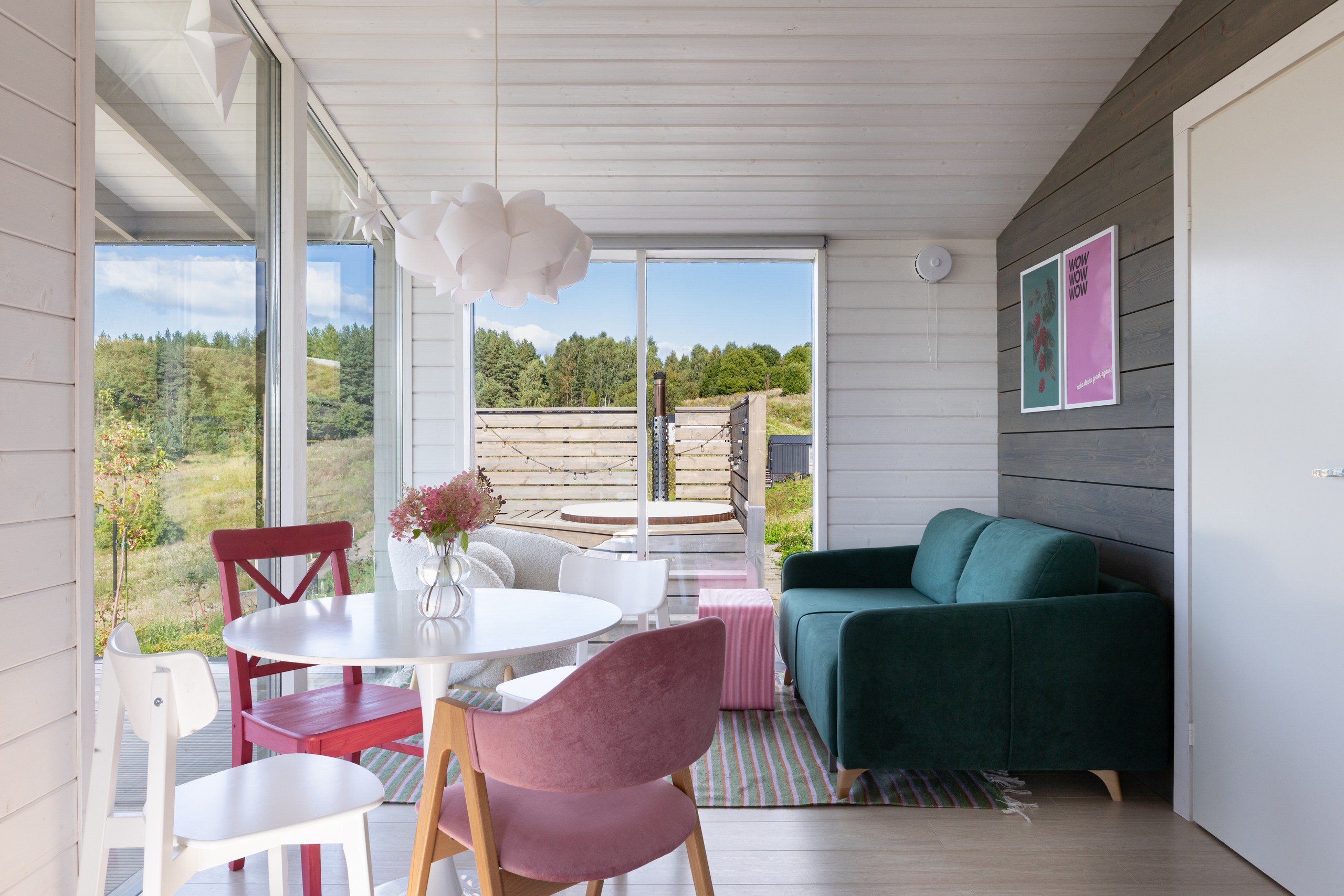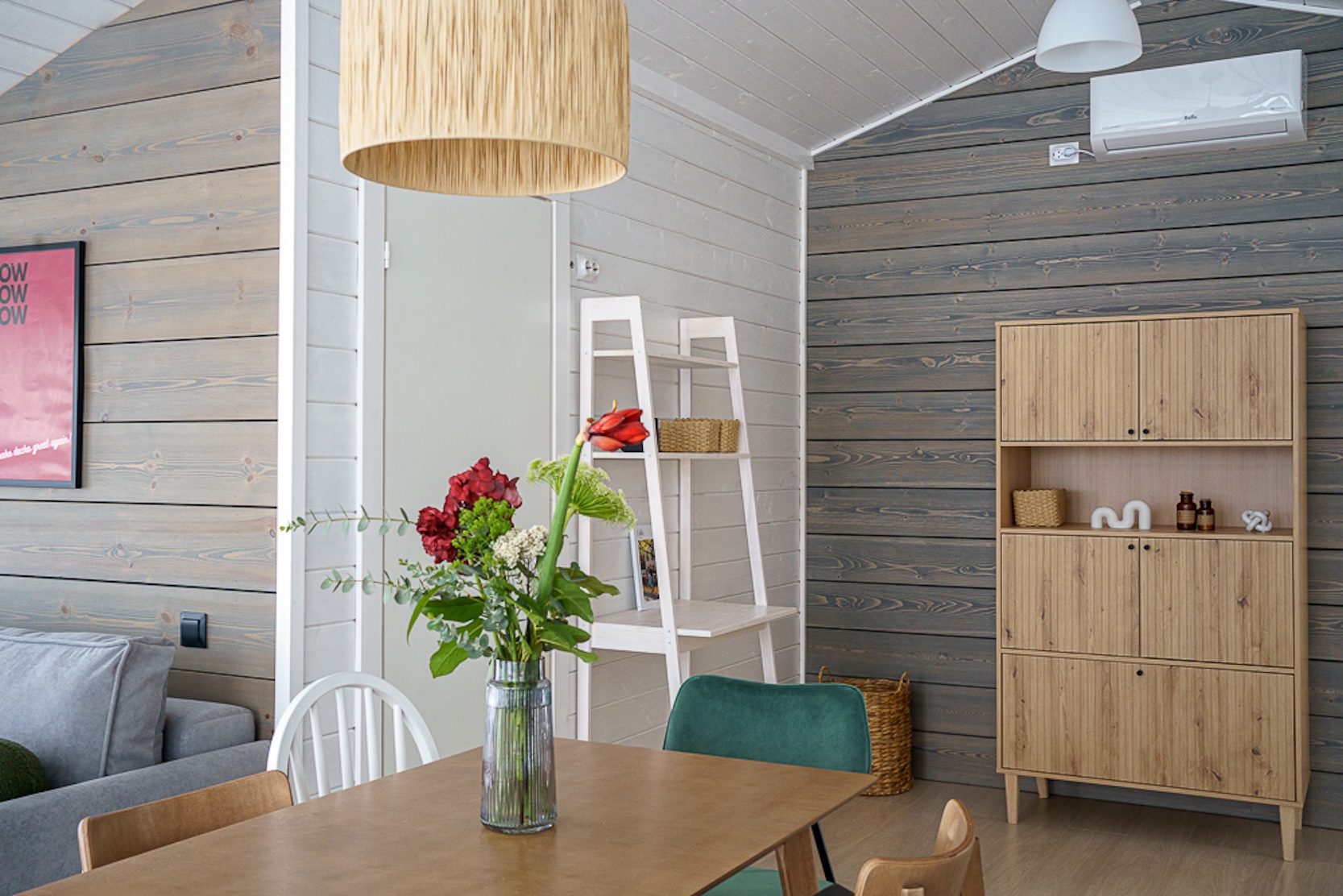 Вас ждут светлые домики с панорамными окнами, уютными спальнями и просторной кухней-гостиной, а на террасе каждого дома есть горячая купель с аэромассажем. Зоны отдыха оборудованы мангалами и костровыми чашами для вечерних посиделок.