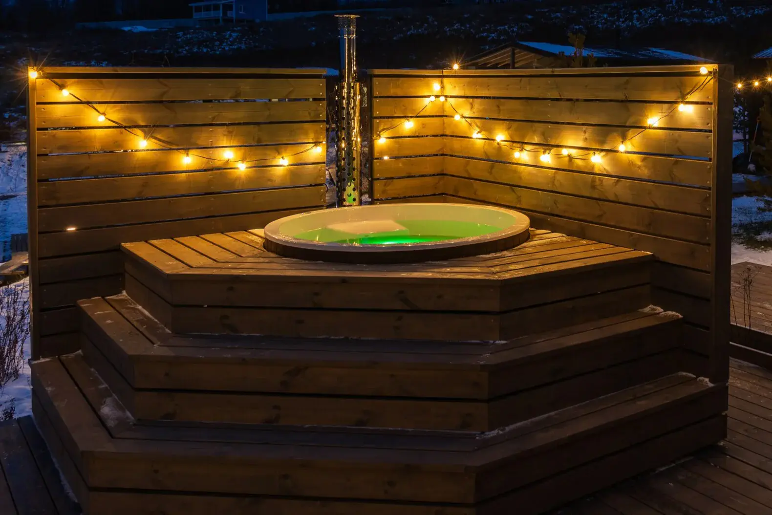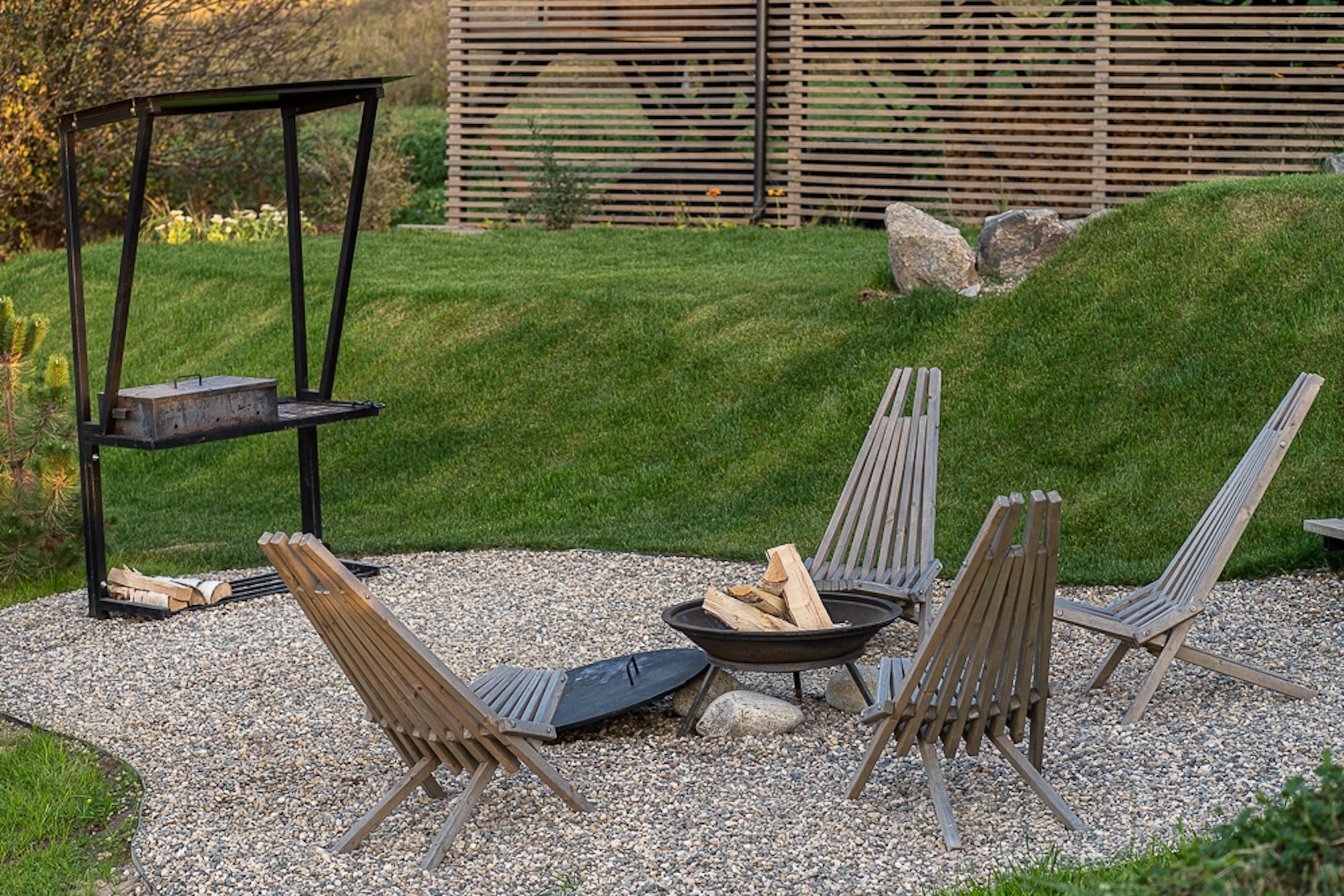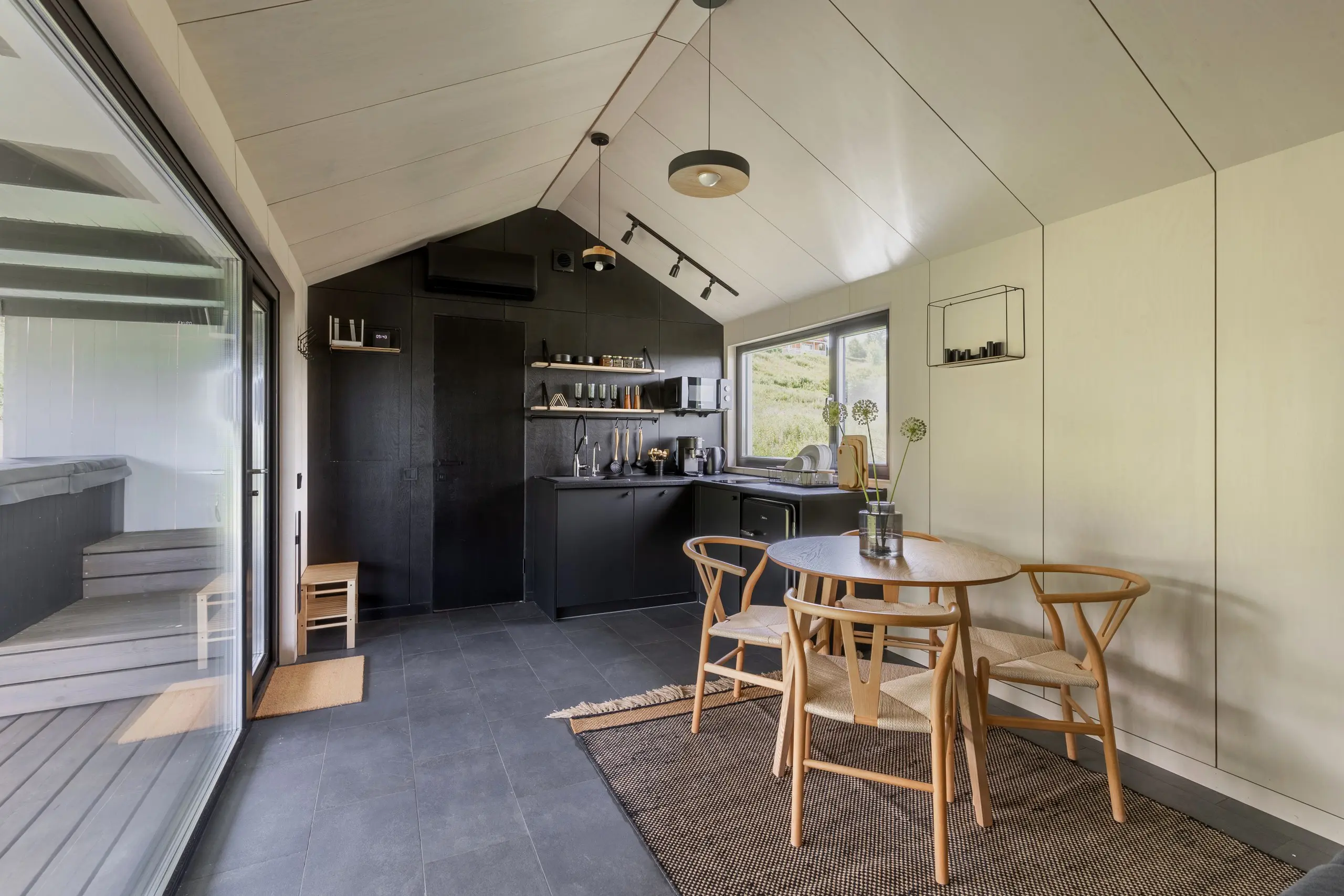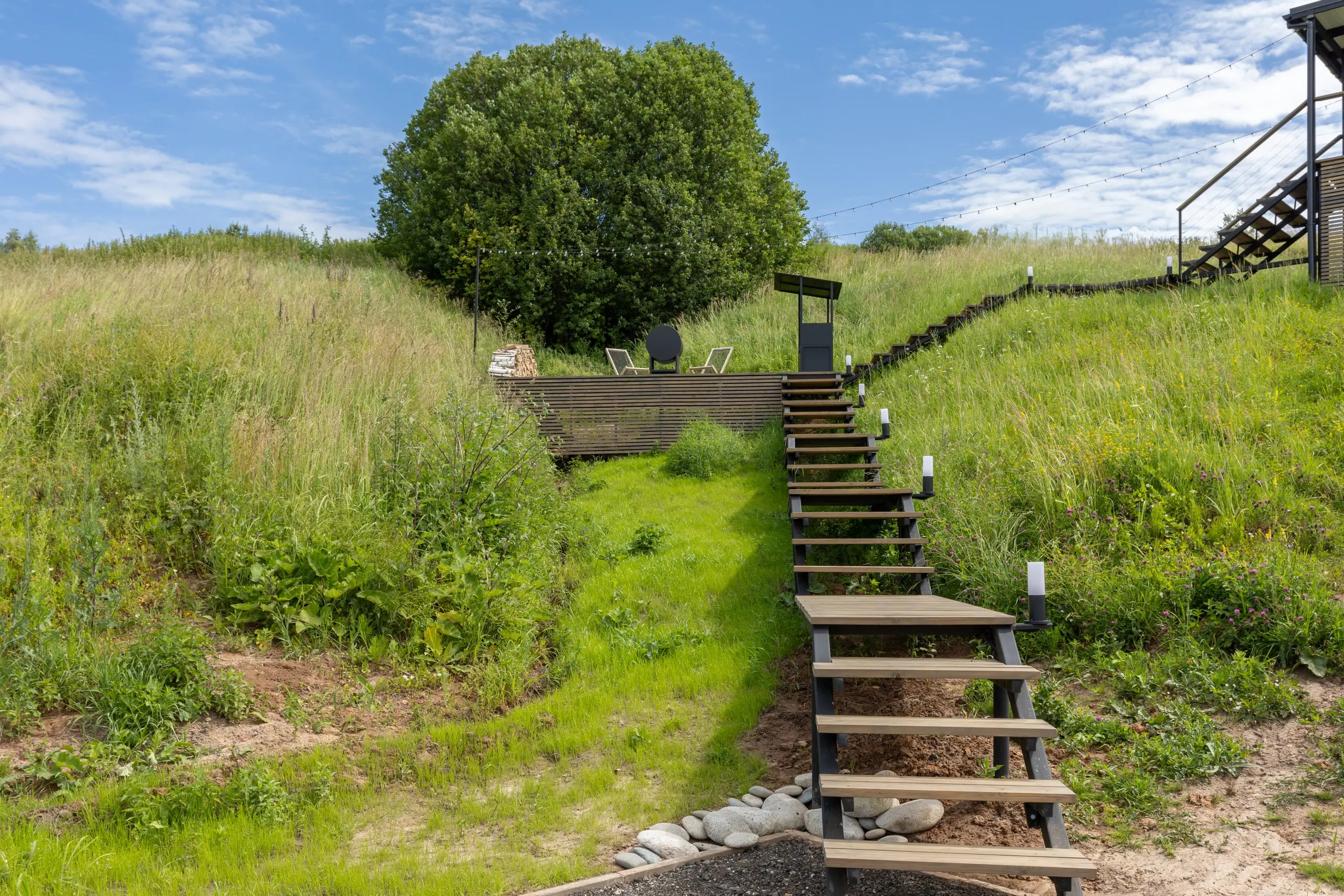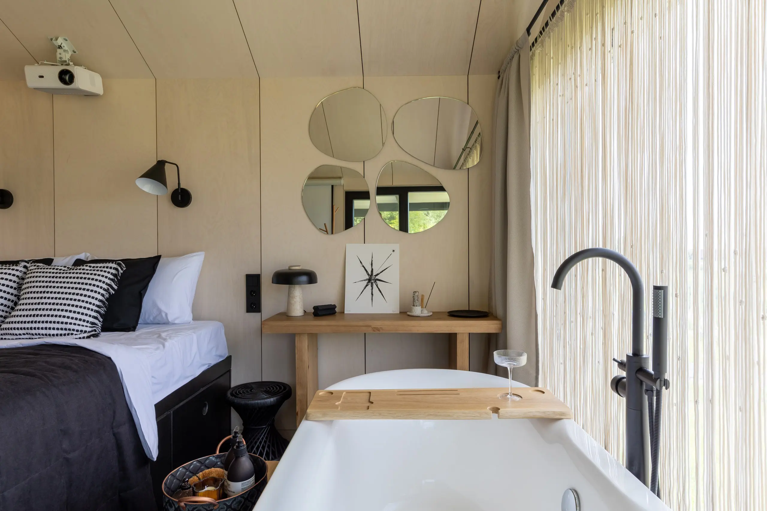 Вас ждут светлые домики с панорамными окнами, уютными спальнями и просторной кухней-гостиной, а на террасе каждого дома есть горячая купель с аэромассажем. Зоны отдыха оборудованы мангалами и костровыми чашами для вечерних посиделок.