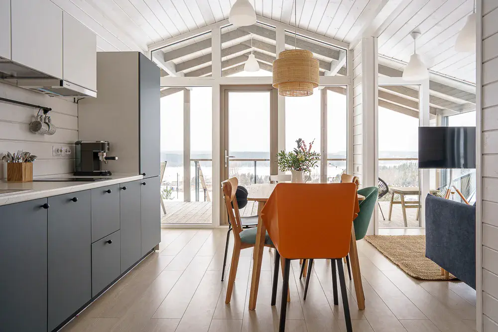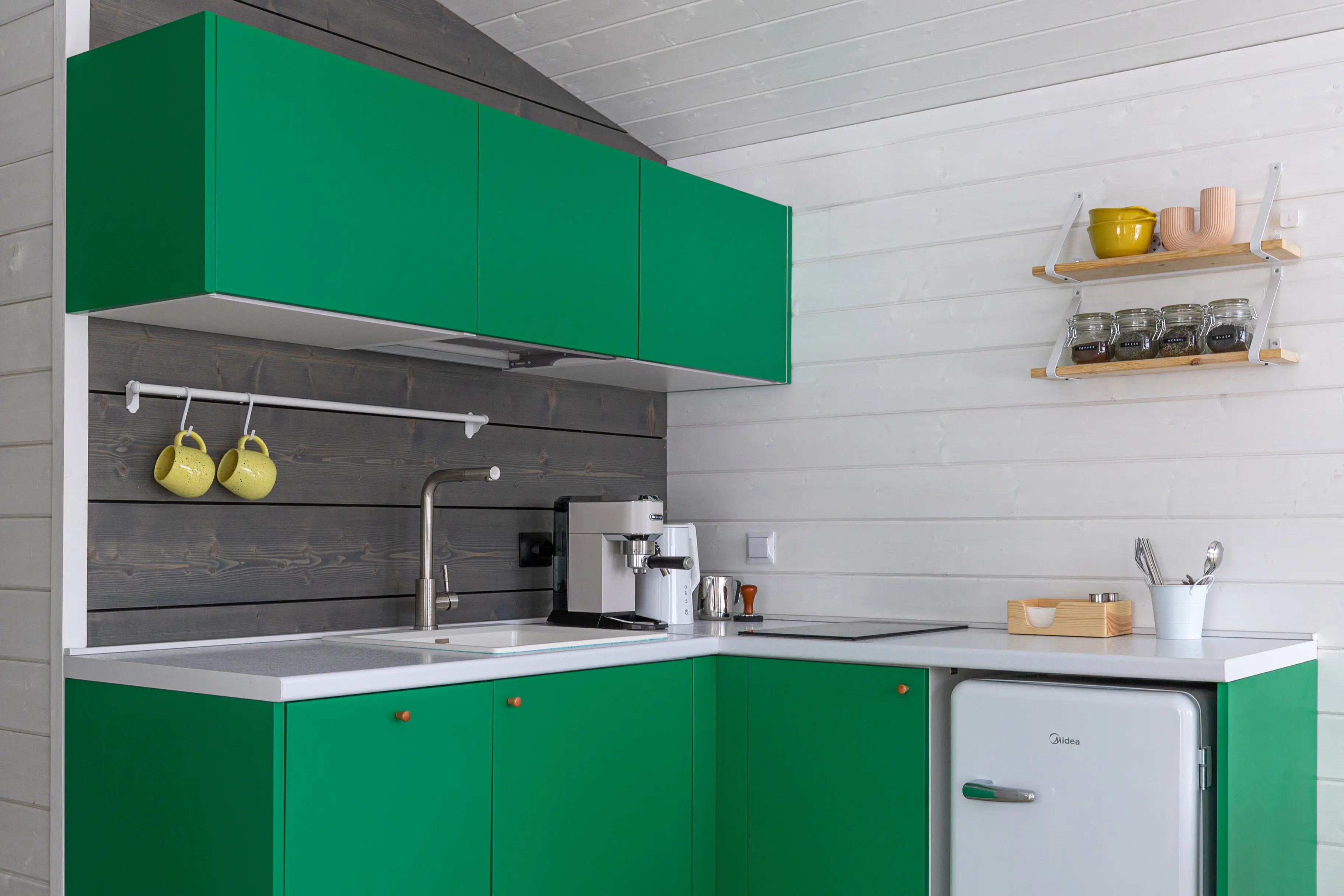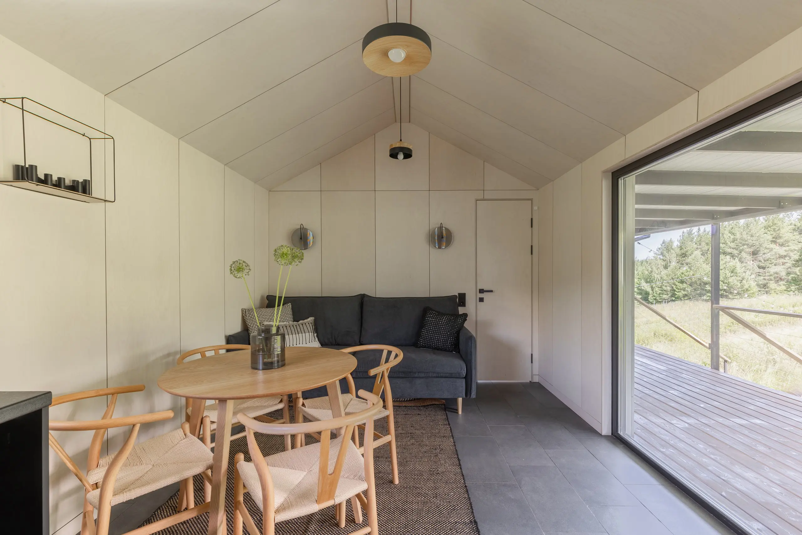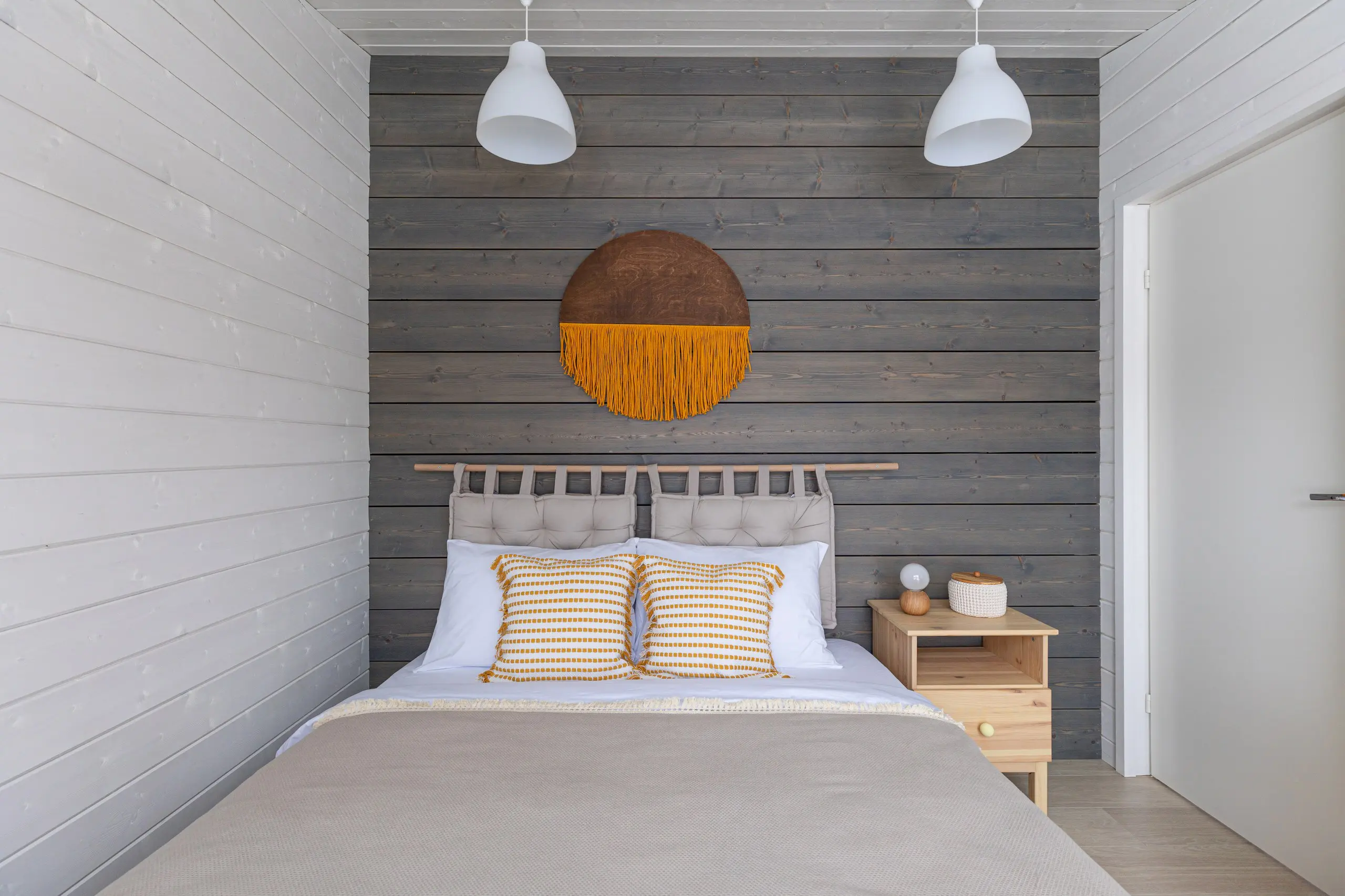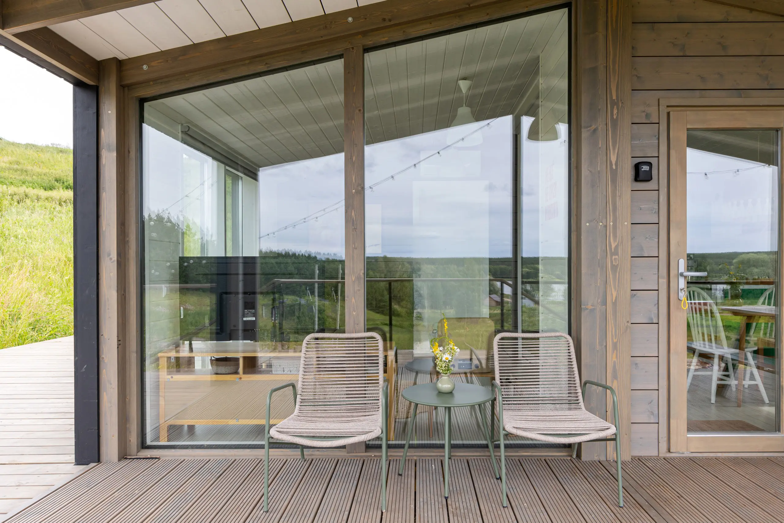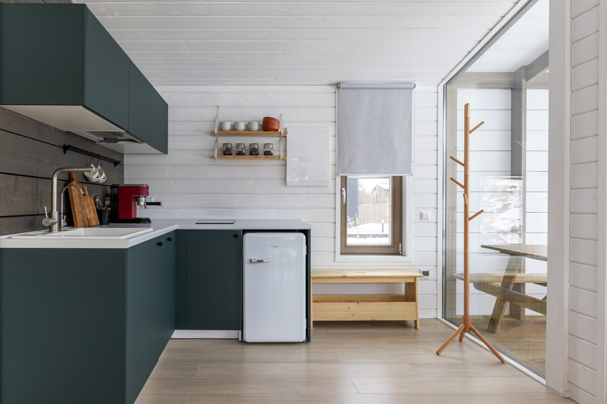Вас ждут светлые домики с панорамными окнами, уютными спальнями и просторной кухней-гостиной, а на террасе каждого дома есть горячая купель с аэромассажем. Зоны отдыха оборудованы мангалами и костровыми чашами для вечерних посиделок.