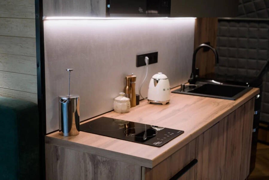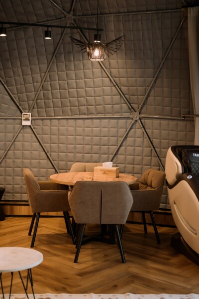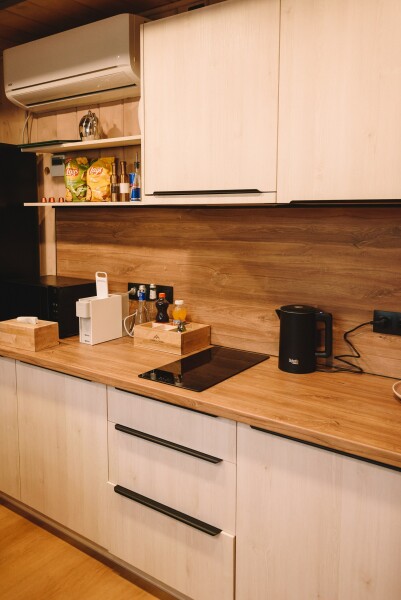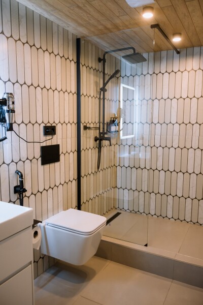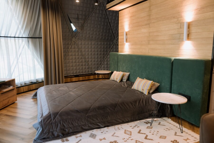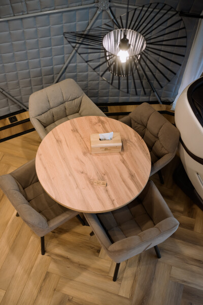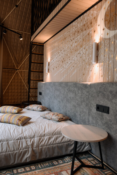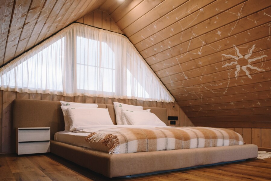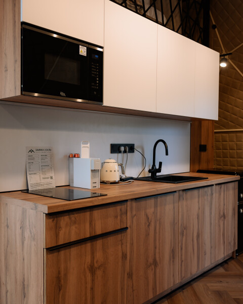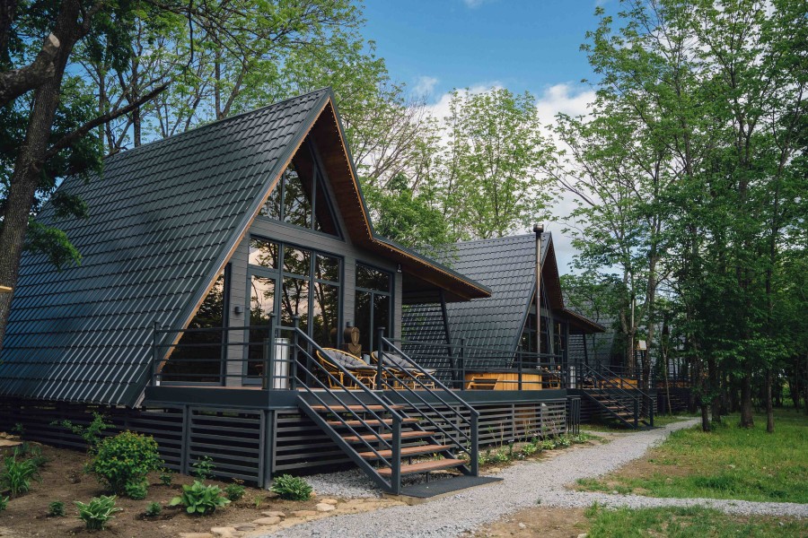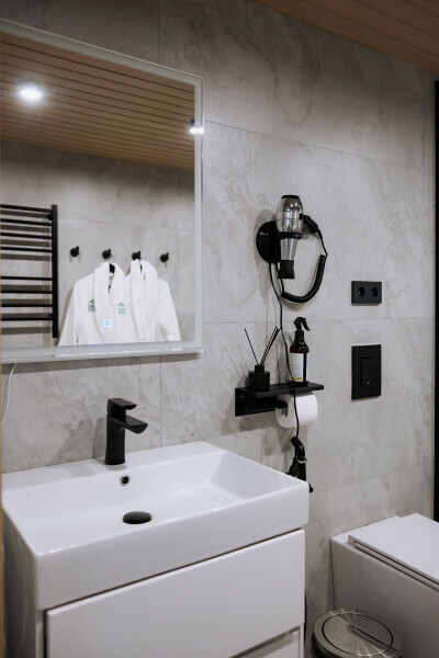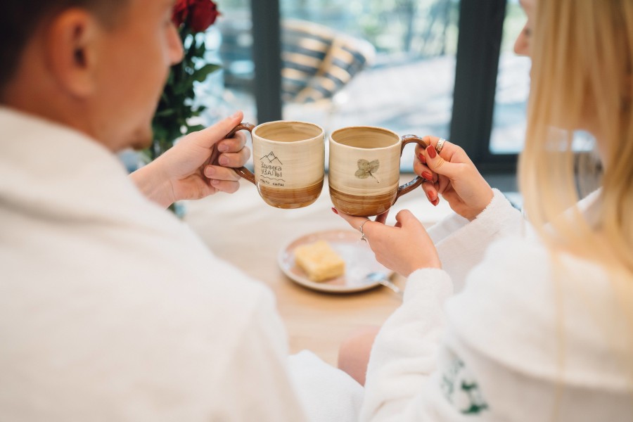 Каждая придомовая терраса оборудована индивидуальным банным чаном с гидромассажем, подсветкой и подогревом на дровах. Для развлечения гостей предусмотрены умная колонка с Алисой, небольшая библиотека и настольные игры. Так же доступна мангальная зона. По предварительному заказу повар на открытом огне приготовит сочный шашлык, ароматный плов или вкуснейшие завтраки. По запросу гостей доступна семейная рыбалка прямо на горной реке.