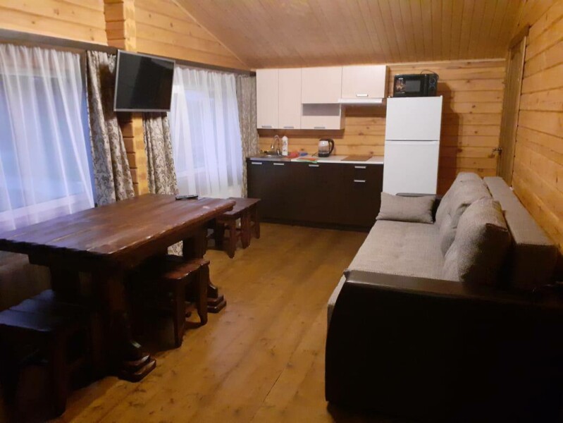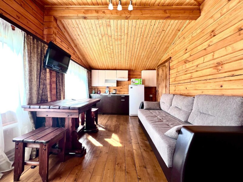 Гости могут разместиться в уютных коттеджах, рассчитанных на компанию от 4 до 14 человек. Для самостоятельного приготовления пищи в каждом доме есть оборудованная кухня, а на территории — мангальные зоны и беседки для барбекю. Любители расслабленного отдыха могут посетить русскую баню на дровах, подогреваемый банный чан, финскую сауну или турецкий хамам, а также поплавать в бассейне с водопадом и гидромассажем.